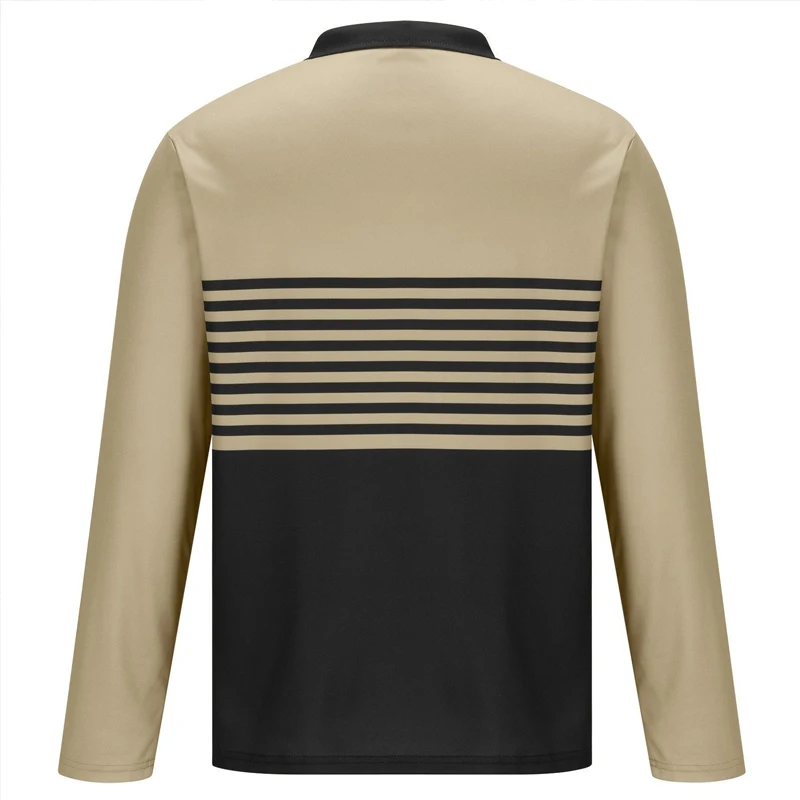 Men’s Rugby Polo Shirts Casual Sports Lapel Classic Long Sleeve Fashion Basic Color Block Stripe Fall Winter Regular Fit