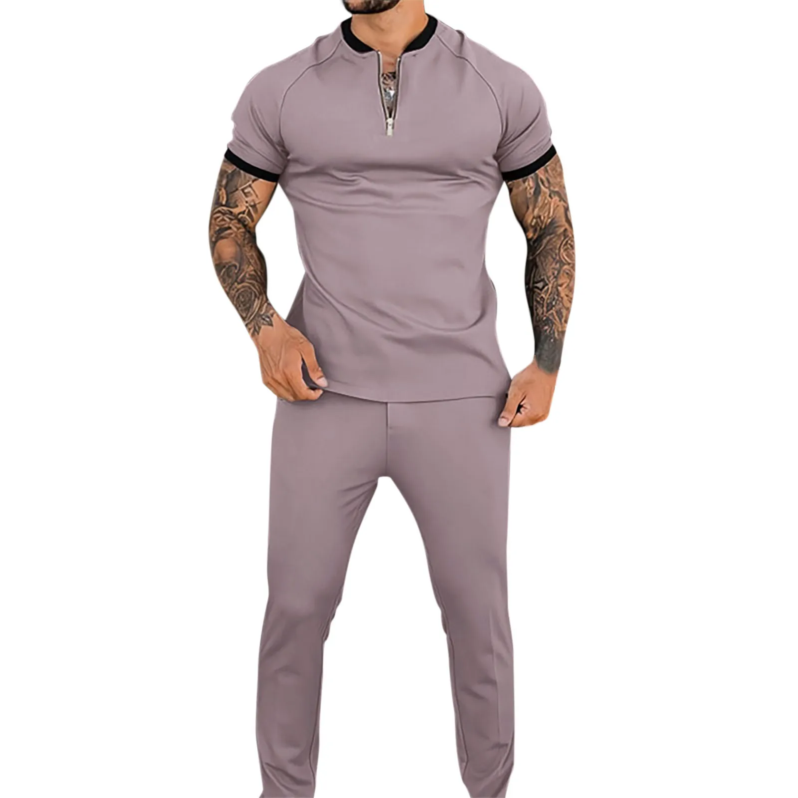 Mens Sets 2 Piece Outfits Shirt Fashion Tracksuits Casual Set Plus Size Short Sleeve And Pants Set