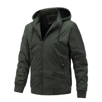 Men’s Spring Fall Jacket with Detachable Hood Lightweight Casual Sports Coat