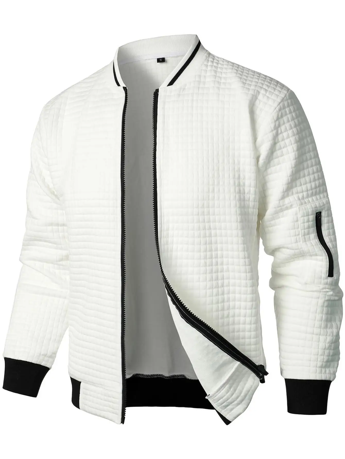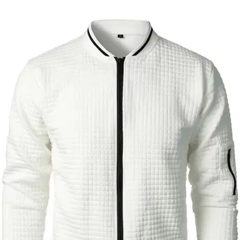 Men’s Stand Collar Zip-Up Sweatshirt Jacket Fashion Plaid/Solid Color Cardigan