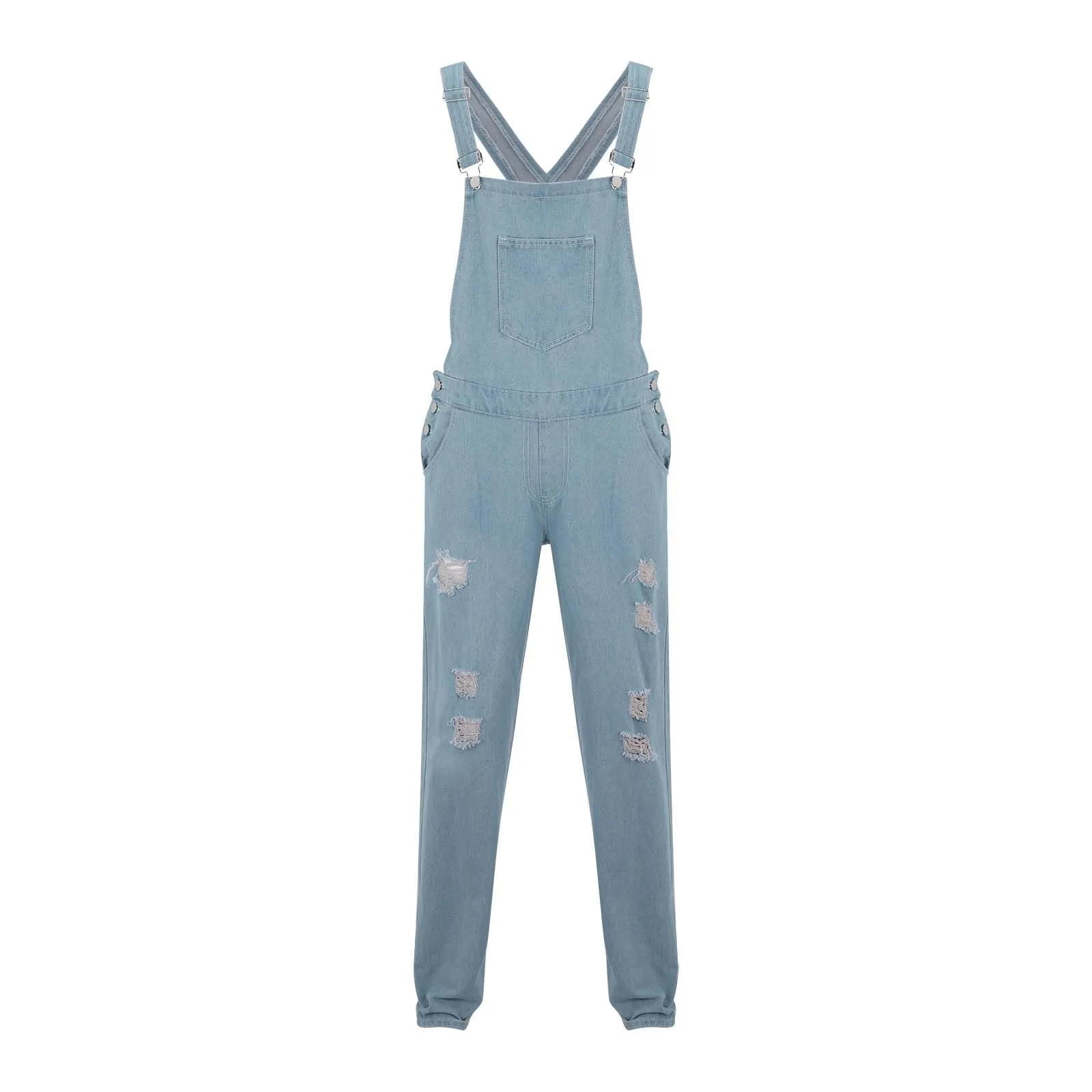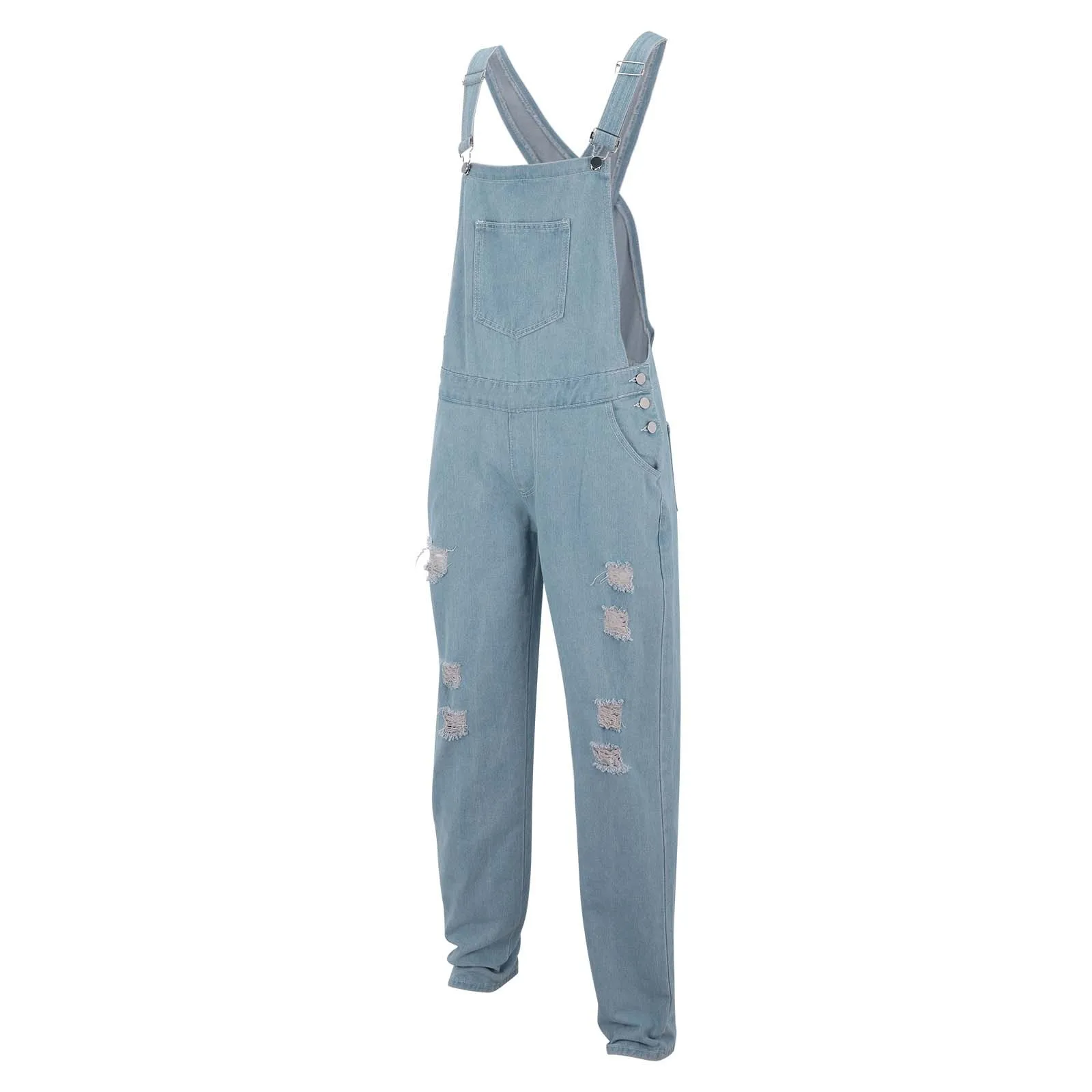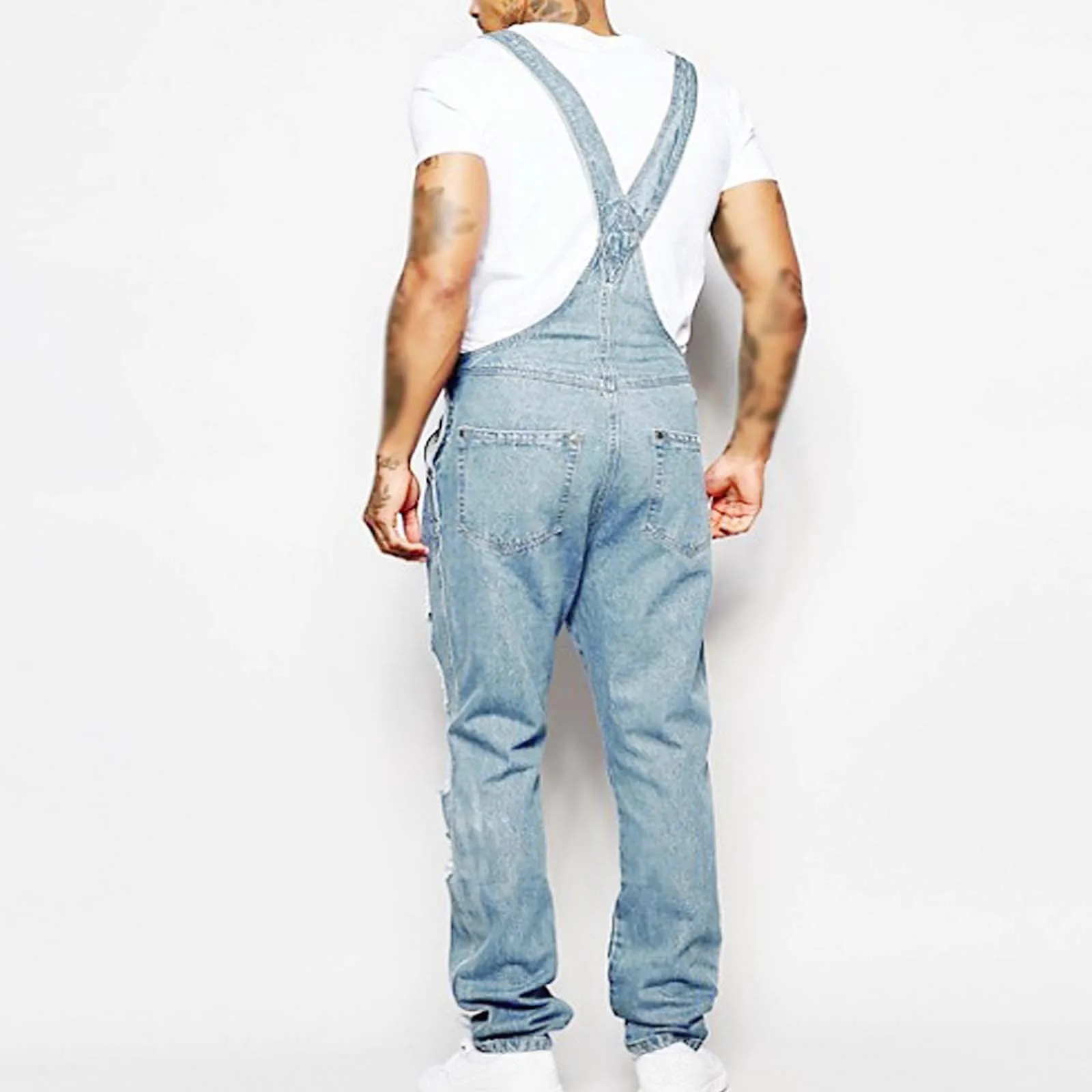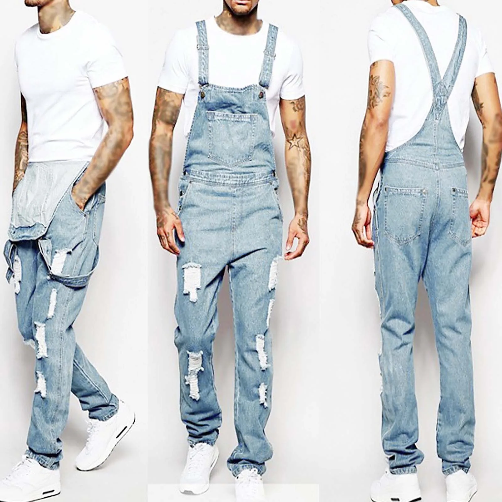Fashionable Men’S Suspenders Denim Jumpsuit Ripped Jeans Trousers Popular Fashionable Work Clothes
