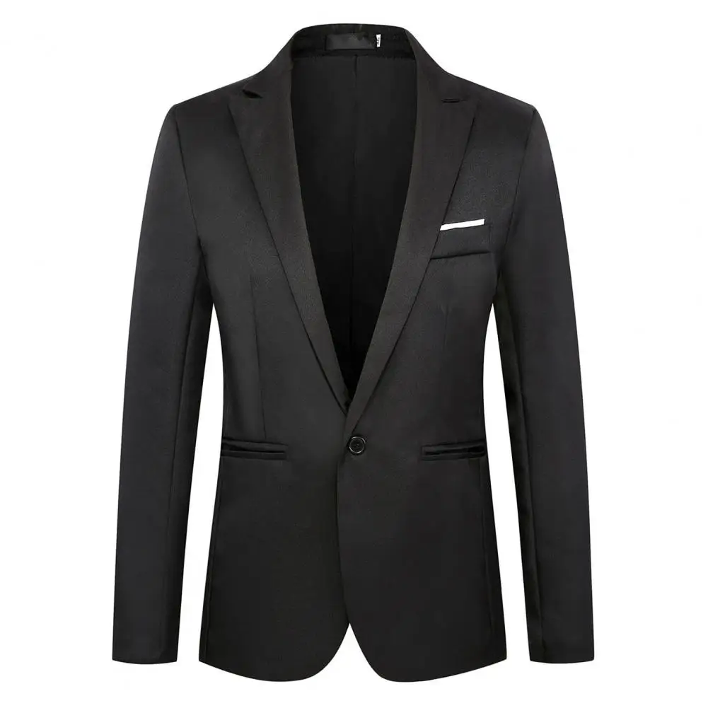 Slim men blazer features solid color, pockets, lapel and single button, which is formal and very suitable for any business occasions.
