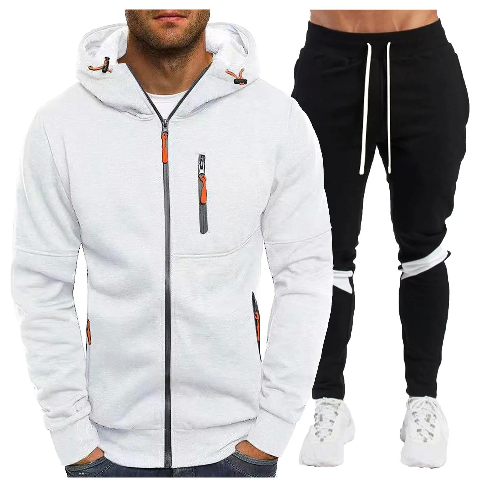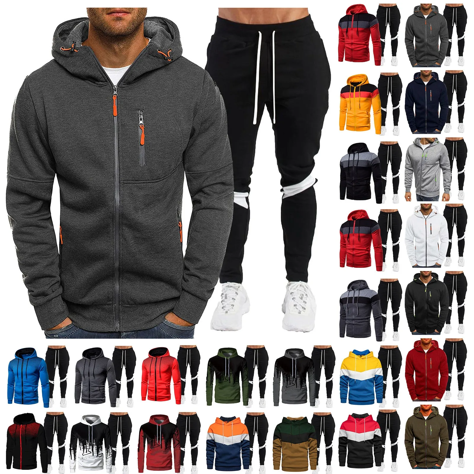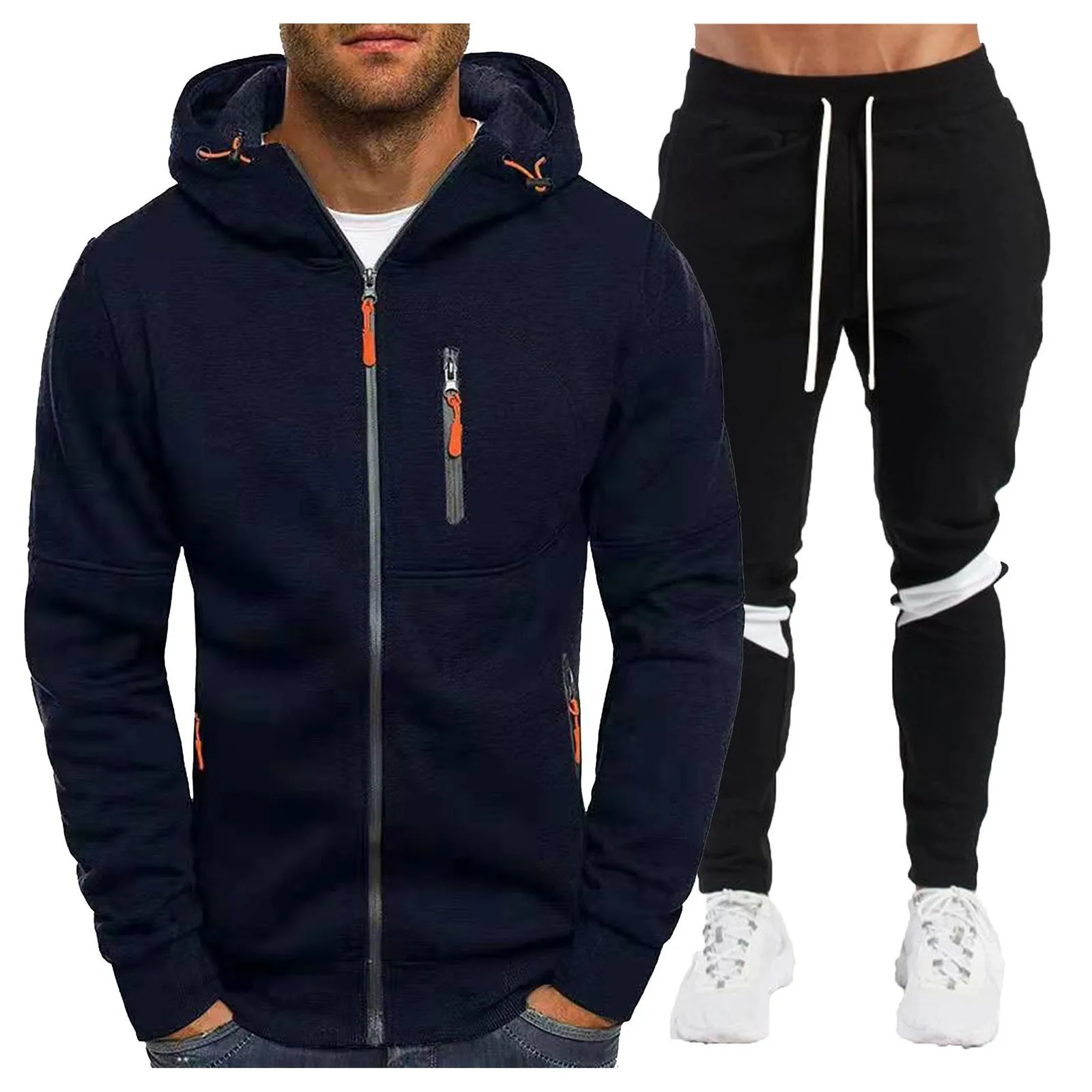 Men’S Winter Sports Tracksuit Set Fleece Zipper Jacket Coats Hoodie Sweatshirts Pant Suit