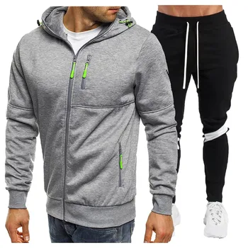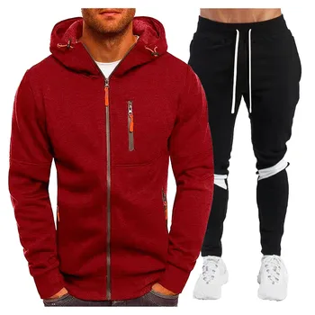 Men’S Winter Sports Tracksuit Set Fleece Zipper Jacket Coats Hoodie Sweatshirts Pant Suit