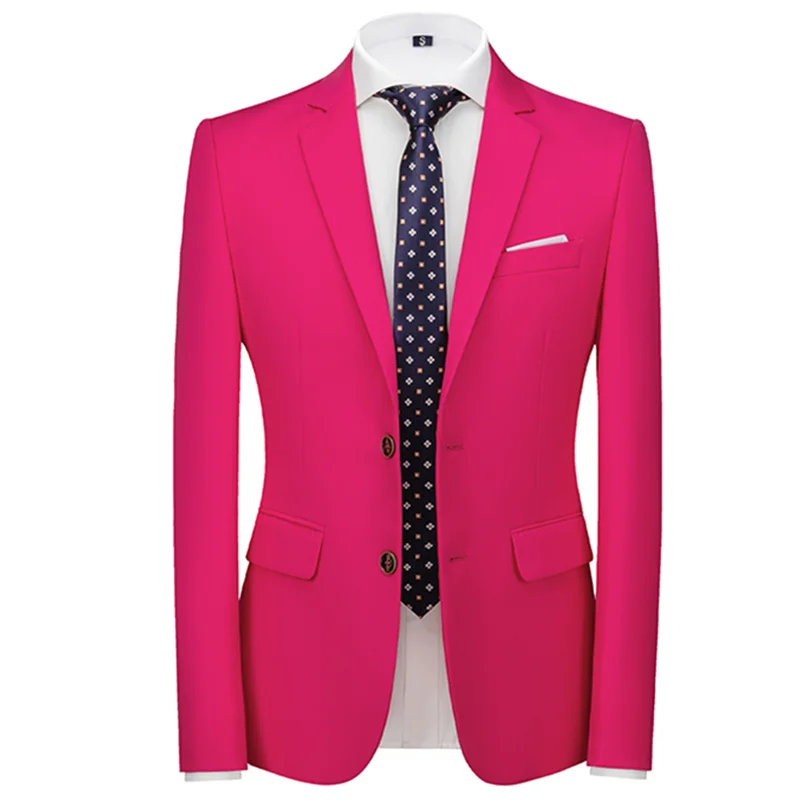 New Men Blazer Pure Color Formal Business Social Office Suit Slim Fit Jacket