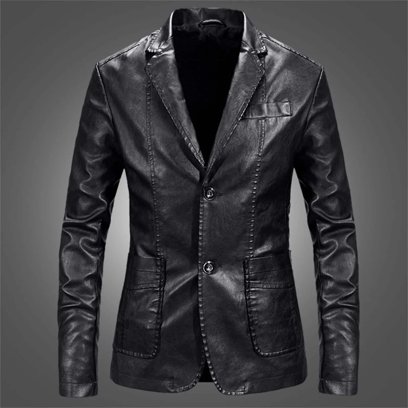 2023 Autumn And Winter New Men’s Warm Wash PU Leather Fashion Youth Leather Coat