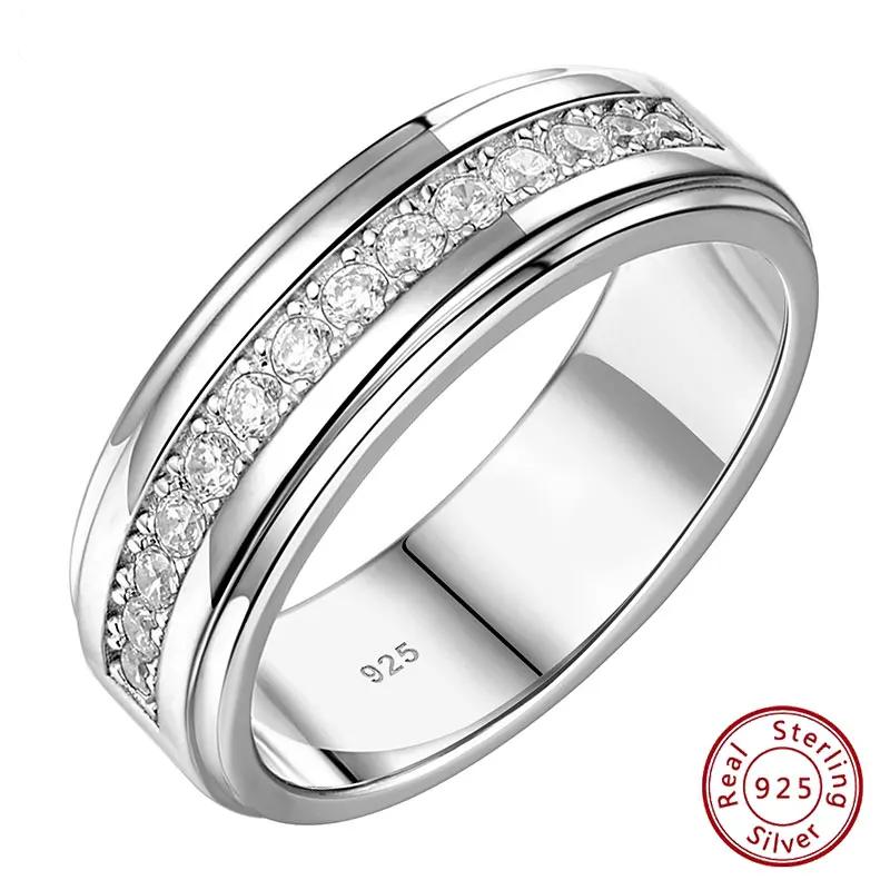 Newshe high quality cubic zircon sterling silver ring for men.shine like a natural diamond wedding band for men. match with men’s wedding engagement rings.