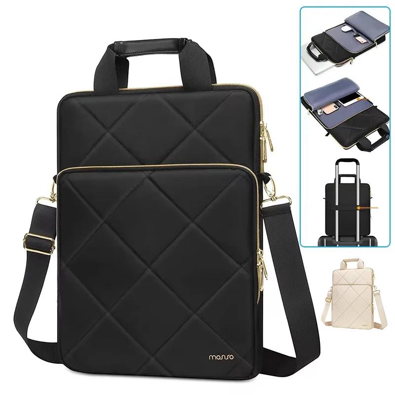 - Removable and adjustable padding shoulder strap varied from 31.30 – maximum 56.3 inch. You can use it as messenger shoulder bag, crossbody bag, briefcace hadbag and sleeve bag in whatever way you like. Dual sturdy handles for long time comfortably carrying.