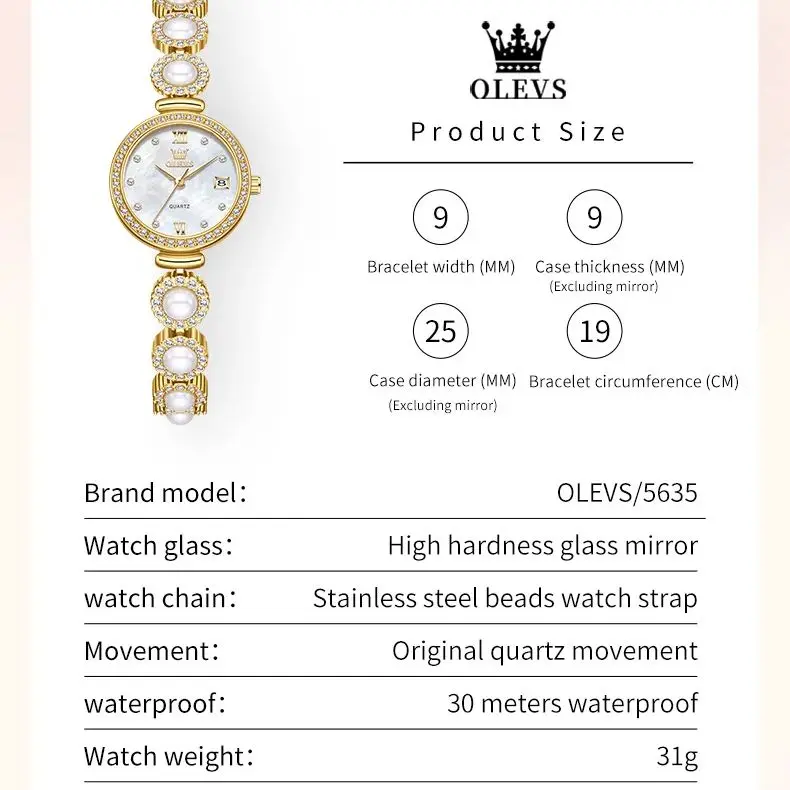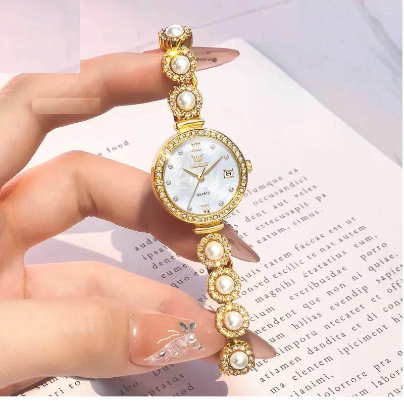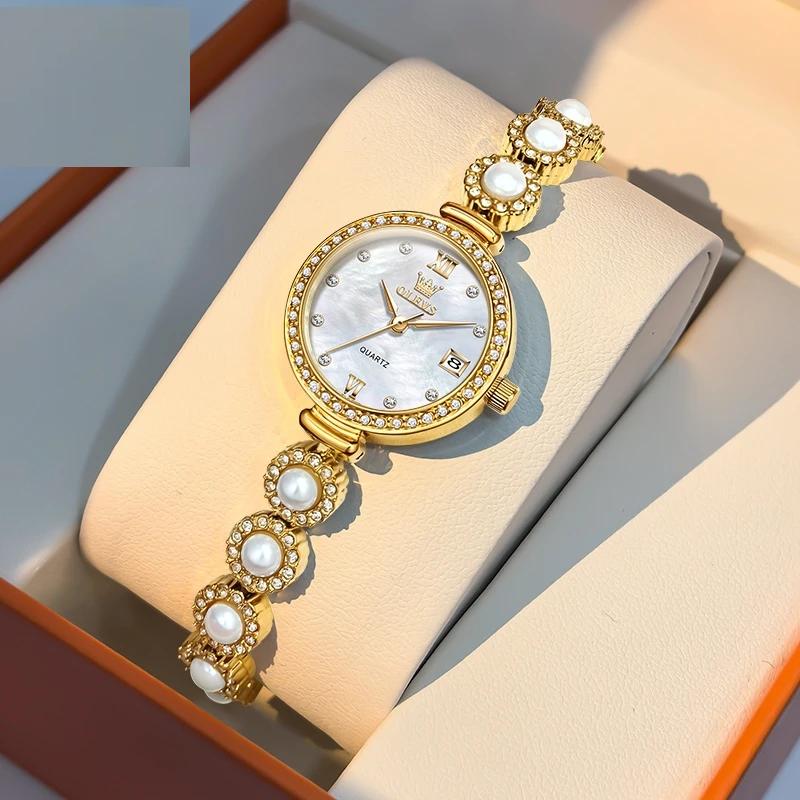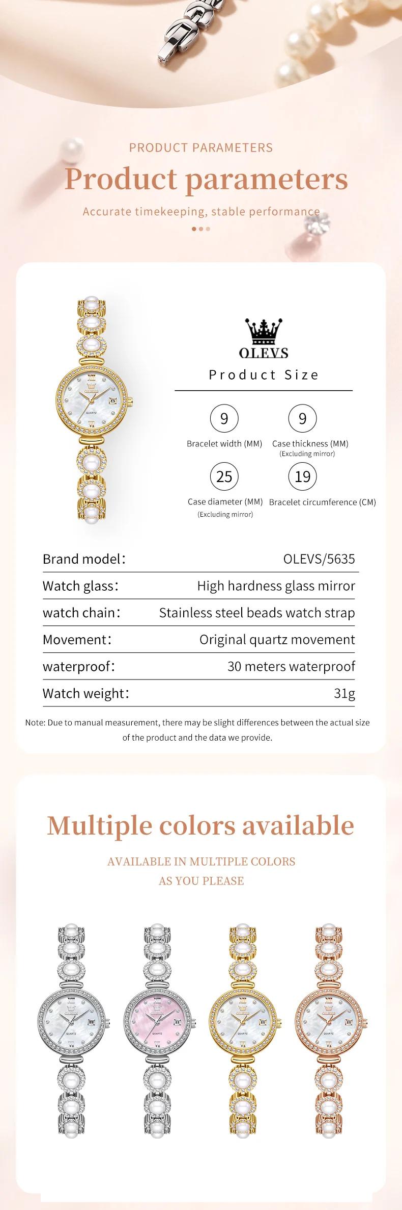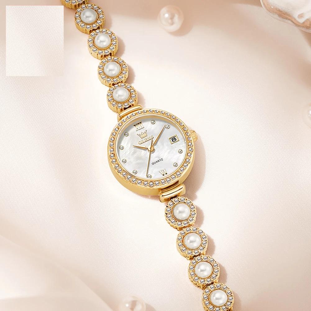 OLEVS 5635 Women Watch Elegant Brand Quartz Watch Fashion Waterproof Luxury Pearl Full Diamond Bracelet Women Dress Watch Reloj