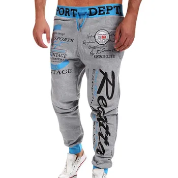 Men Casual Loose Letter Print Drawstring Elastic Waist Long Pants Trousers