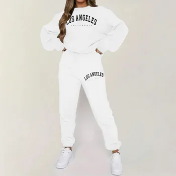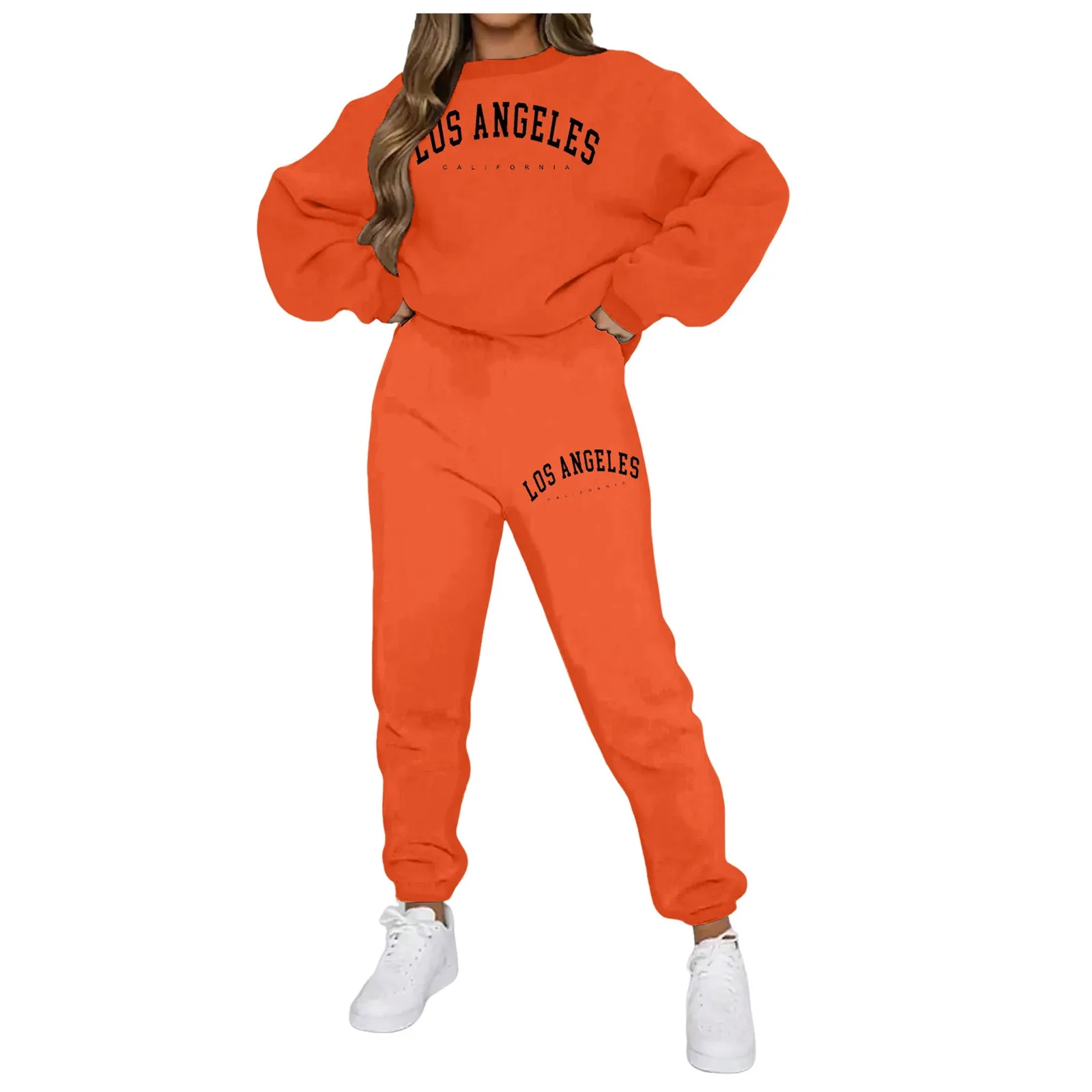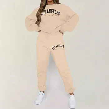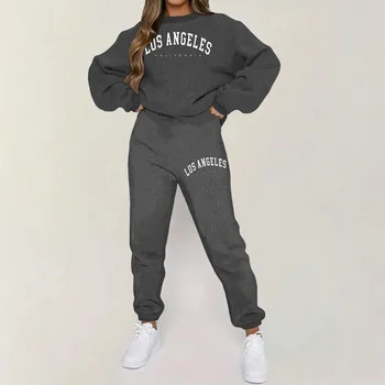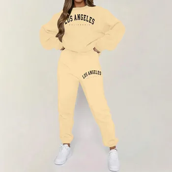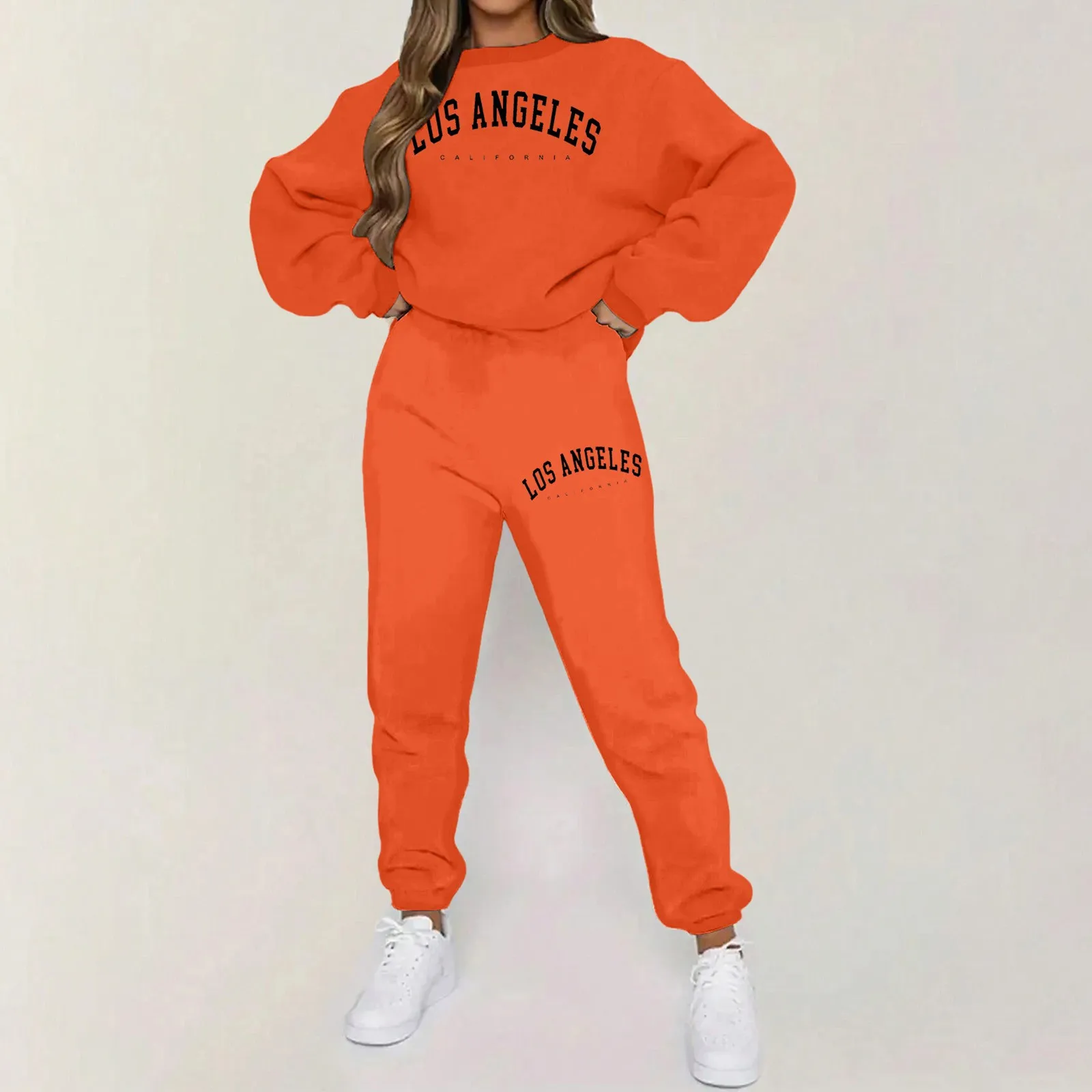 Women Long Sleeve Solid Color Hooded Sweatshirt And Pant Tracksuit Sport Suit Hooded Sport Suits Autumn Warm Hoodie With Printing