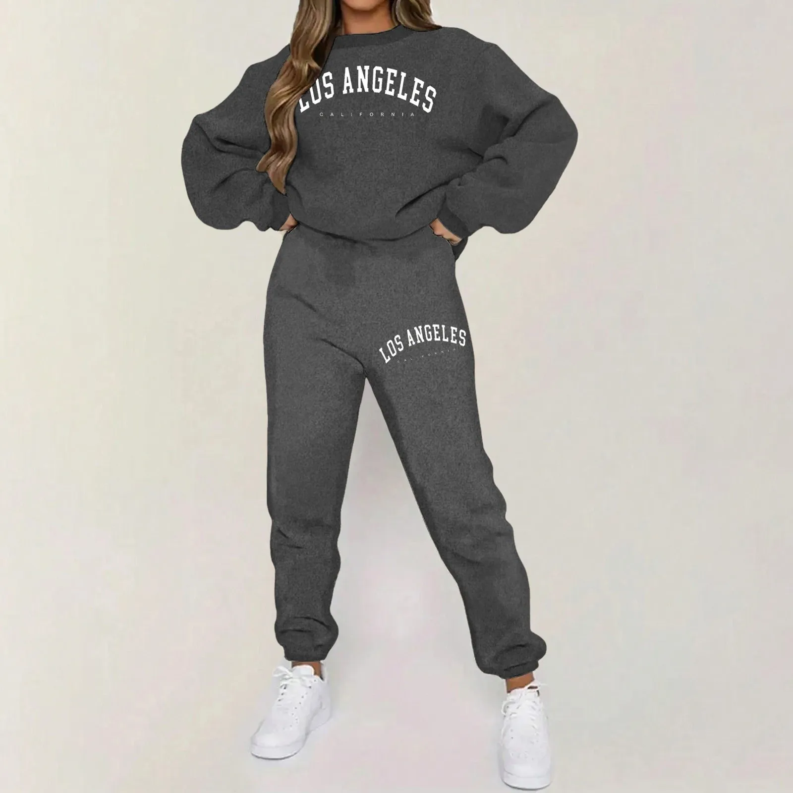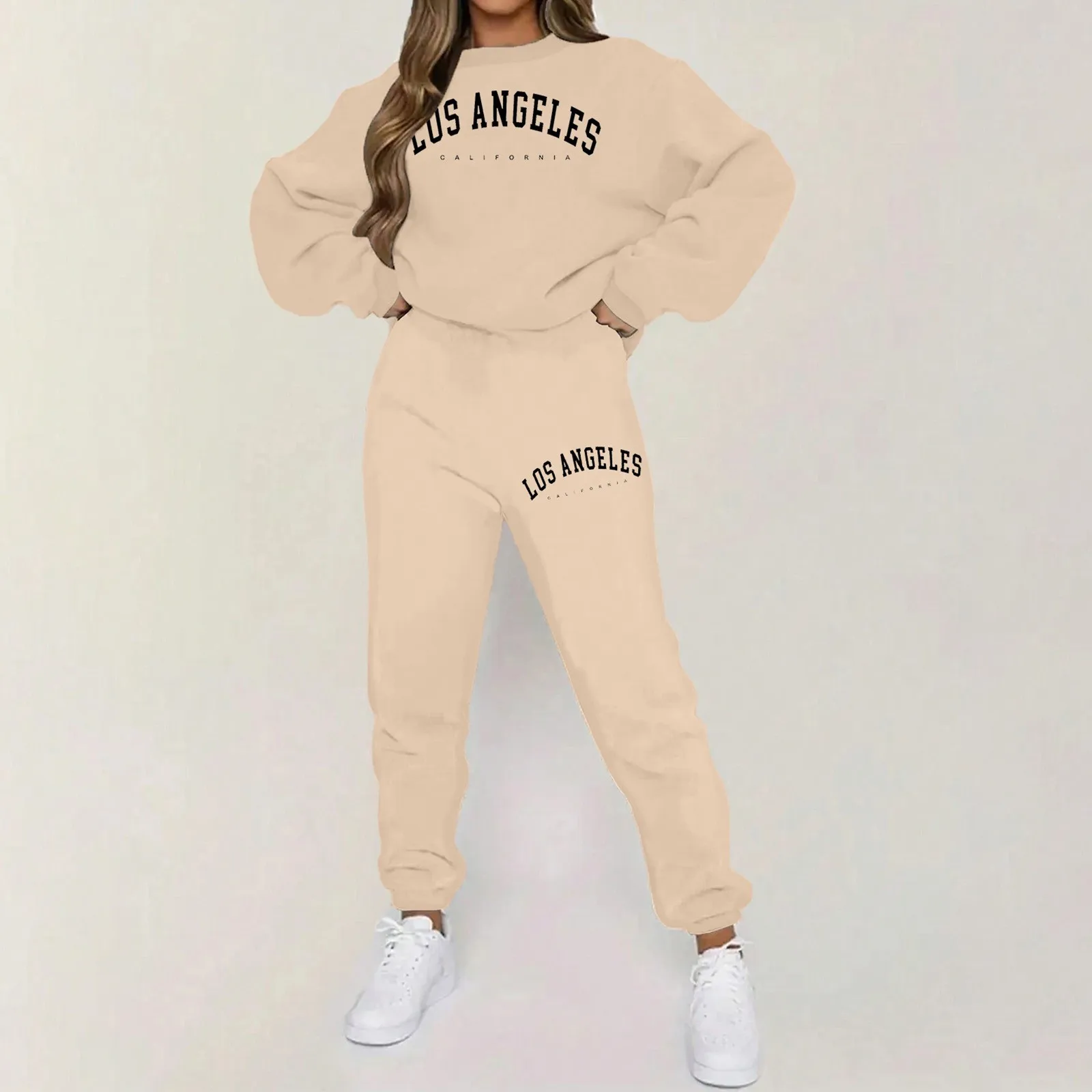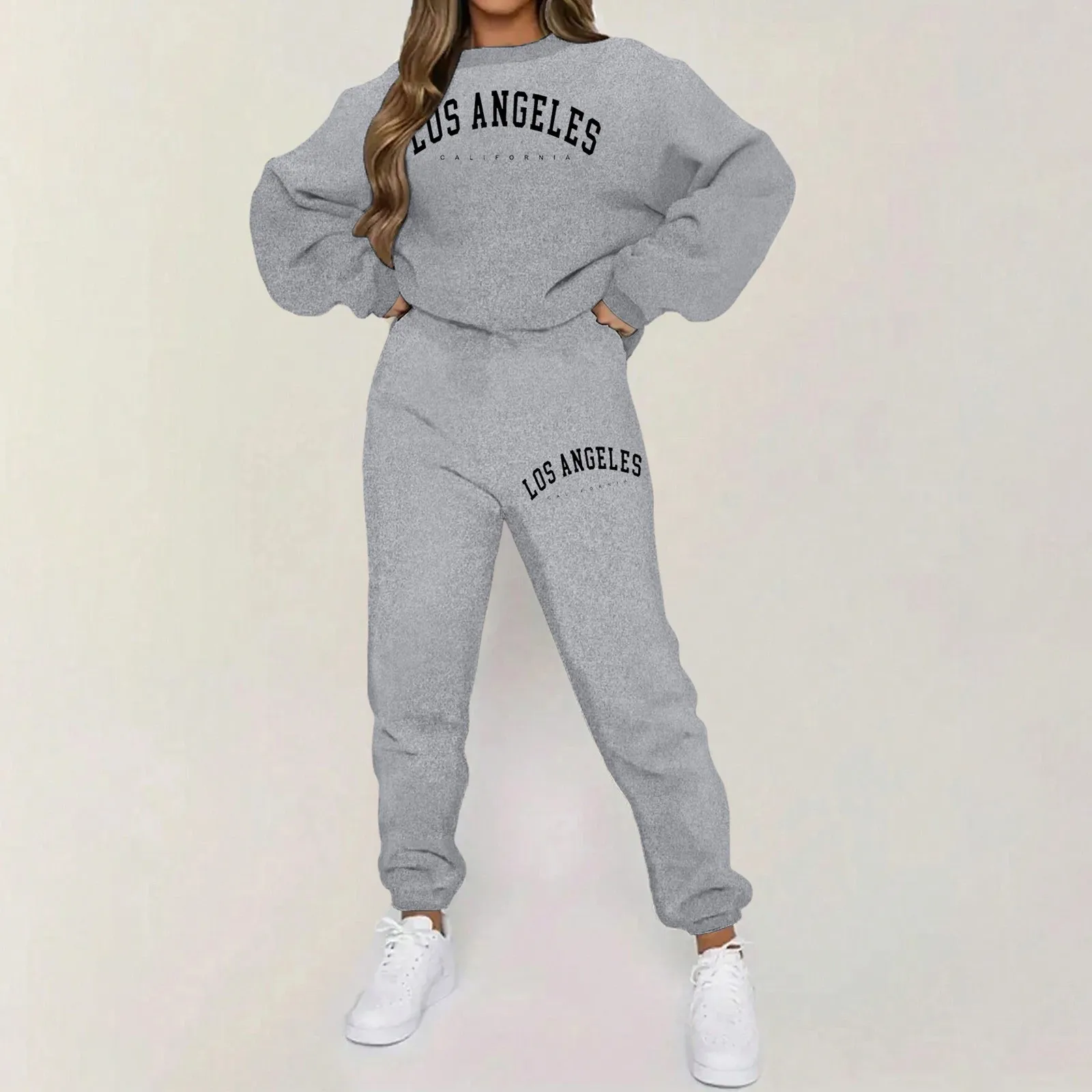 Women Long Sleeve Solid Color Hooded Sweatshirt And Pant Tracksuit Sport Suit Hooded Sport Suits Autumn Warm Hoodie With Printing