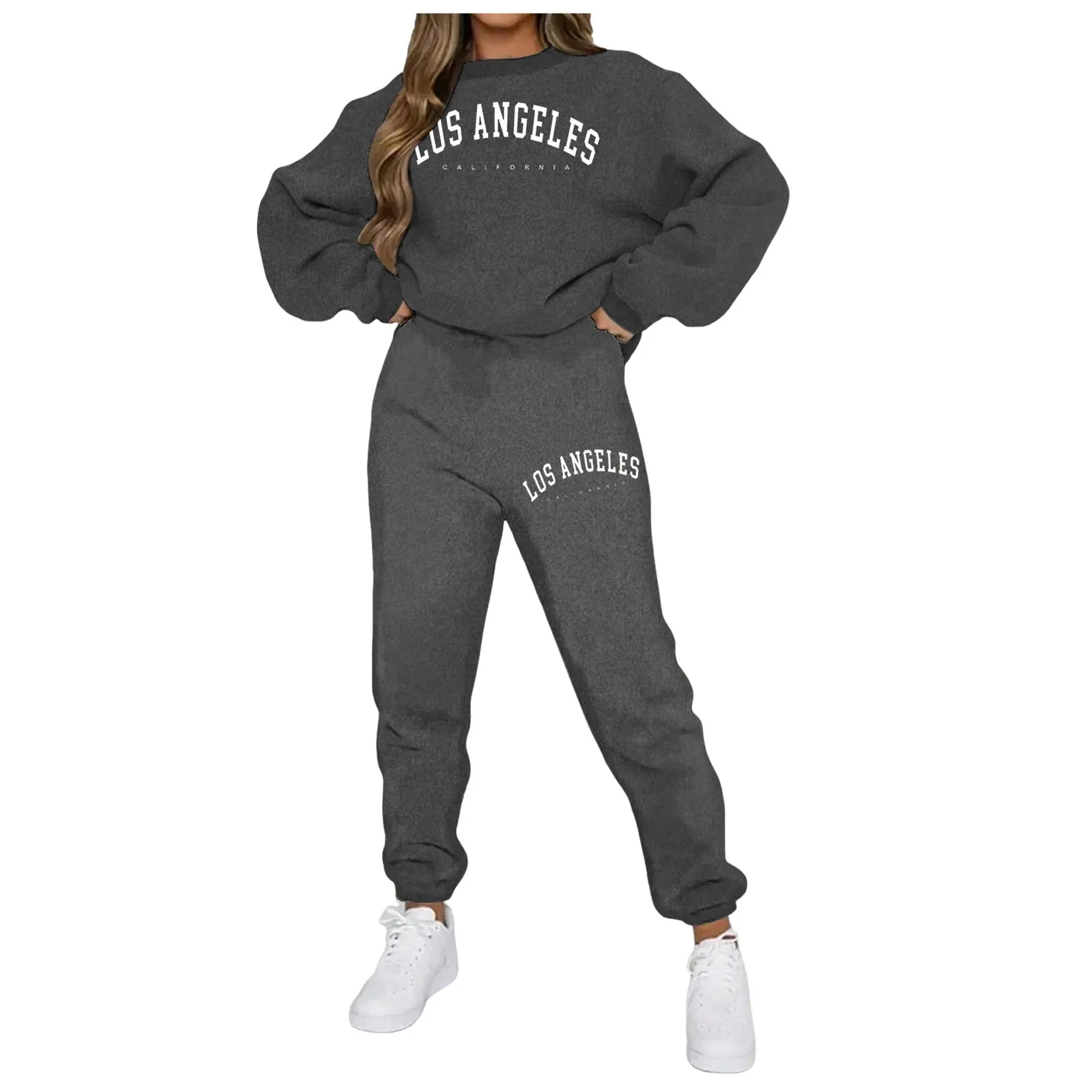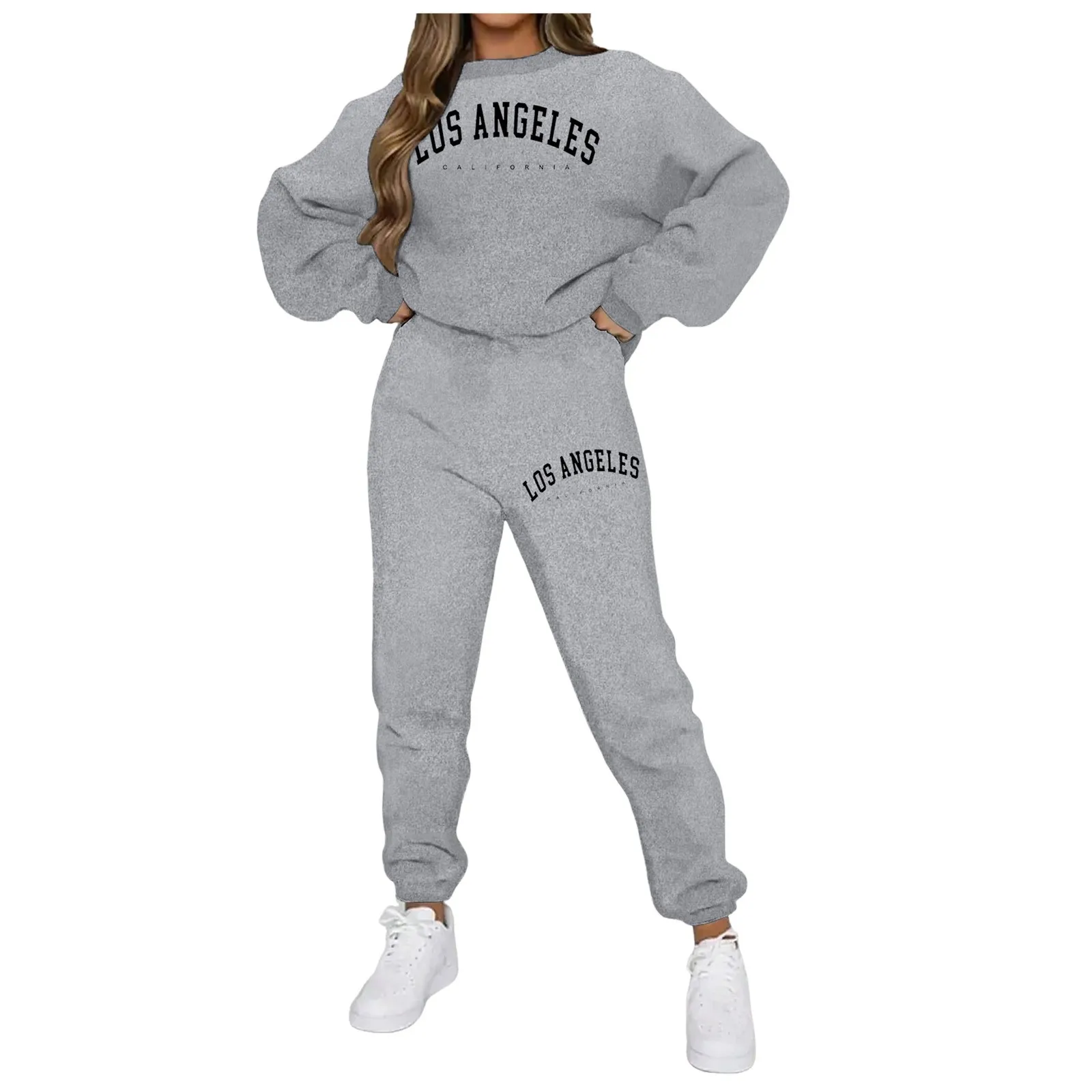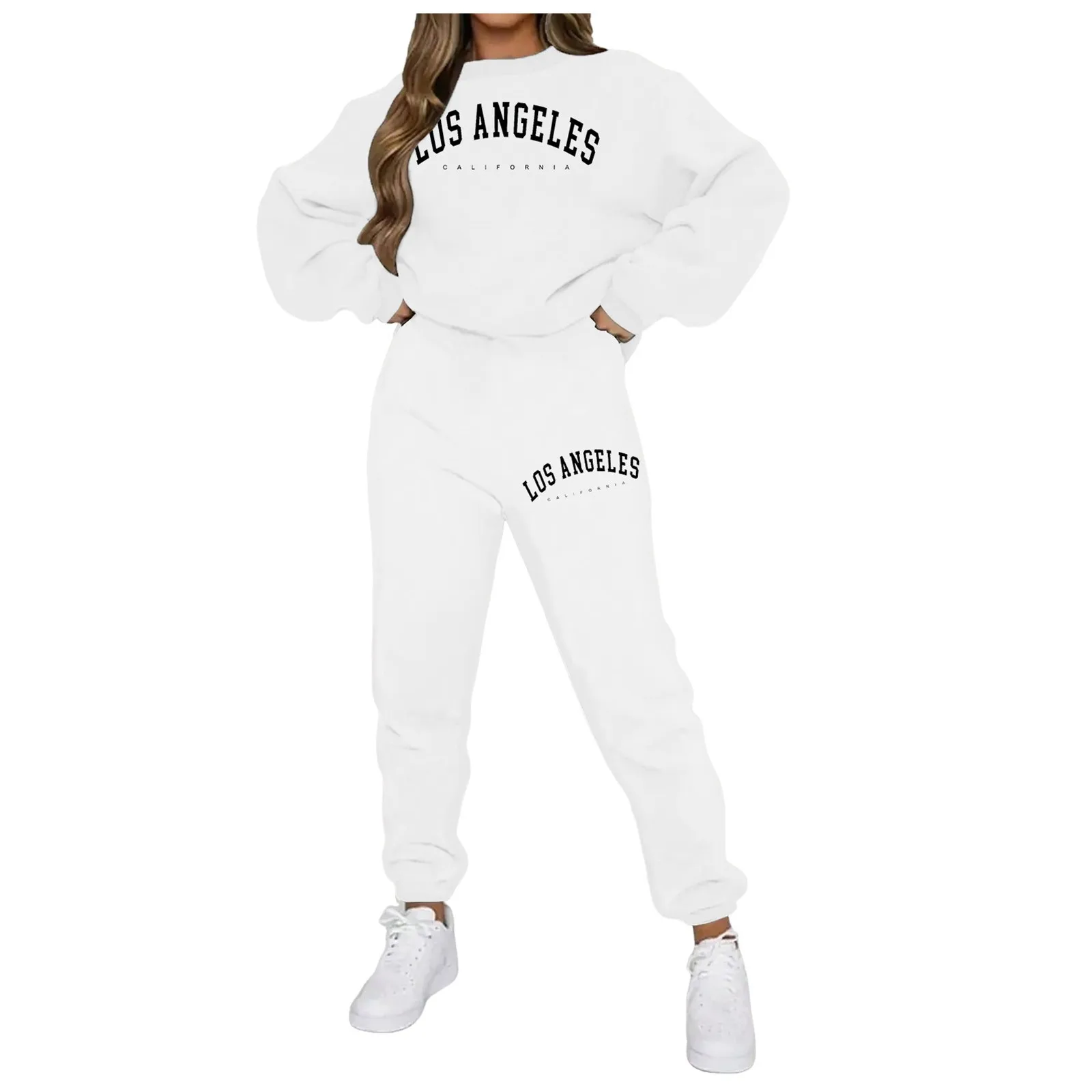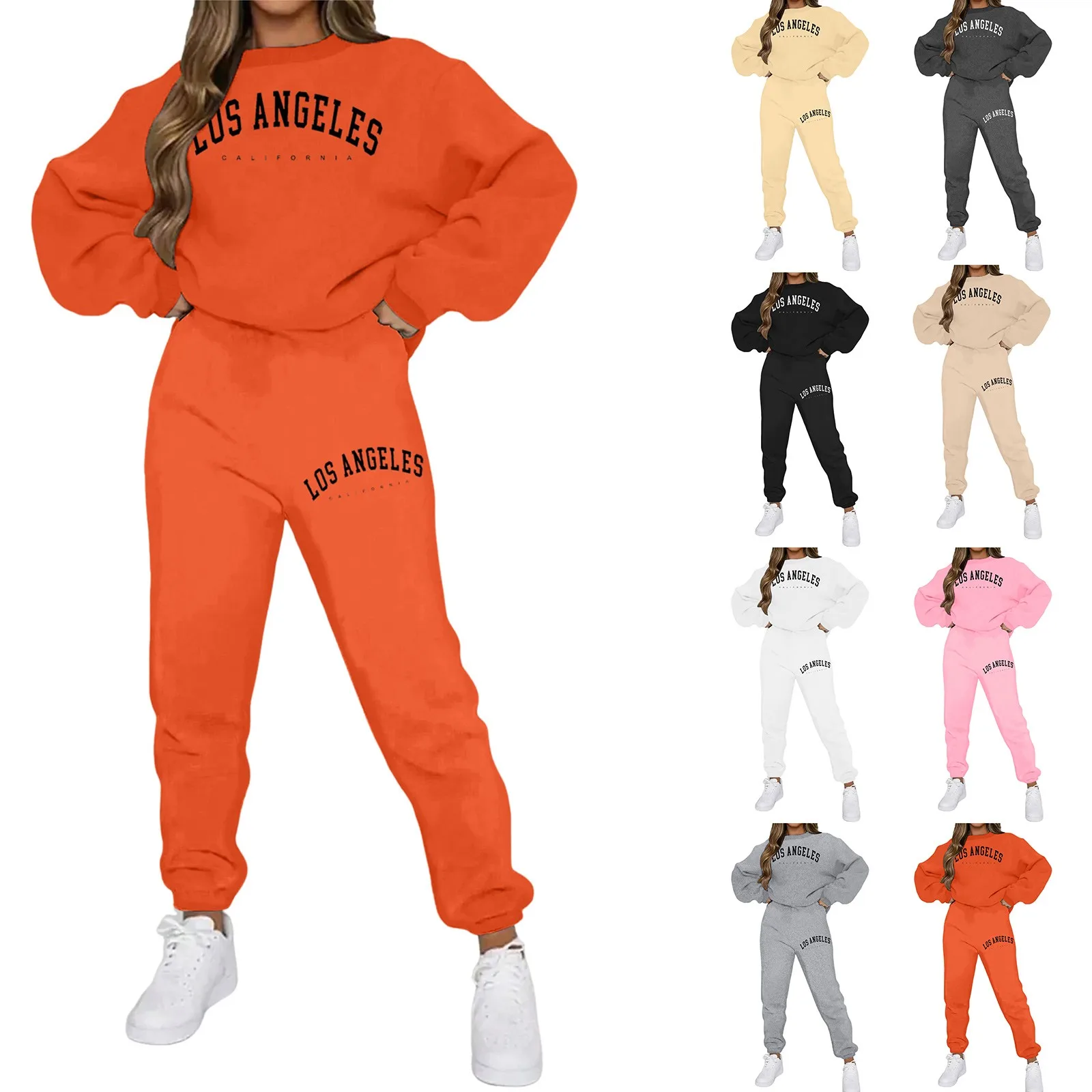 Women Long Sleeve Solid Color Hooded Sweatshirt And Pant Tracksuit Sport Suit Hooded Sport Suits Autumn Warm Hoodie with printing