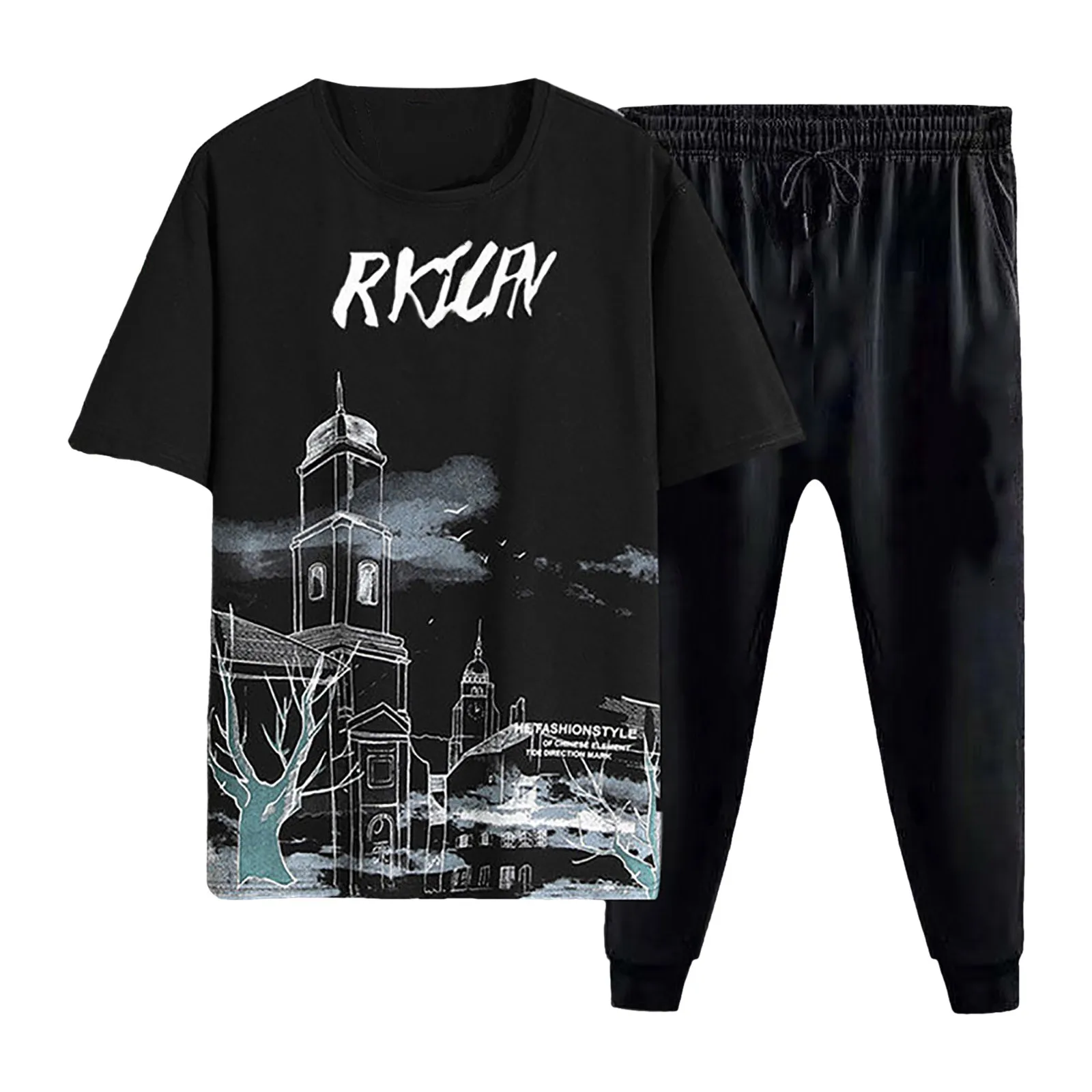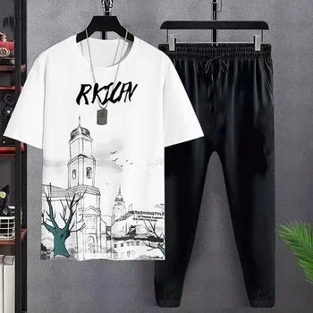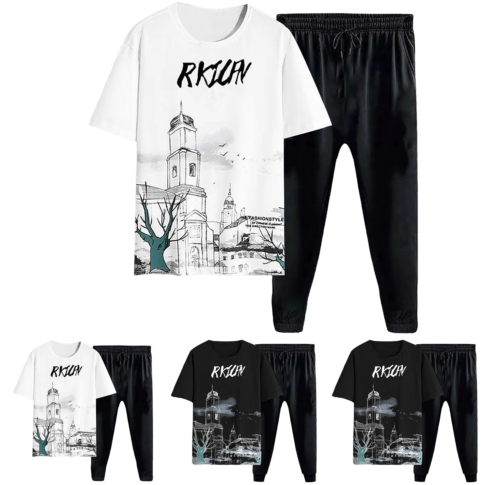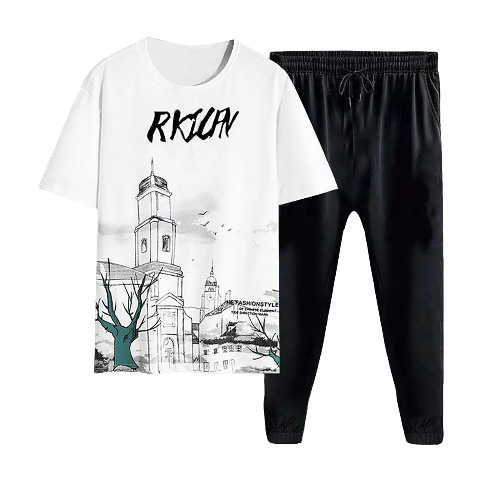 Quick Drying Sportswear Men Short Sleeved T-Shirt Trousers Suit Breathable Two Piece Sets Summer Casual Clothing