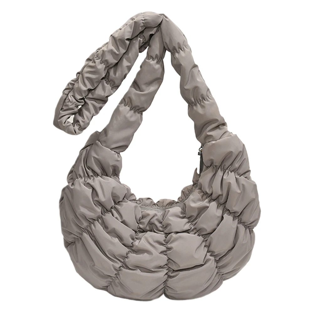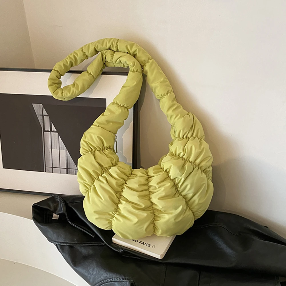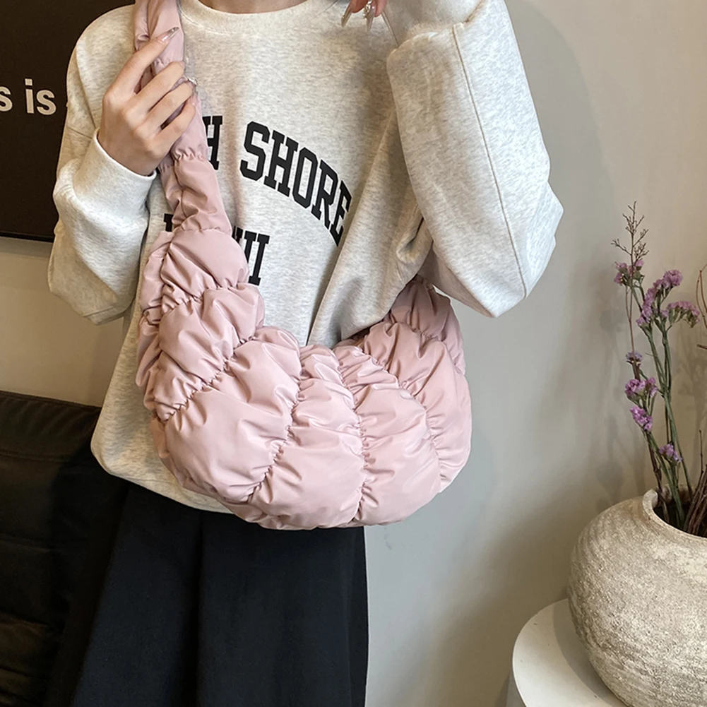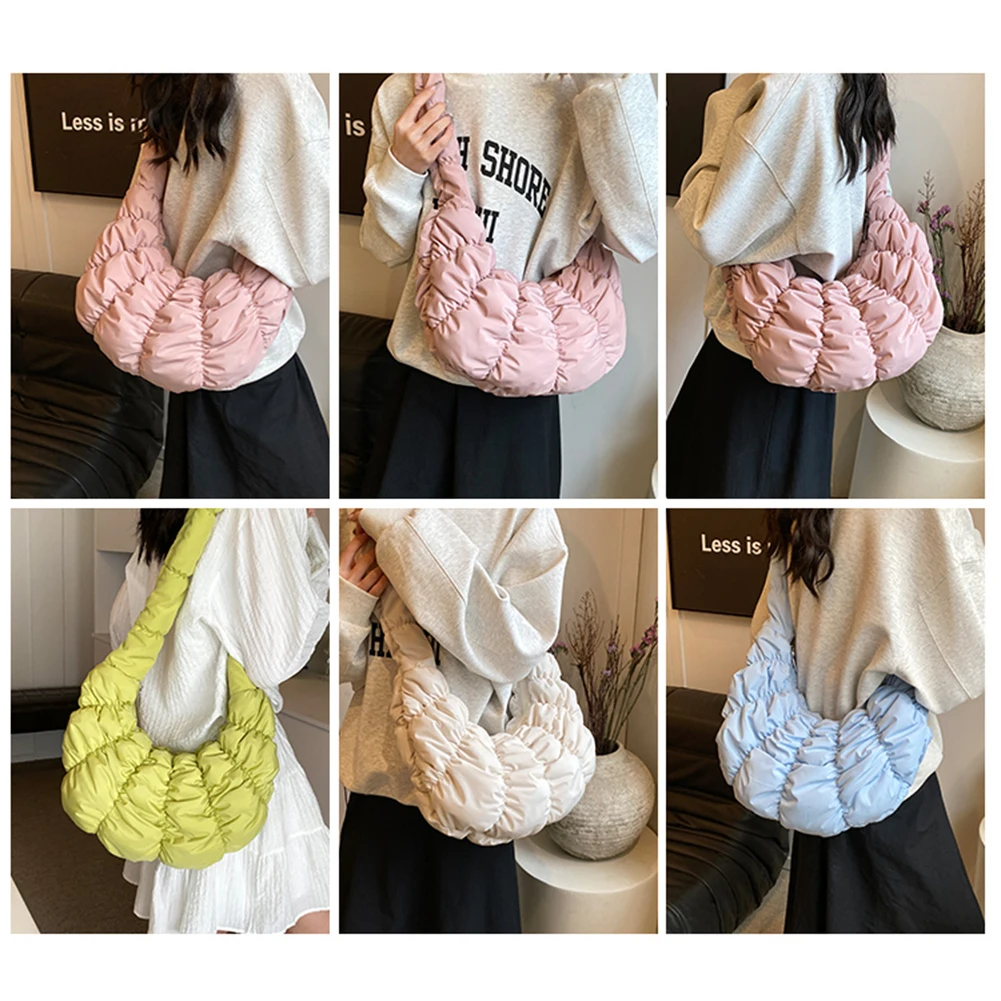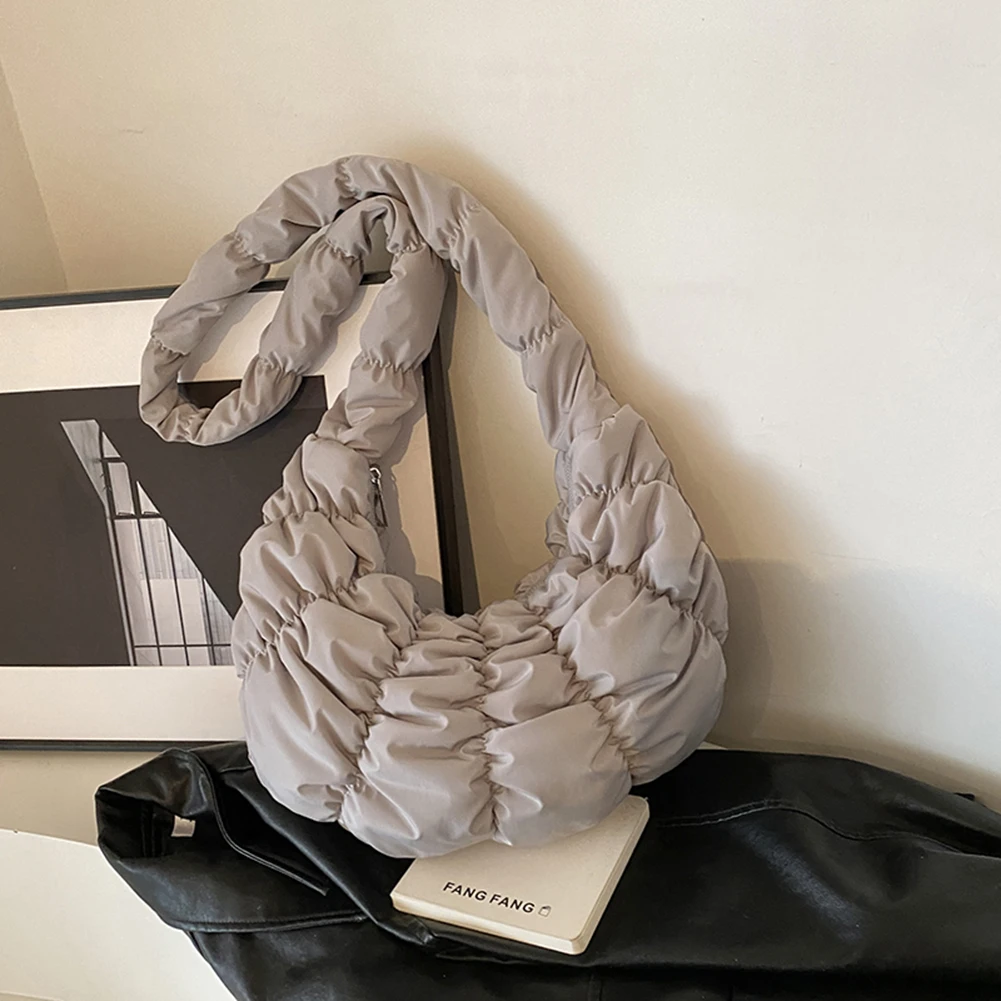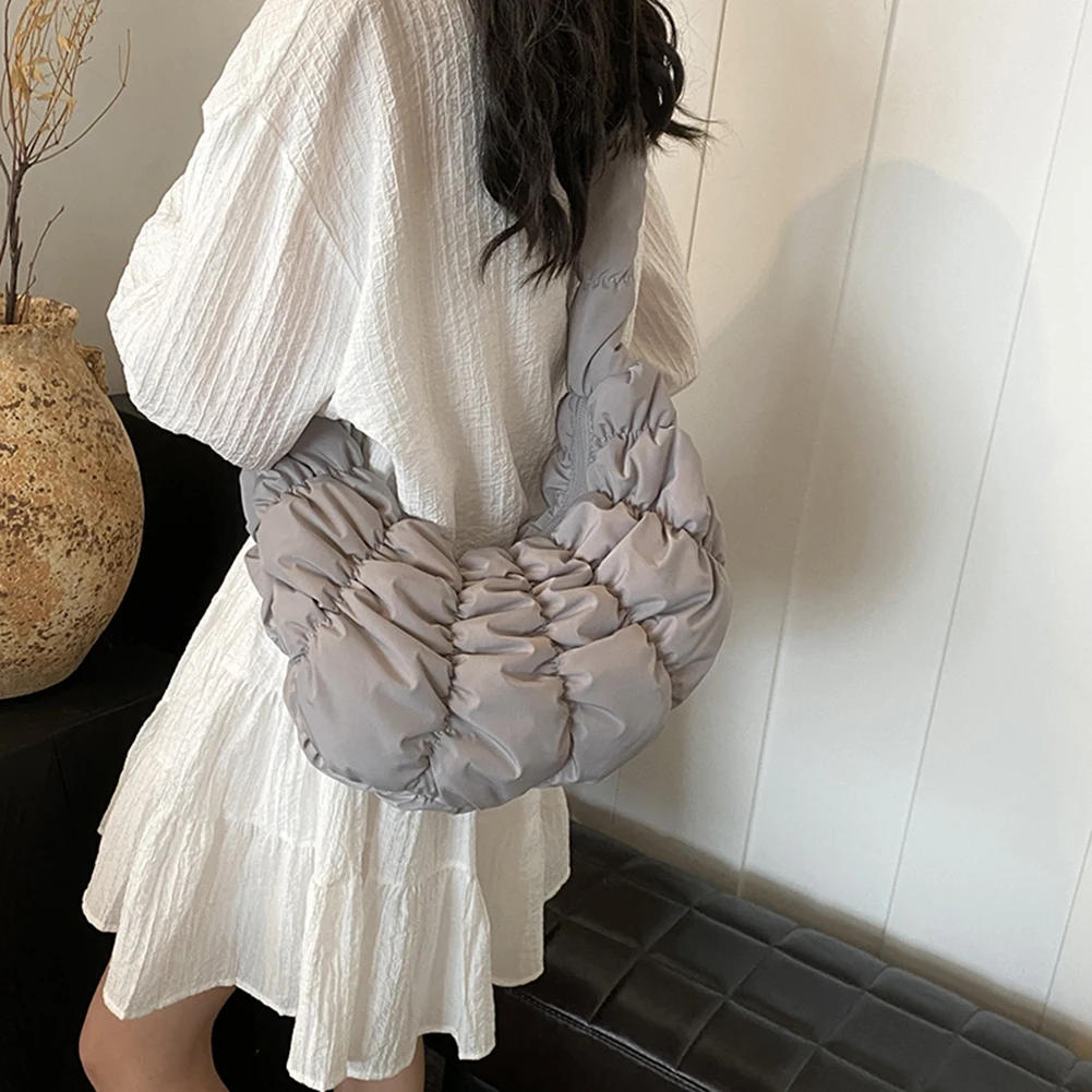 Ruched Cloud Trendy Crossbody Bag Nylon Fashion Hobo Bag Large Capacity Puffer Tote Bag Solid Color Crescent Bag for Women