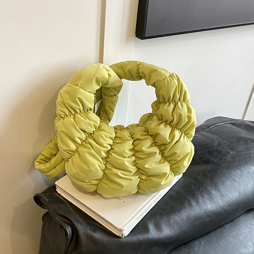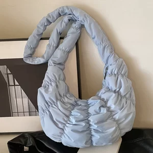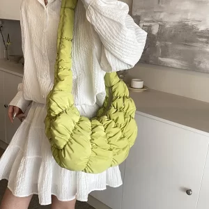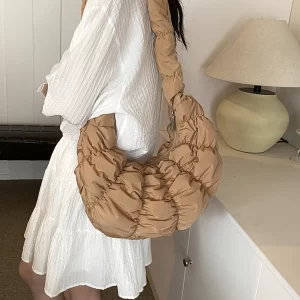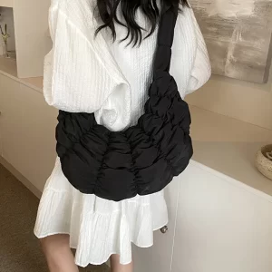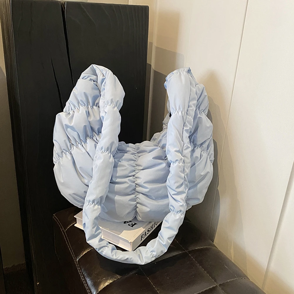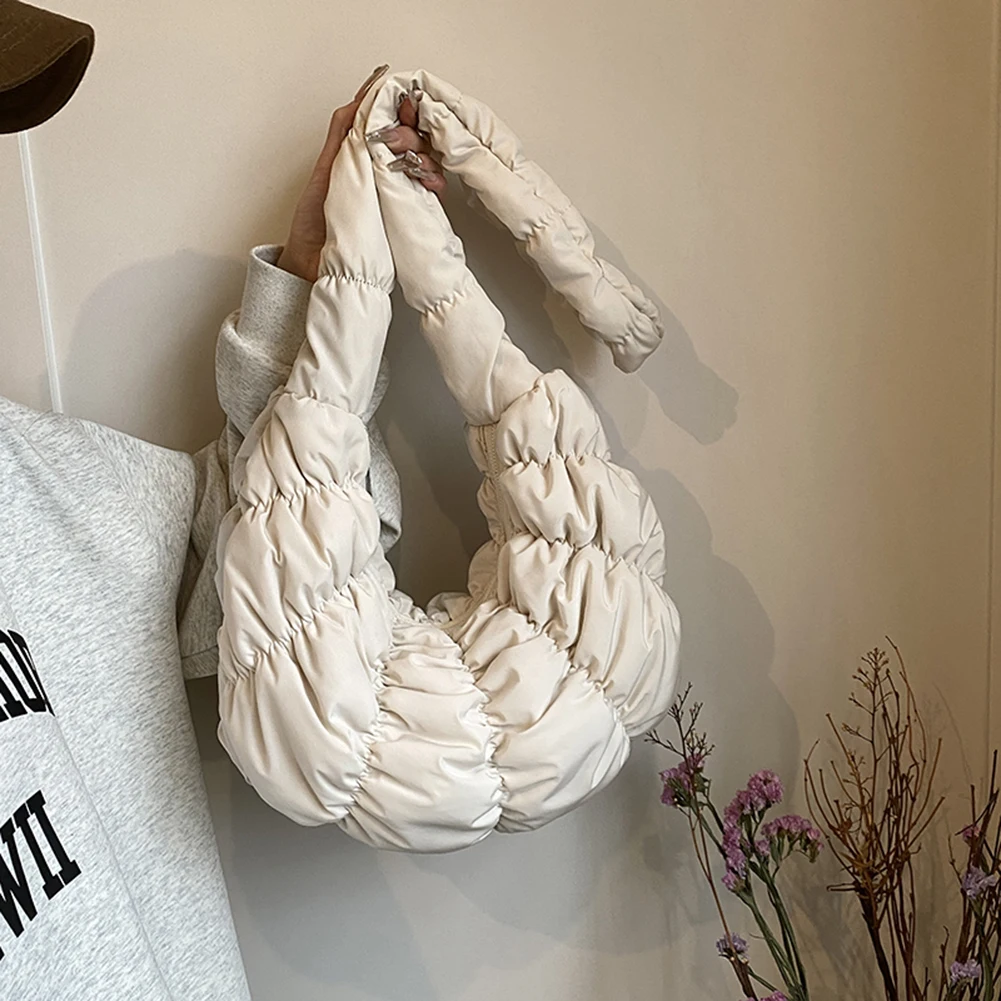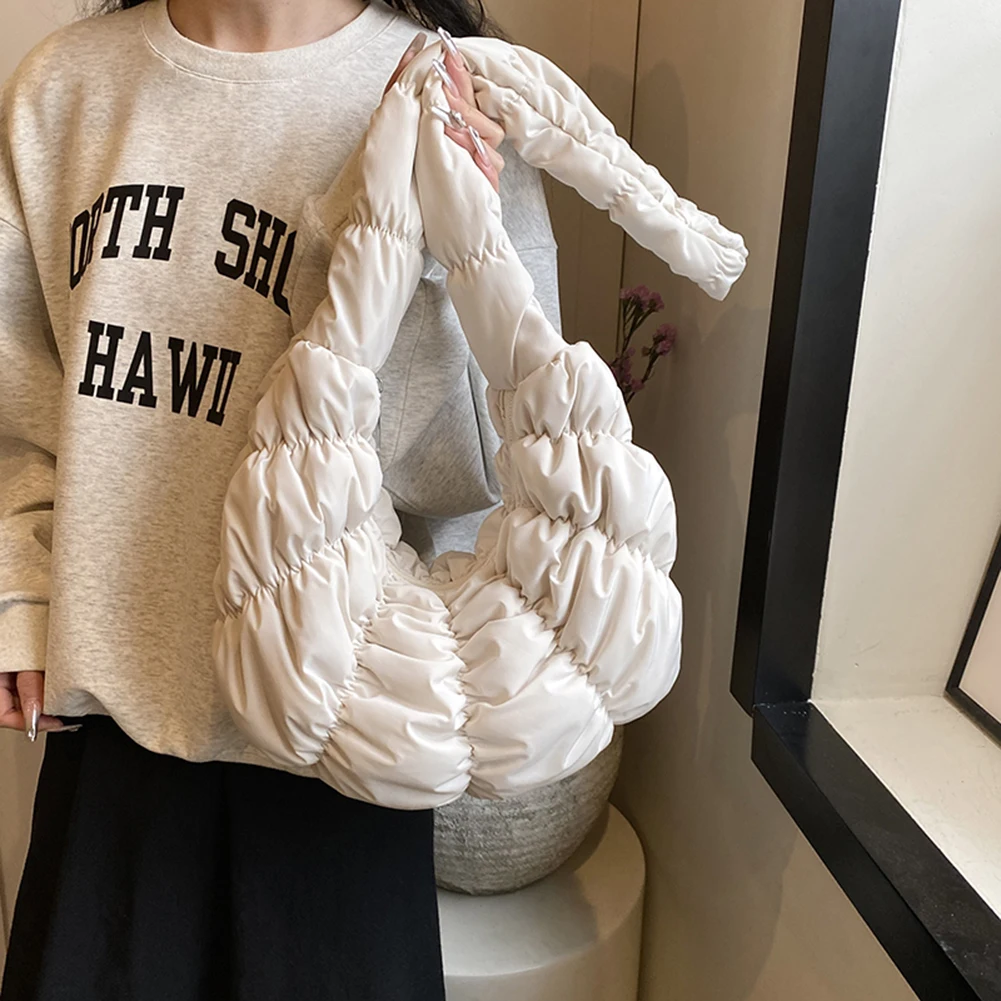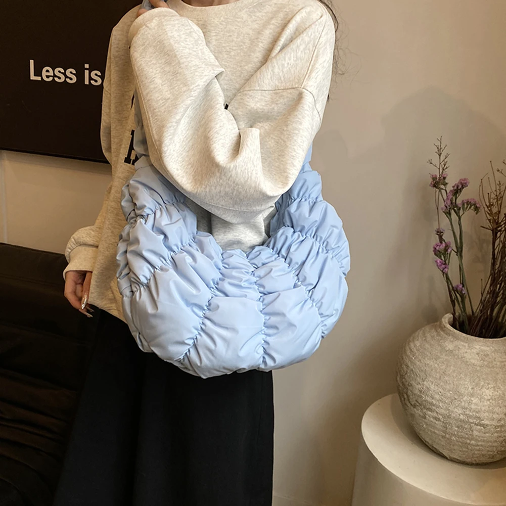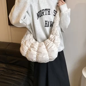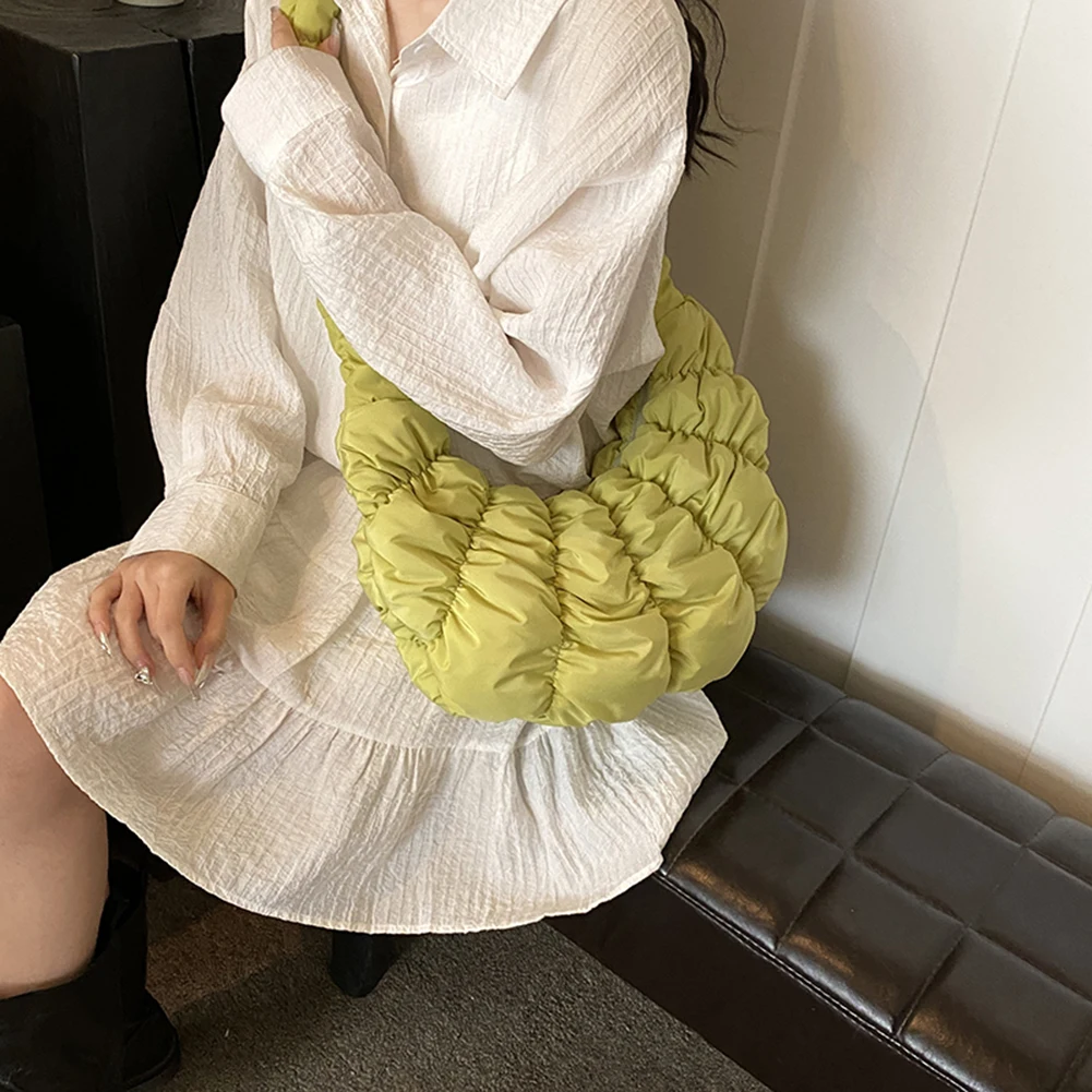 Ruched Cloud Trendy Crossbody Bag Nylon Fashion Hobo Bag Large Capacity Puffer Tote Bag Solid Color Crescent Bag for Women