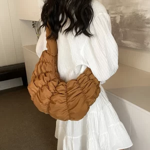 3.Stylish Design: Featuring a solid color design, this puffer tote bag can be used as a shoulder bag or a crossbody bag, effortlessly complementing your various styles. It adds a touch of elegance to your outfits and enhances your overall appearance.