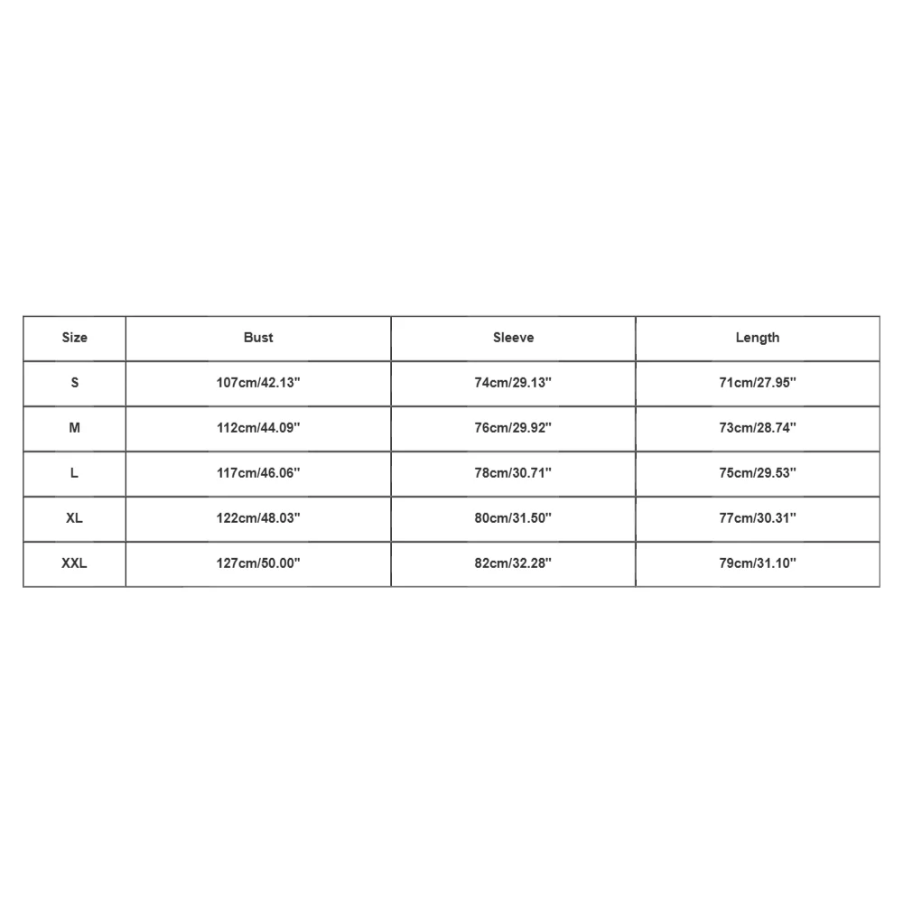 | Size:XXL | Bust:127cm/50.00” | Sleeve:82cm/32.28” | Length:79cm/31.10” |