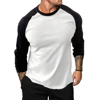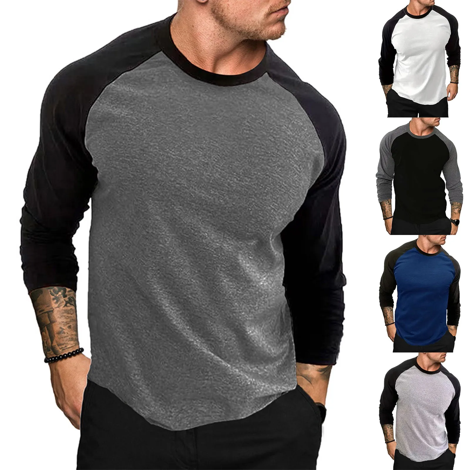 Men S Fashionable Casual Comfortable T Shirt Color Block Raglan Sleeve Long Sleeve Top