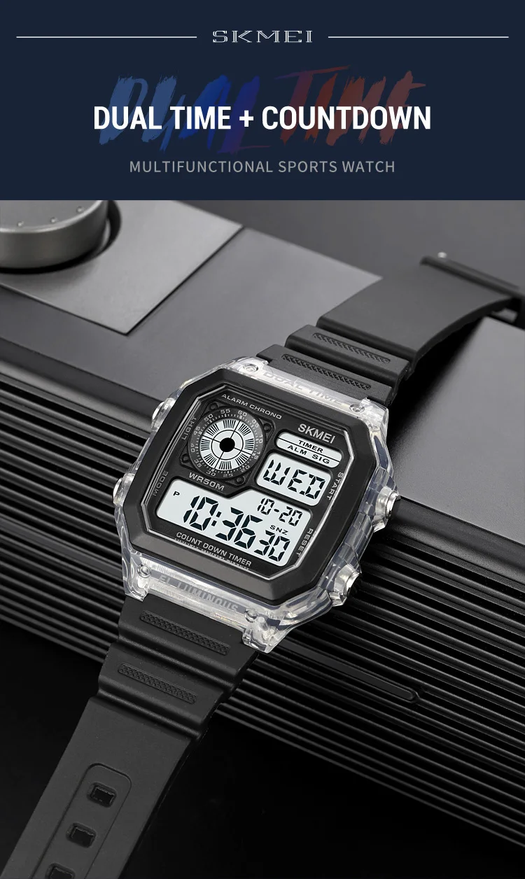 SKMEI Japan Digital Movement Countdown Sport Watches Mens Multifunction 5Bar Waterproof Chrono Wristwatch Clock reloj hombre