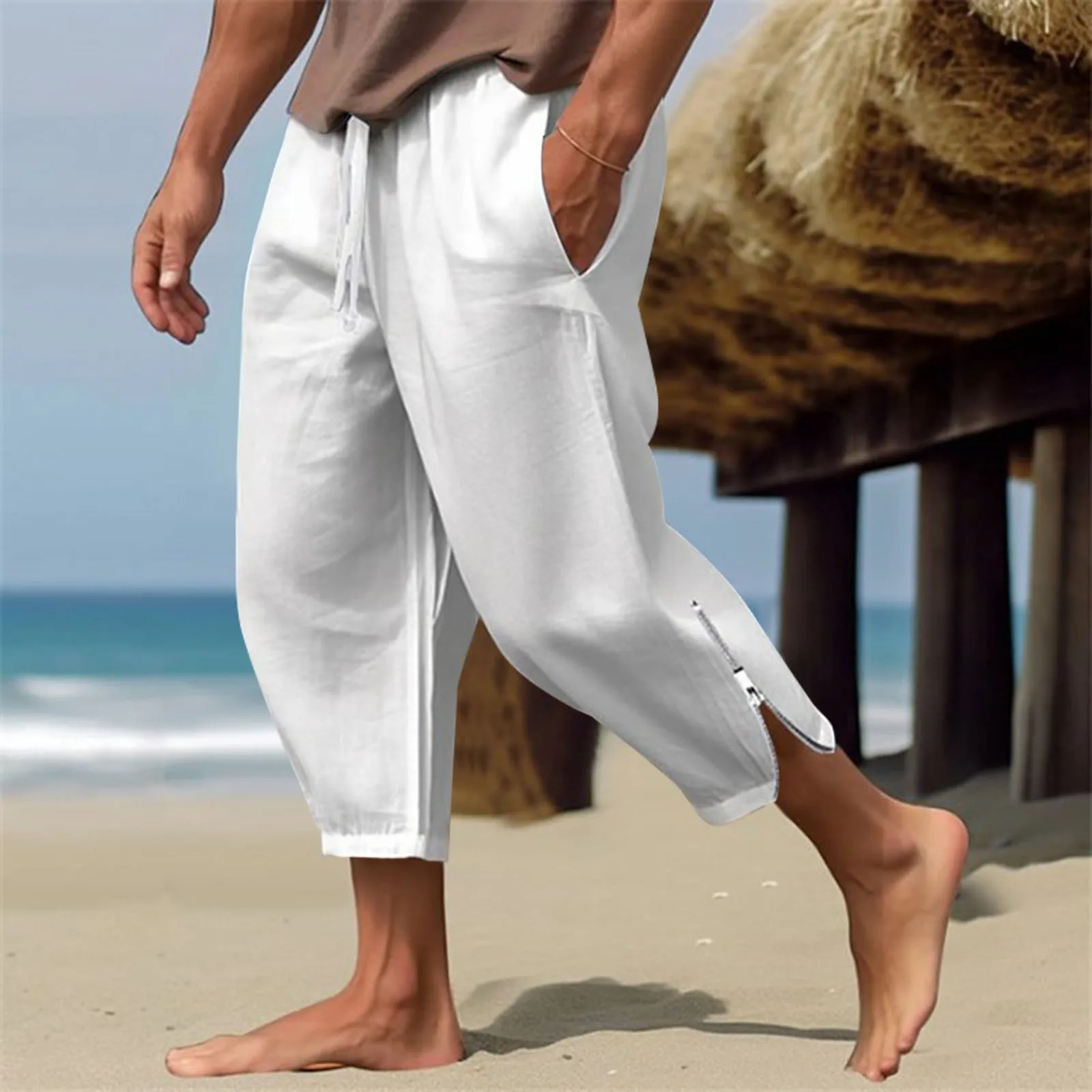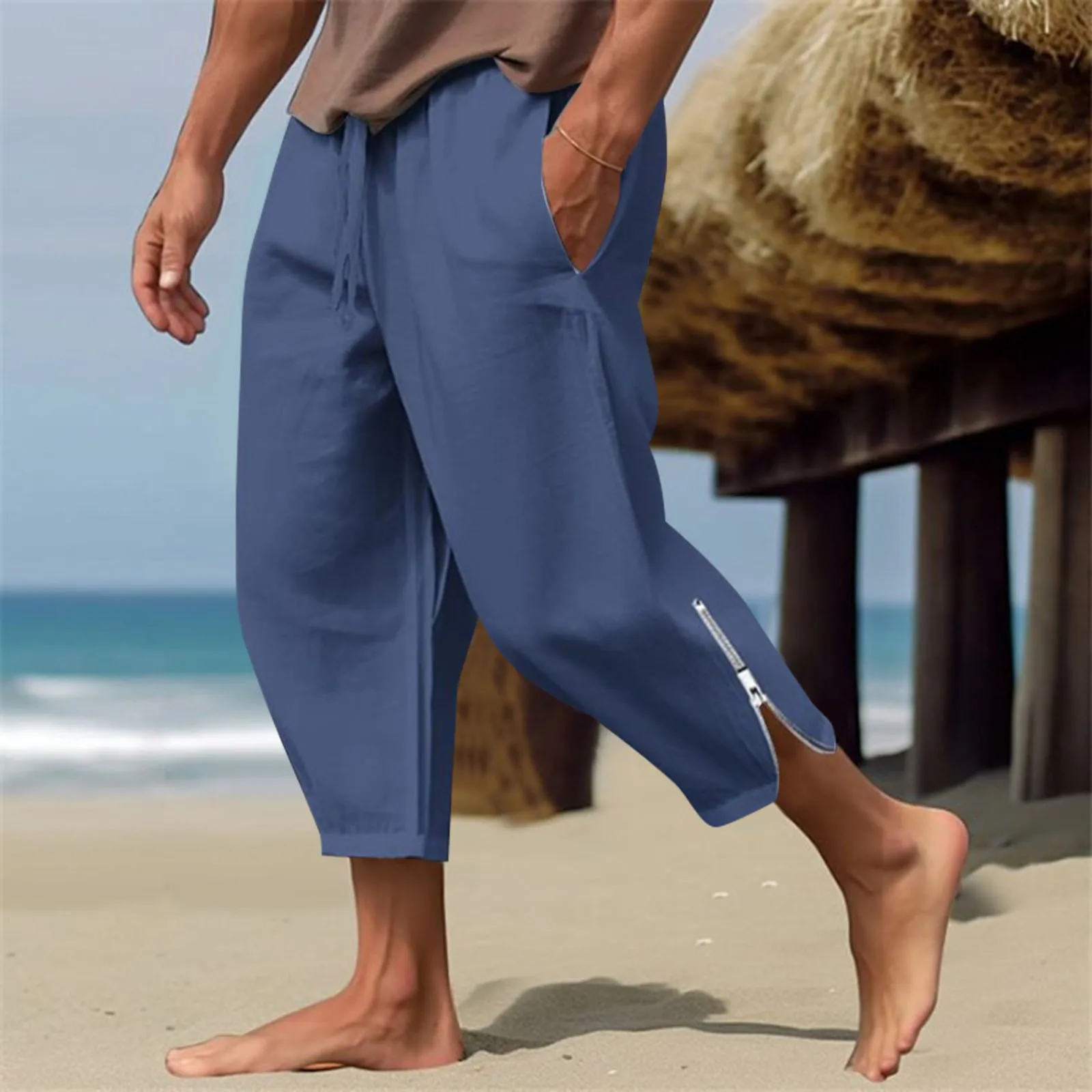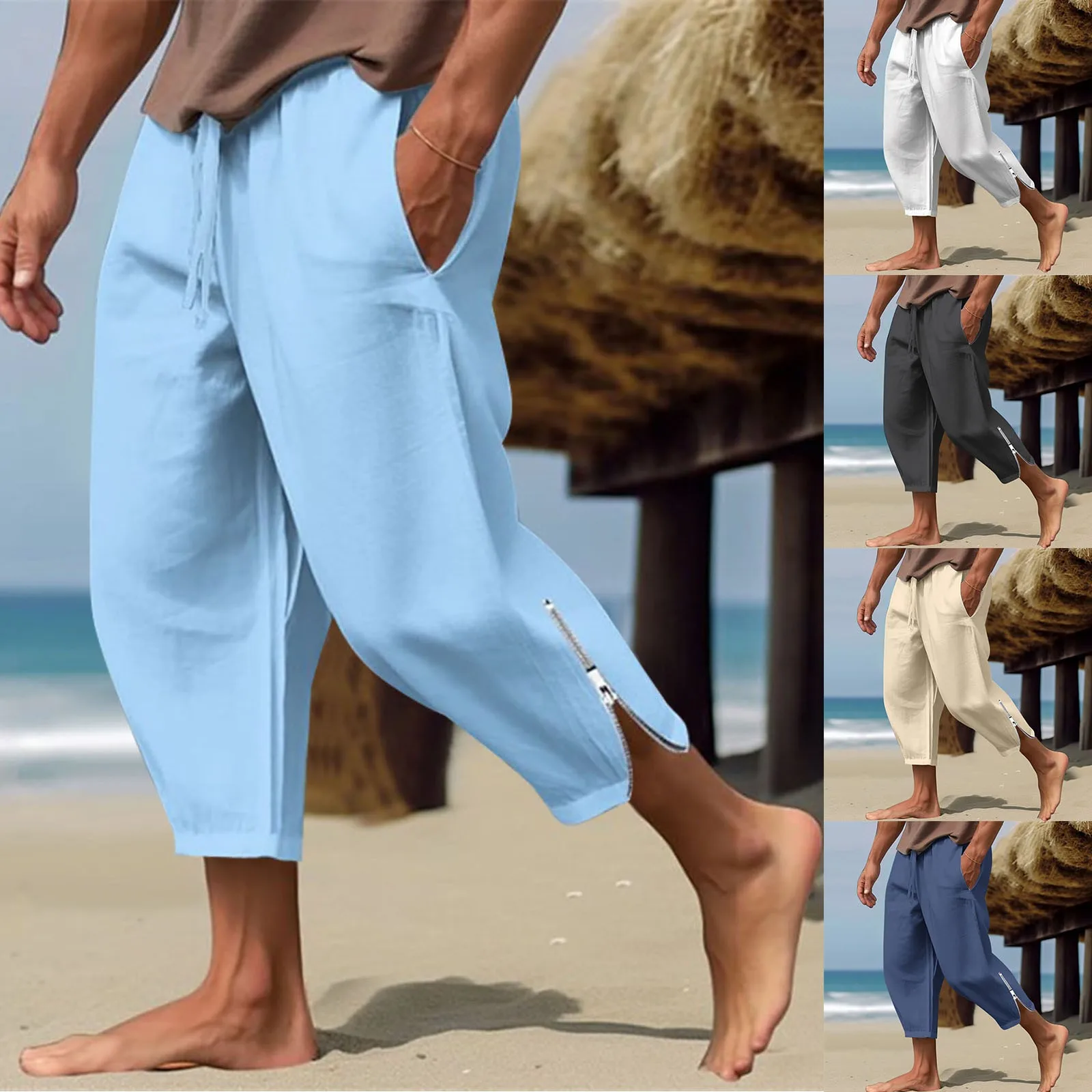 Solid Color Harem Pants Casual Capri Pants Lightweight Loose Beach Summer Pant Men Sweatpants Korean Fashion Sportswear