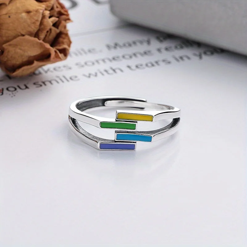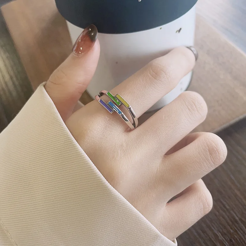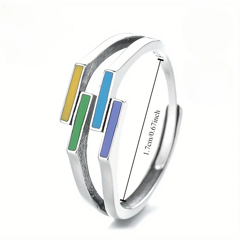 Elevate your jewelry collection with our S925 Sterling Silver Geometric Enamel Ring. This stunning piece features an adjustable open design that ensures a perfect fit for everyone. The ring showcases a multicolor irregular design, making it a unique statement piece that blends style and versatility.