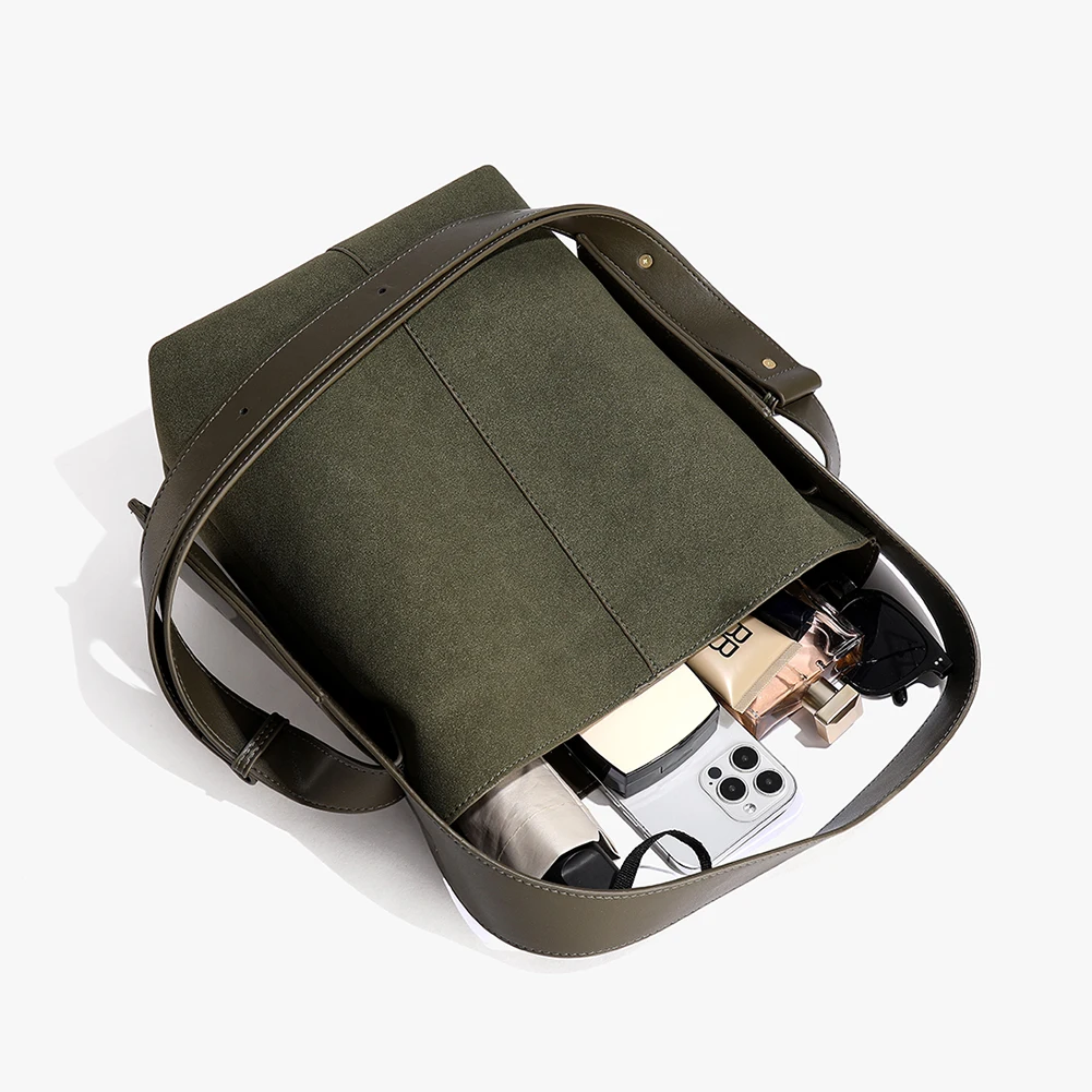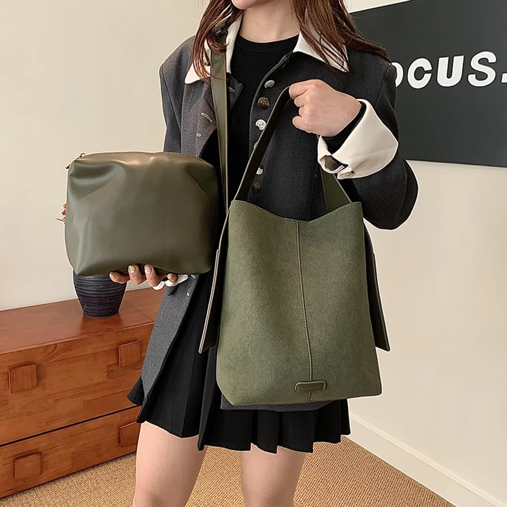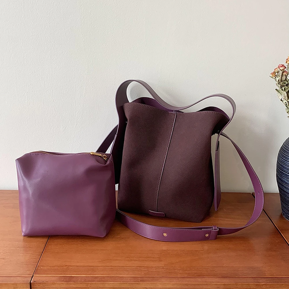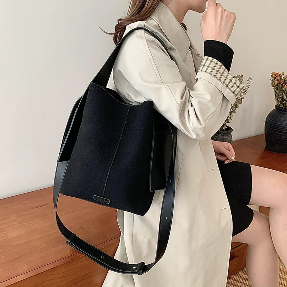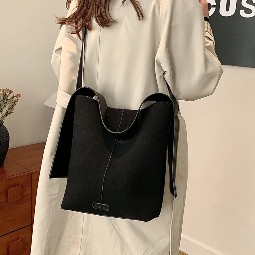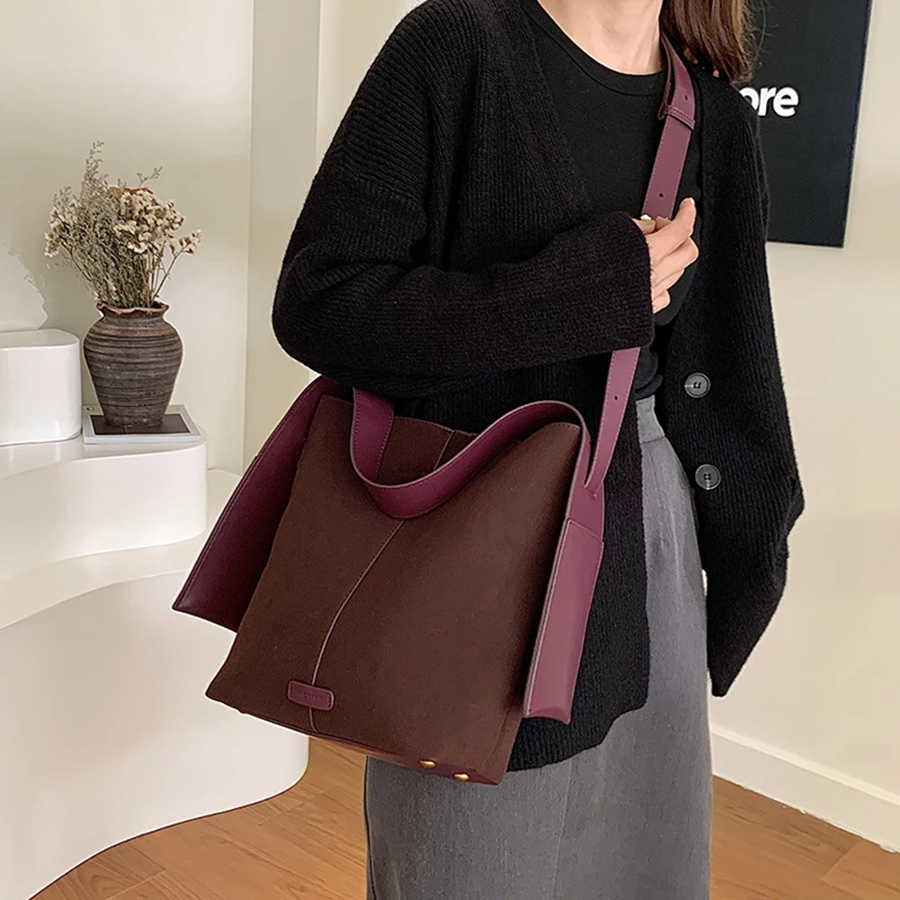 Bucket Bag for Women Men Adjustable Strap Shoulder Bag Suede Solid Color Large Tote Bag Trendy Handbag Work Travel Bag
