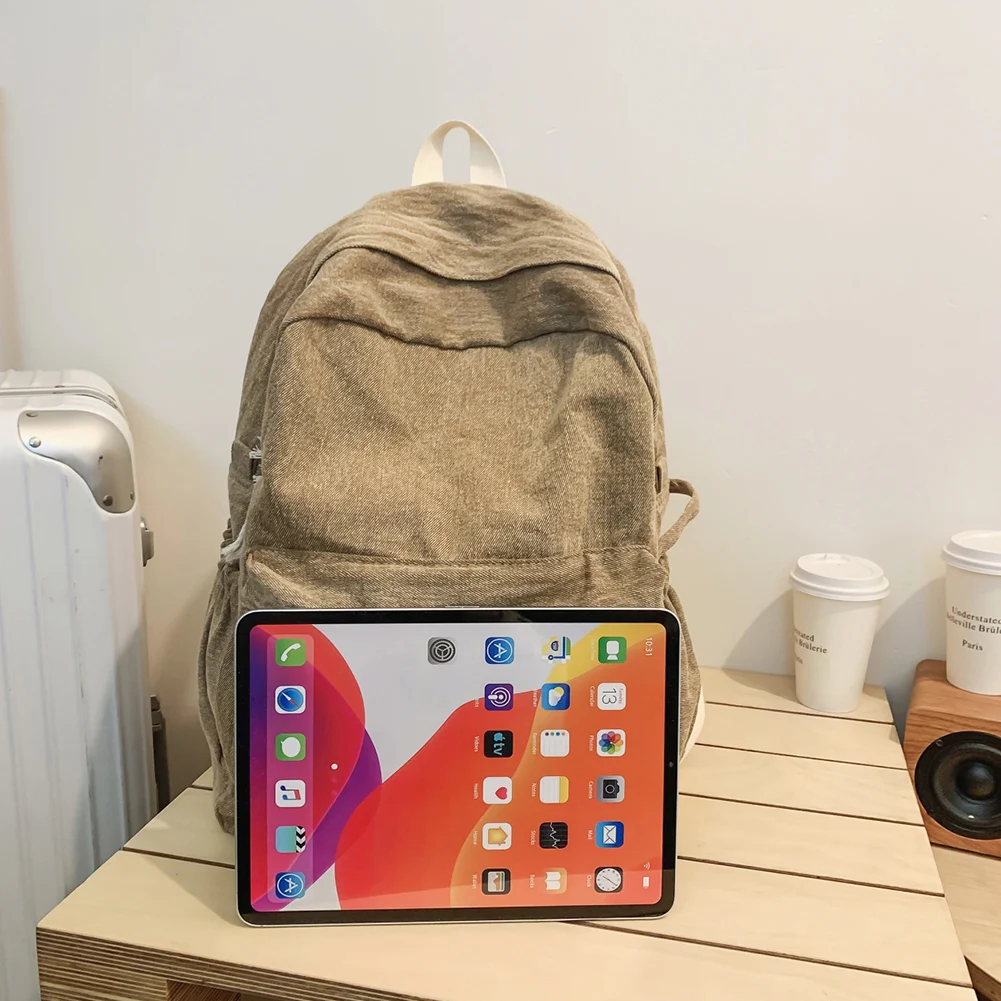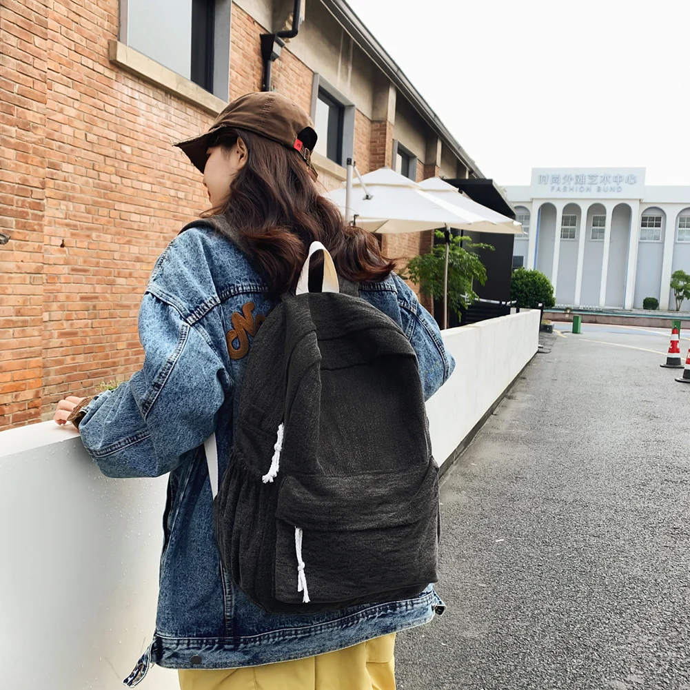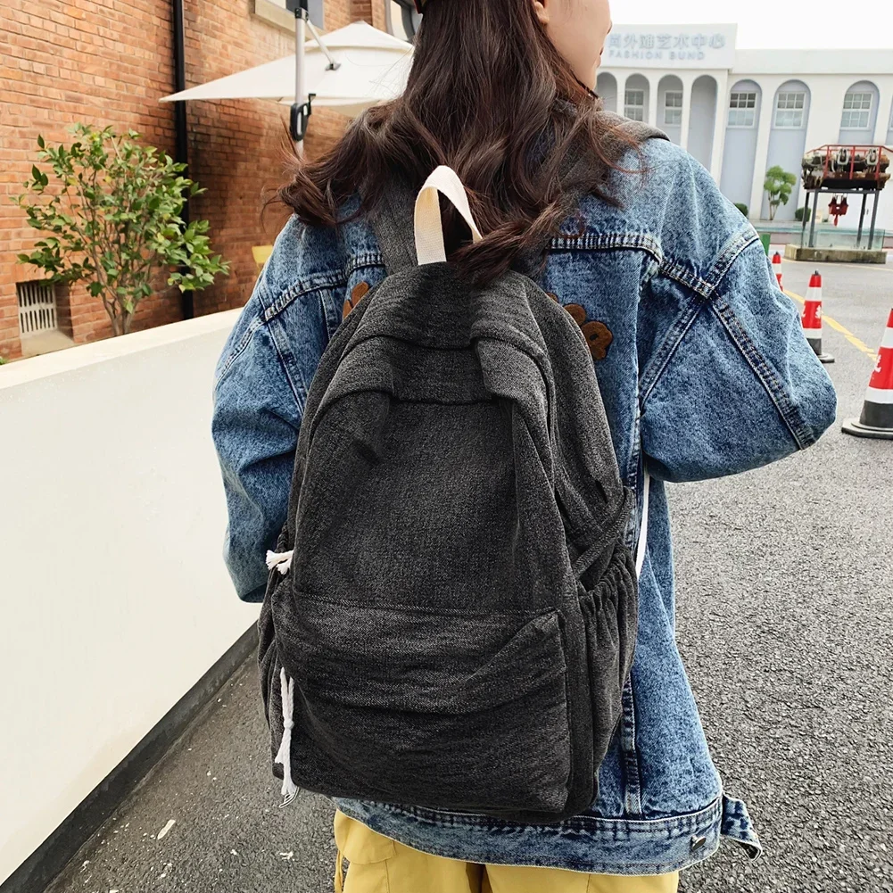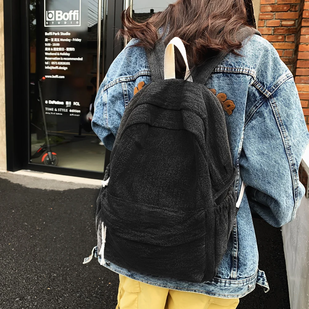 Fashion Students Backpack Casual Denim Knapsack Adjustable Strap Trendy Teenagers Daypack Solid Color Commuting Backpack