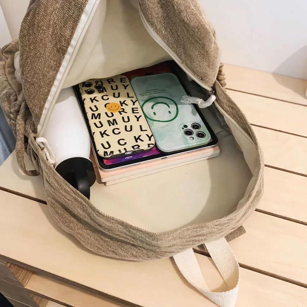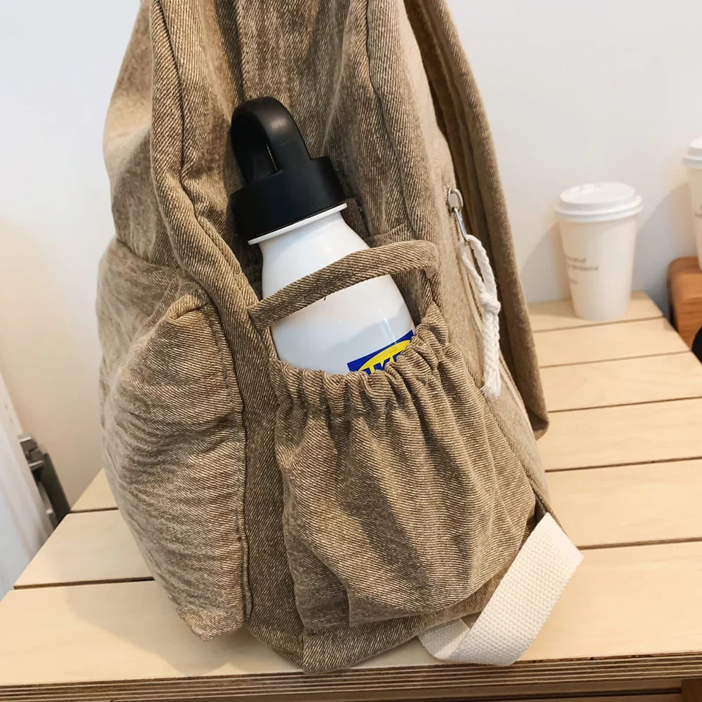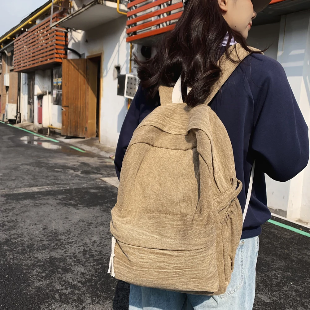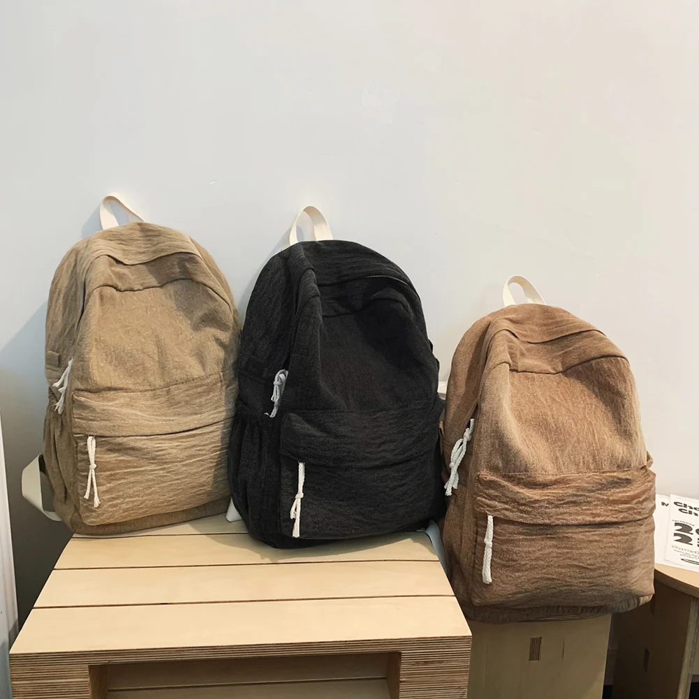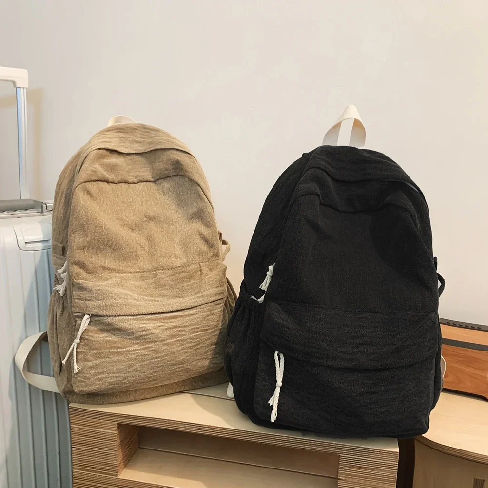 Fashion Students Backpack Casual Denim Knapsack Adjustable Strap Trendy Teenagers Daypack Solid Color Commuting Backpack