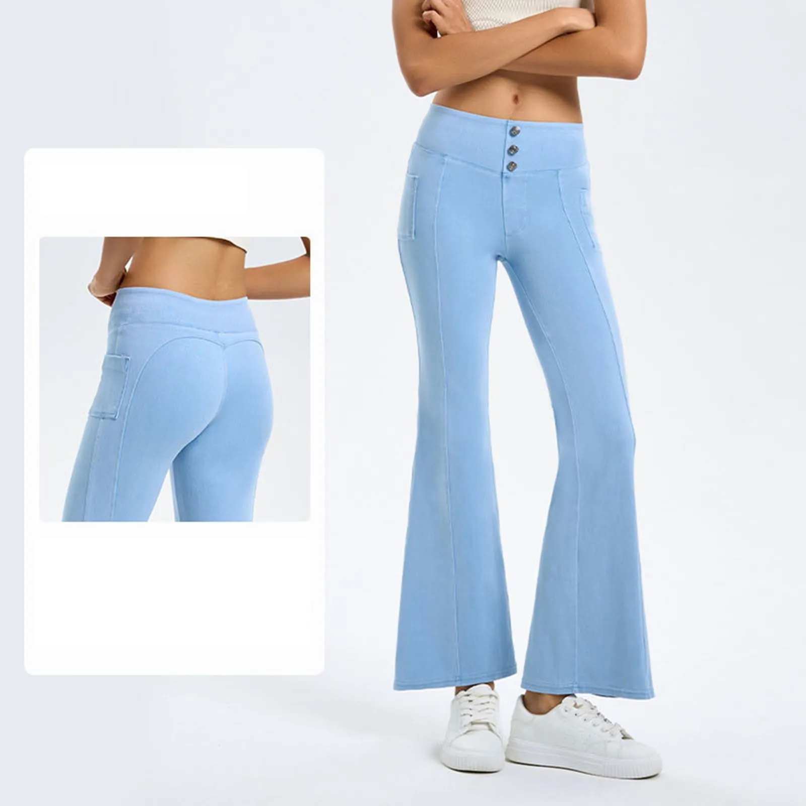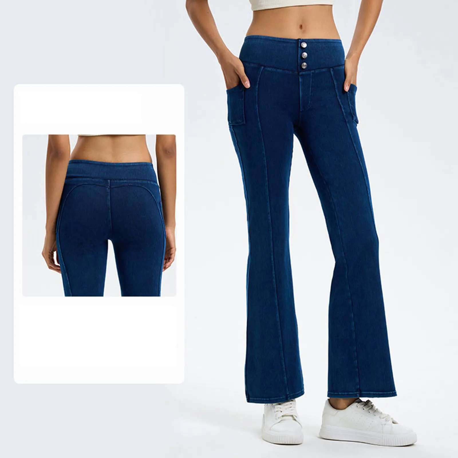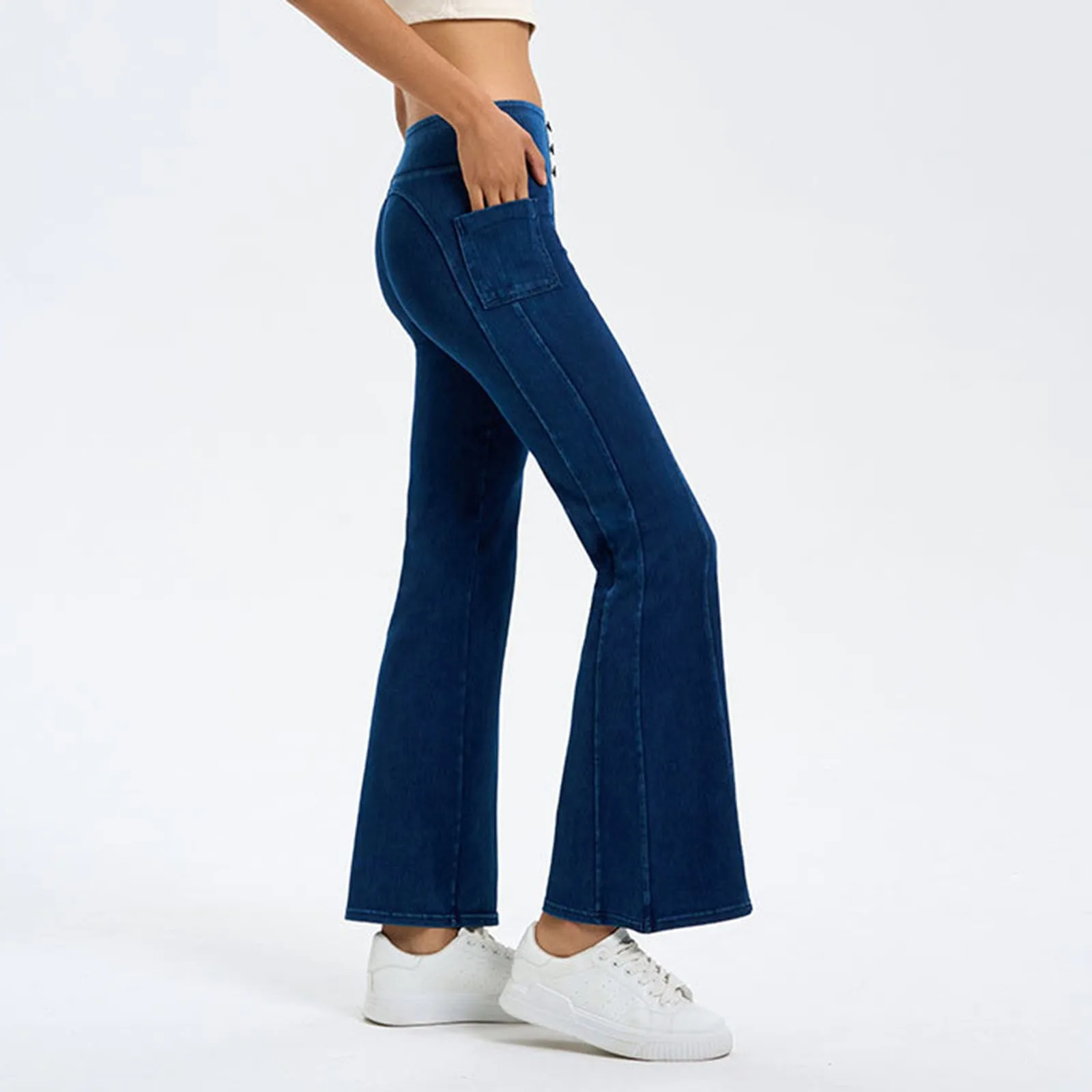 Women High Waisted Denim Yoga Bottom Pants, High Stretch Sports And Fitness Casual Pants