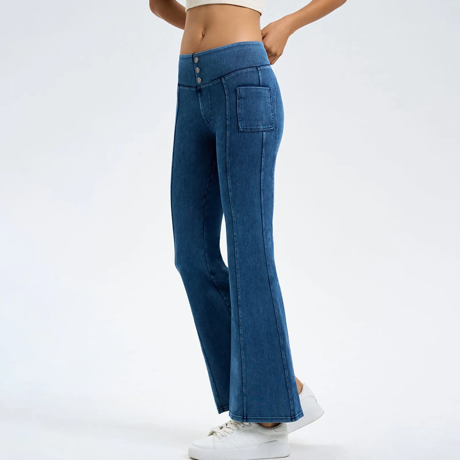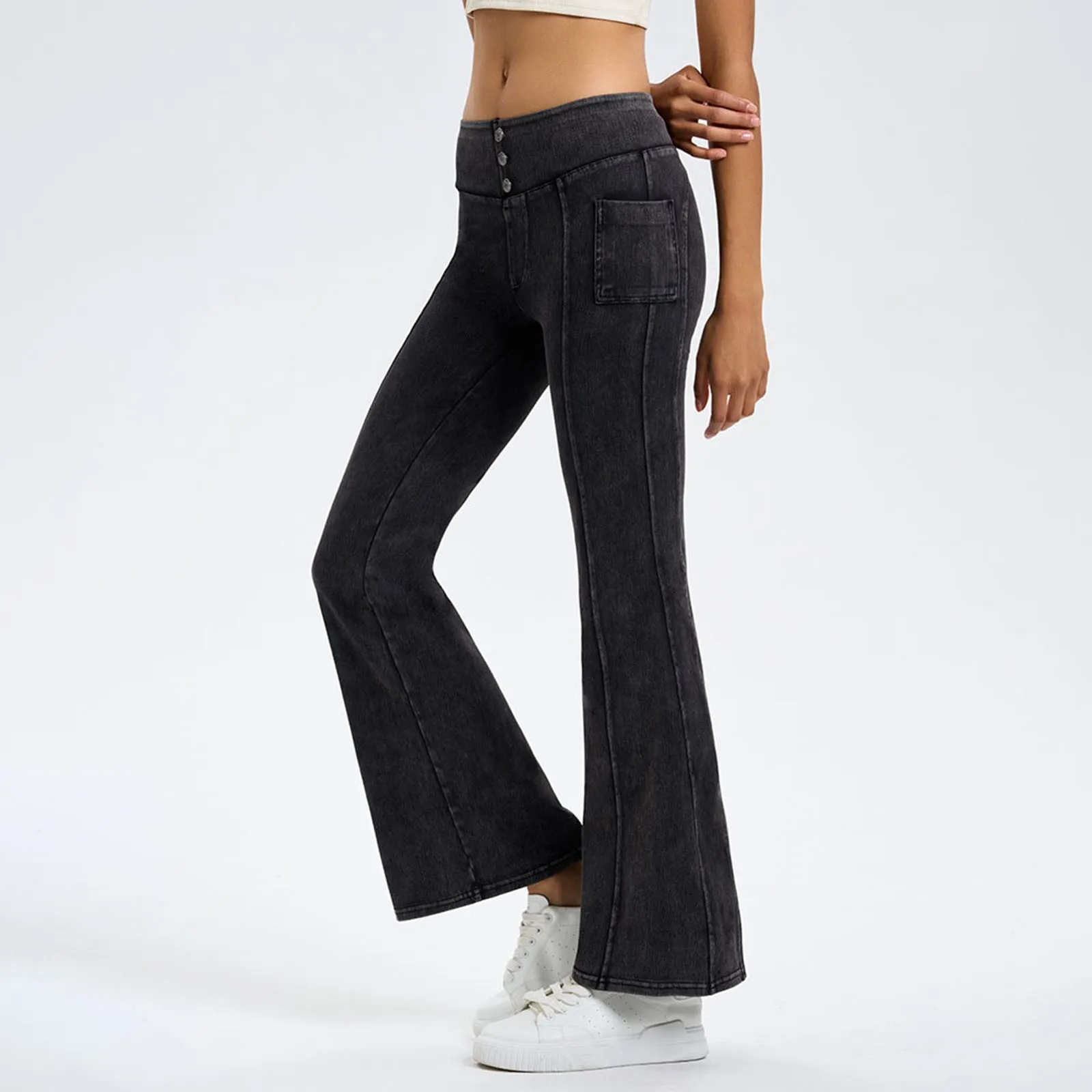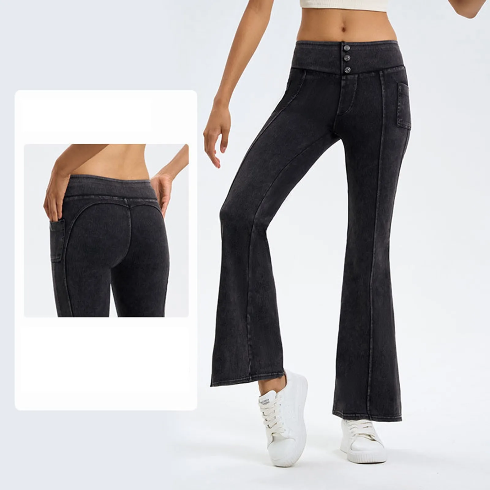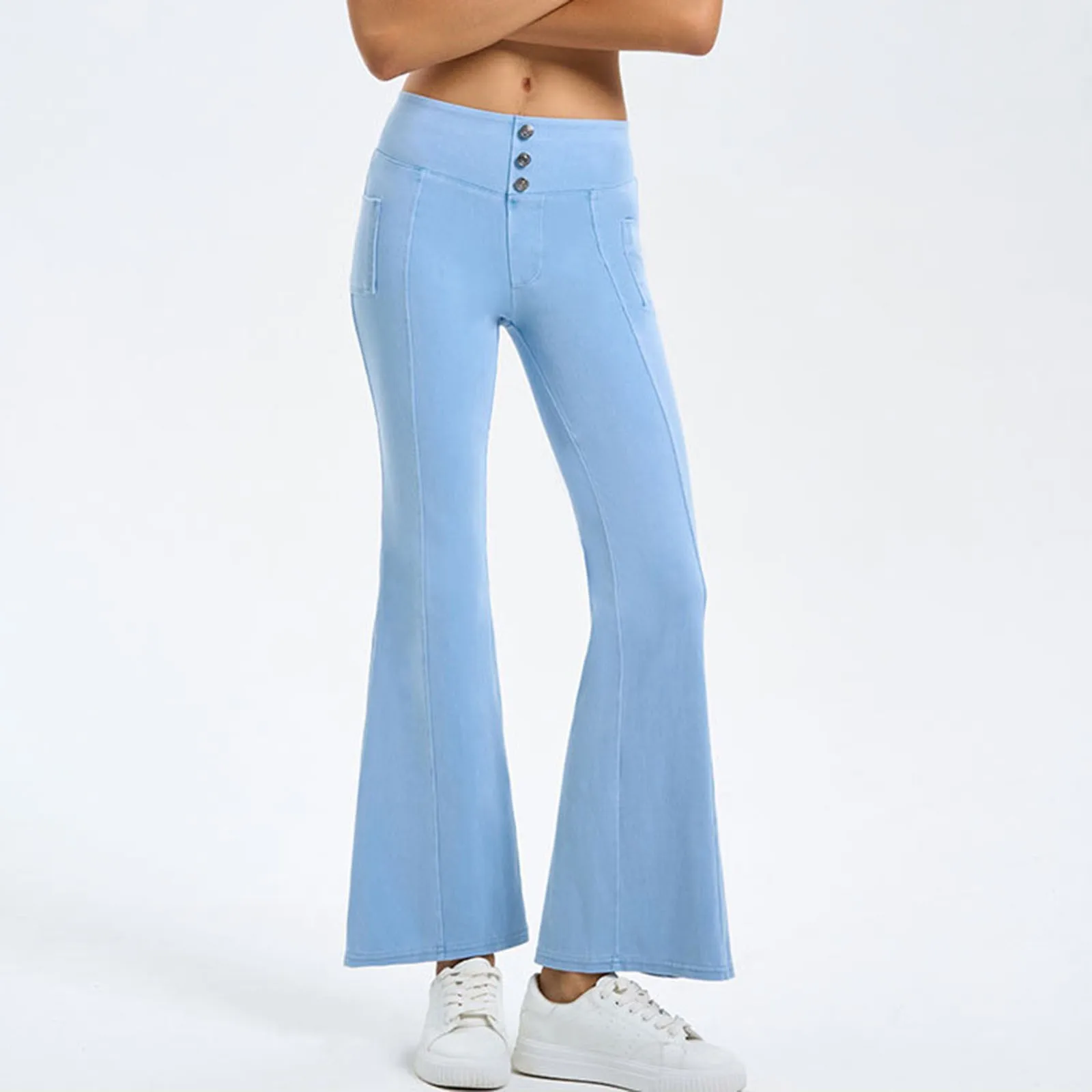 Women High Waisted Denim Yoga Bottom Pants, High Stretch Sports And Fitness Casual Pants