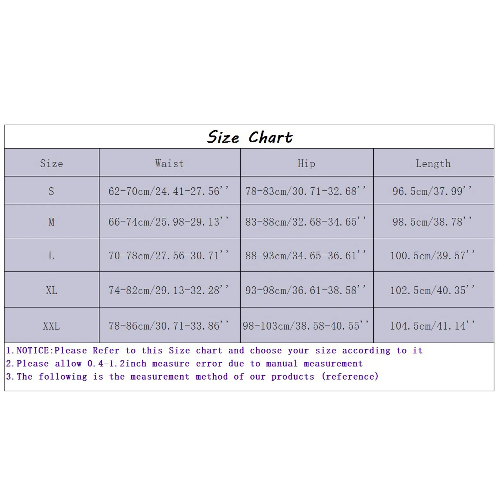 | Size:S | Waist:62-70cm/24.41-27.56” | Hip:78-83cm/30.71-32.68” | Length:96.5cm/37.99” |
