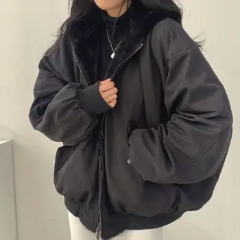 2025 New Casual Thicken Double Sided Jackets Coat Korean Fashion Hooded Loose Zip Up Jackets Solid Simple Niche Versatile Coat