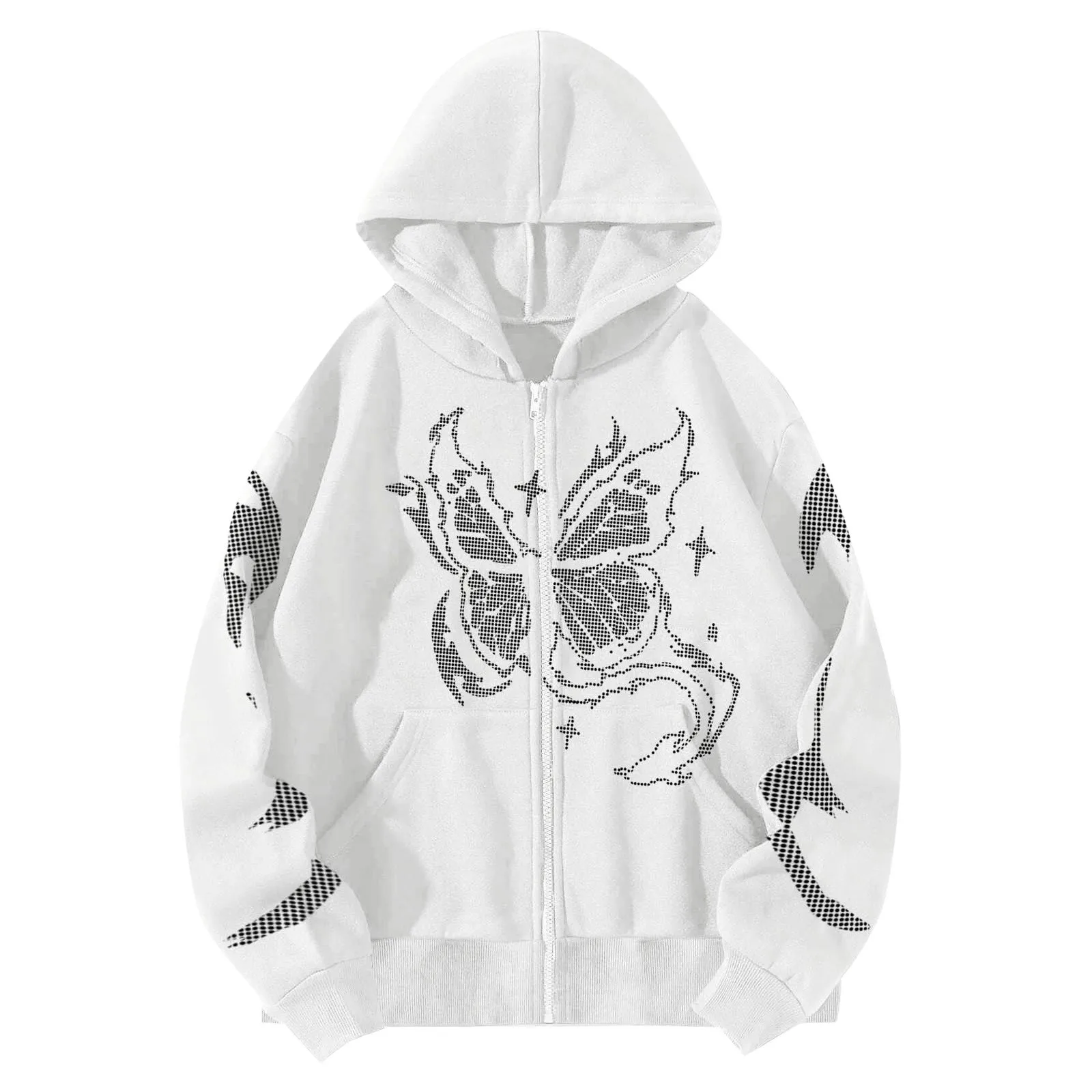Design: Long sleeve pullover hoodie,Zipper,Skeleton Print,Oversized Coat.