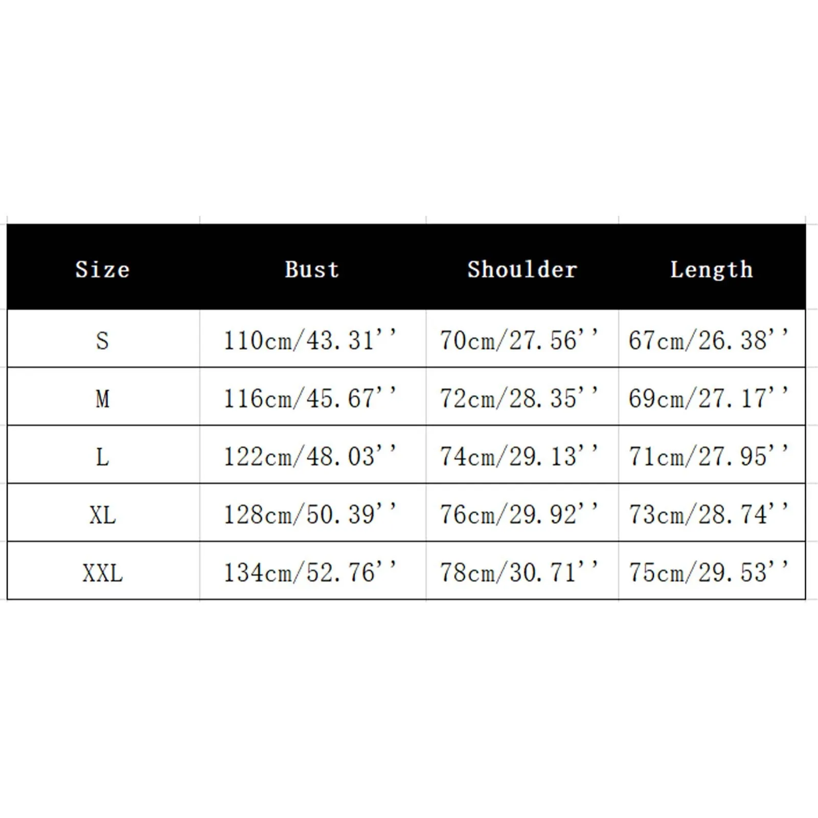 | Size:XXL | Bust:134cm/52.76” | Shoulder:78cm/30.71” | Length:75cm/29.53” |