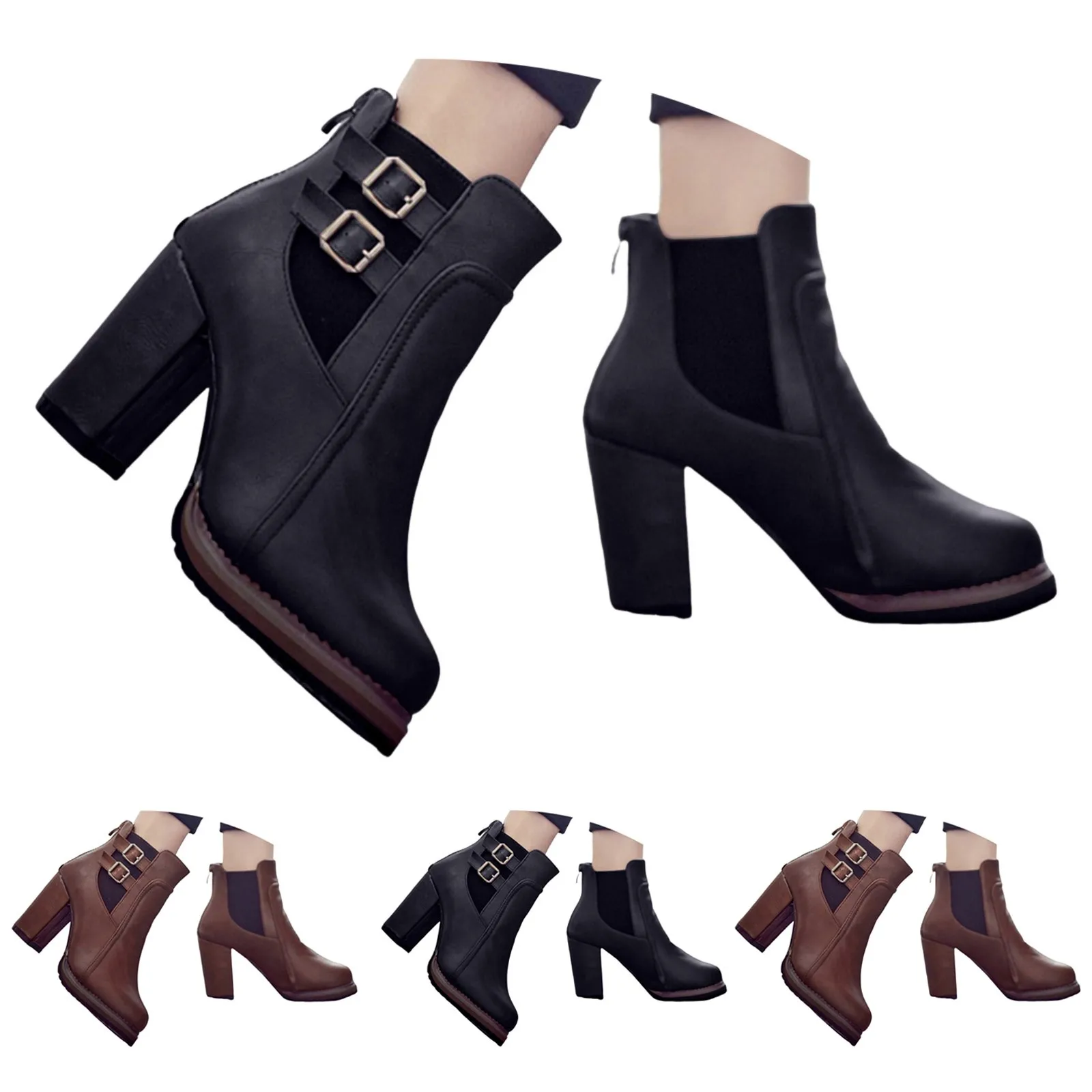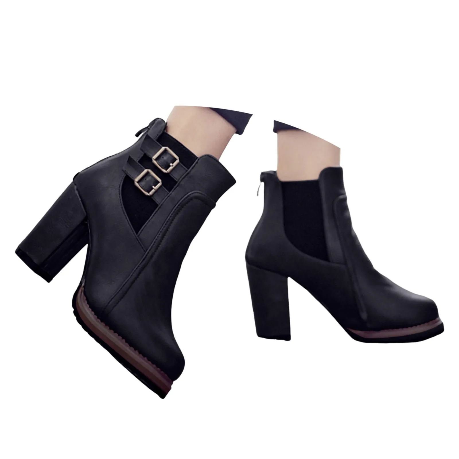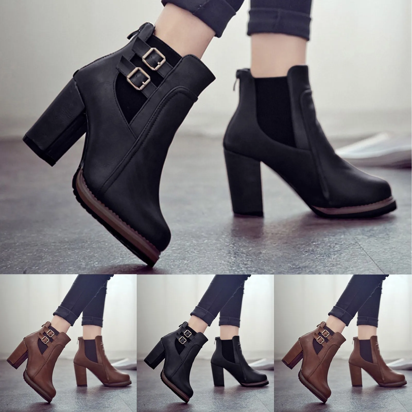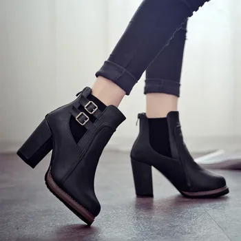 Autumn And Winter New Short Boots Women Chunky Heel Belt Short Boots High Heel Elastic Female Ankle Boots