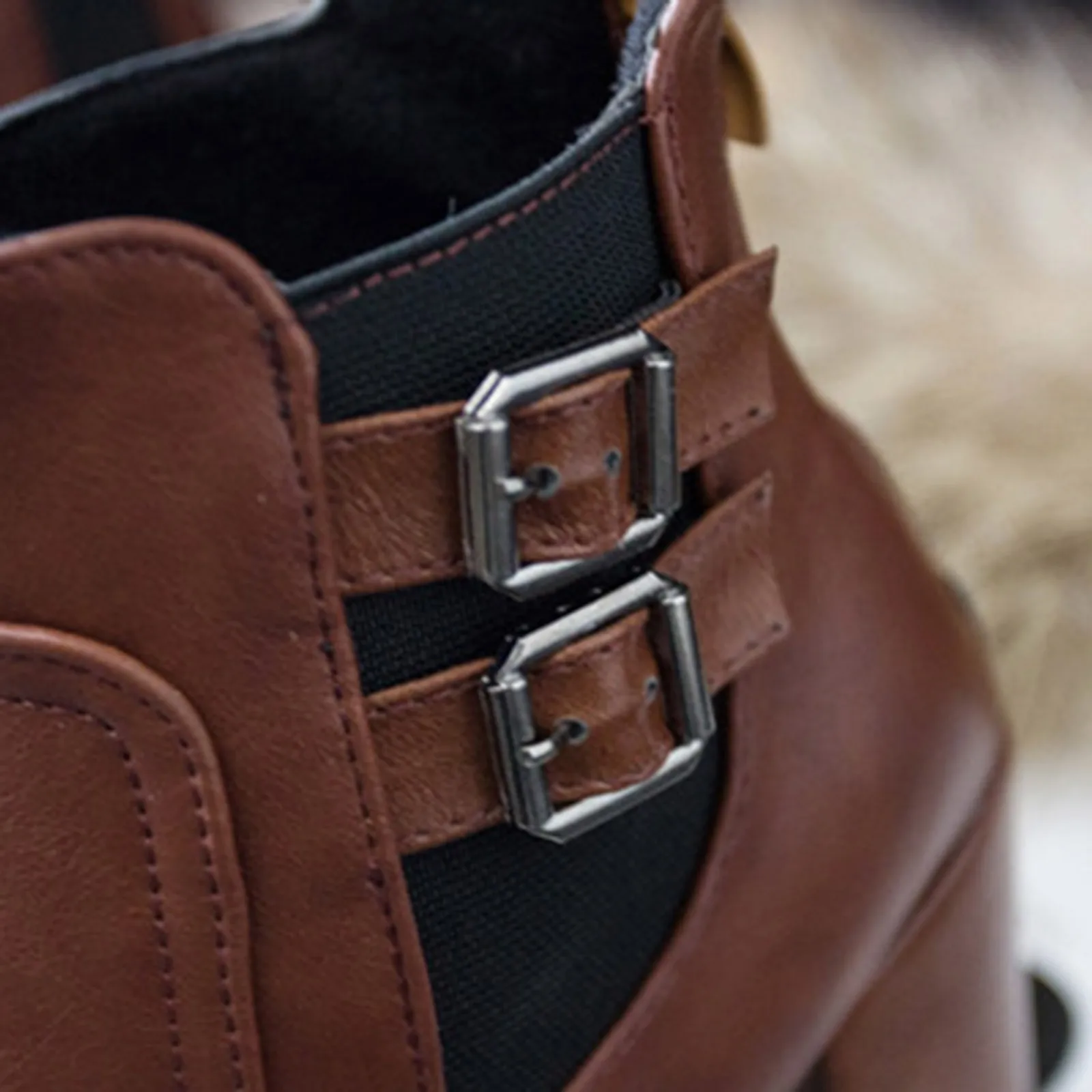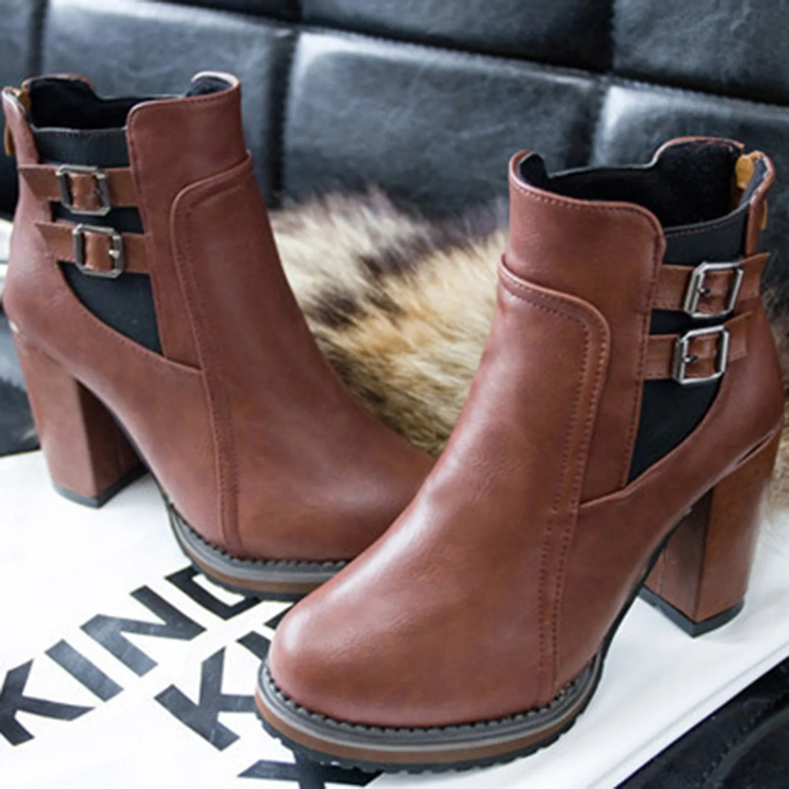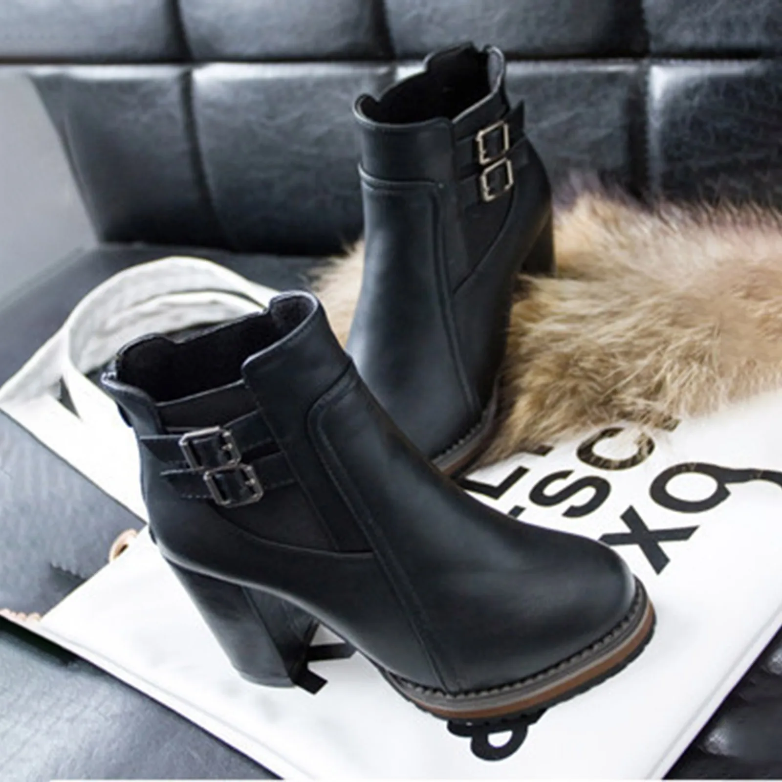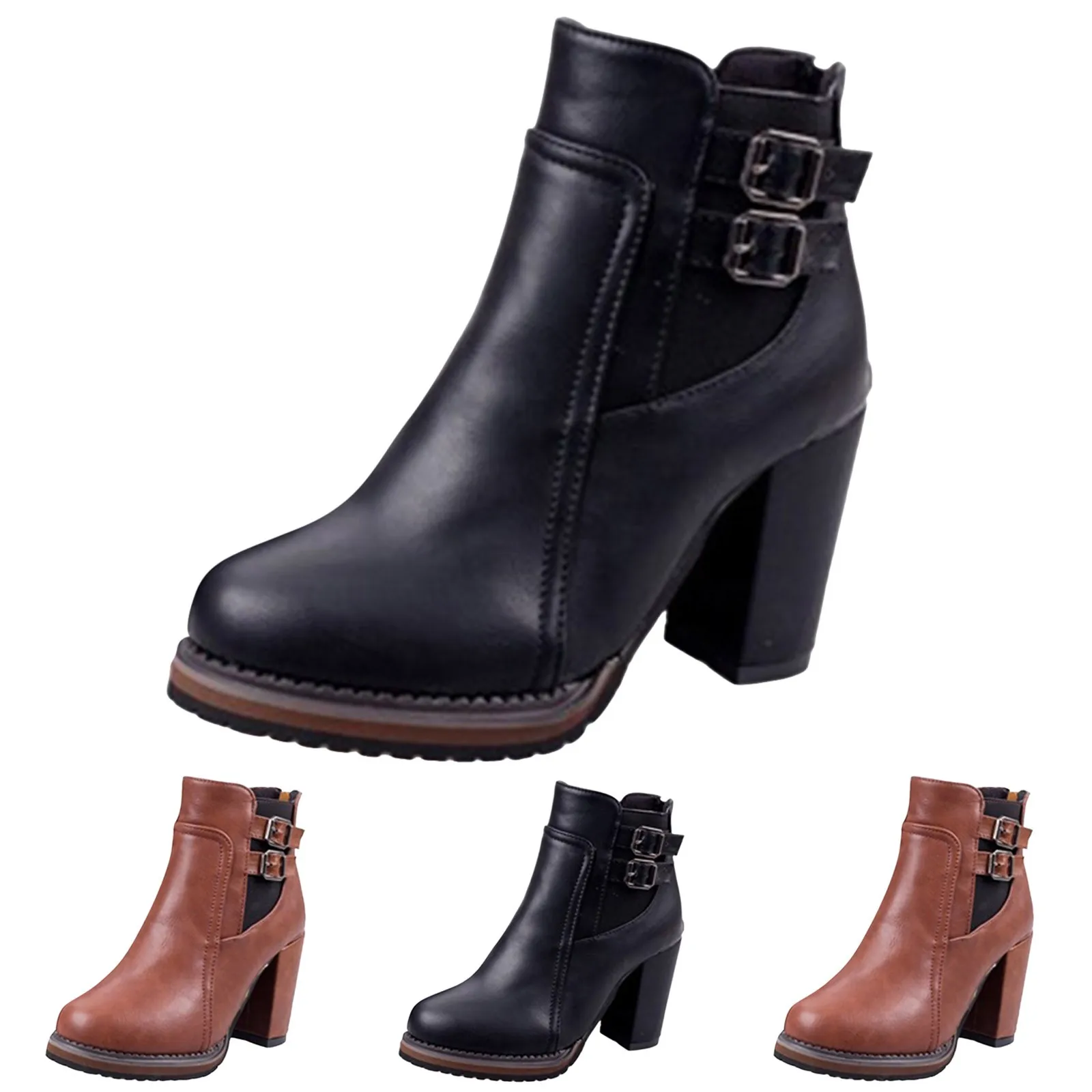 Autumn And Winter New Short Boots Women Chunky Heel Belt Short Boots High Heel Elastic Female Ankle Boots