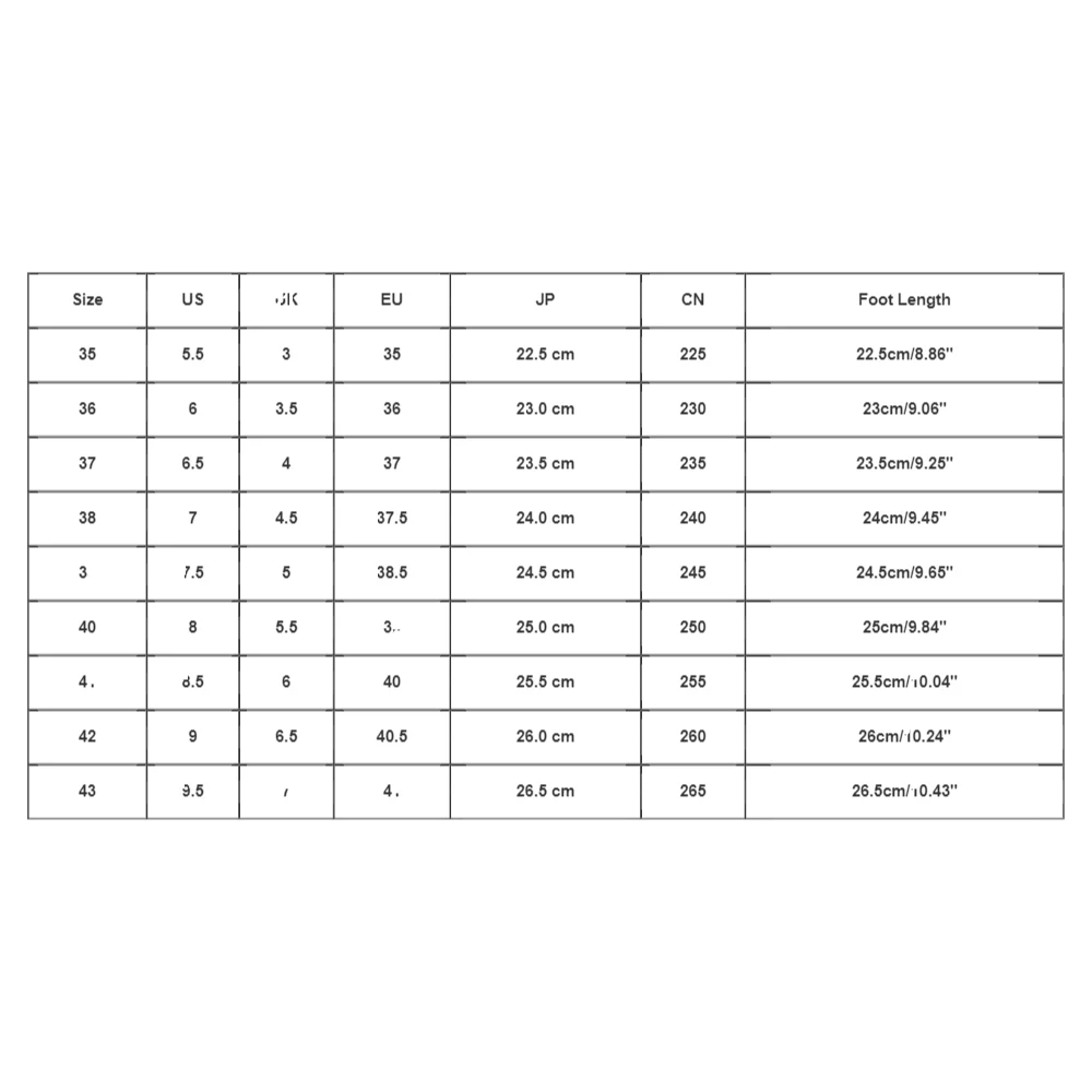 | Size:35 | US:5.5 | UK:3 | EU:35 | JP:22.5 cm | CN:225 | Foot Length:22.5cm/8.86” |
