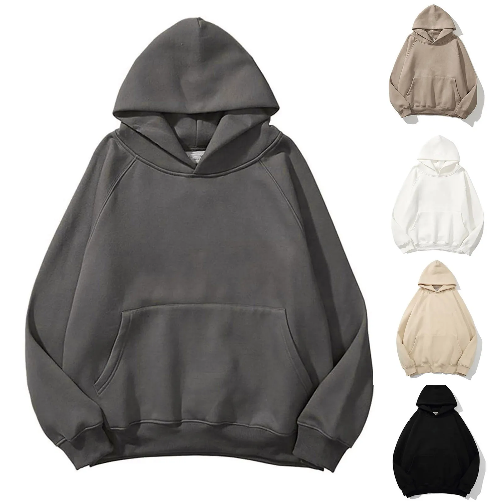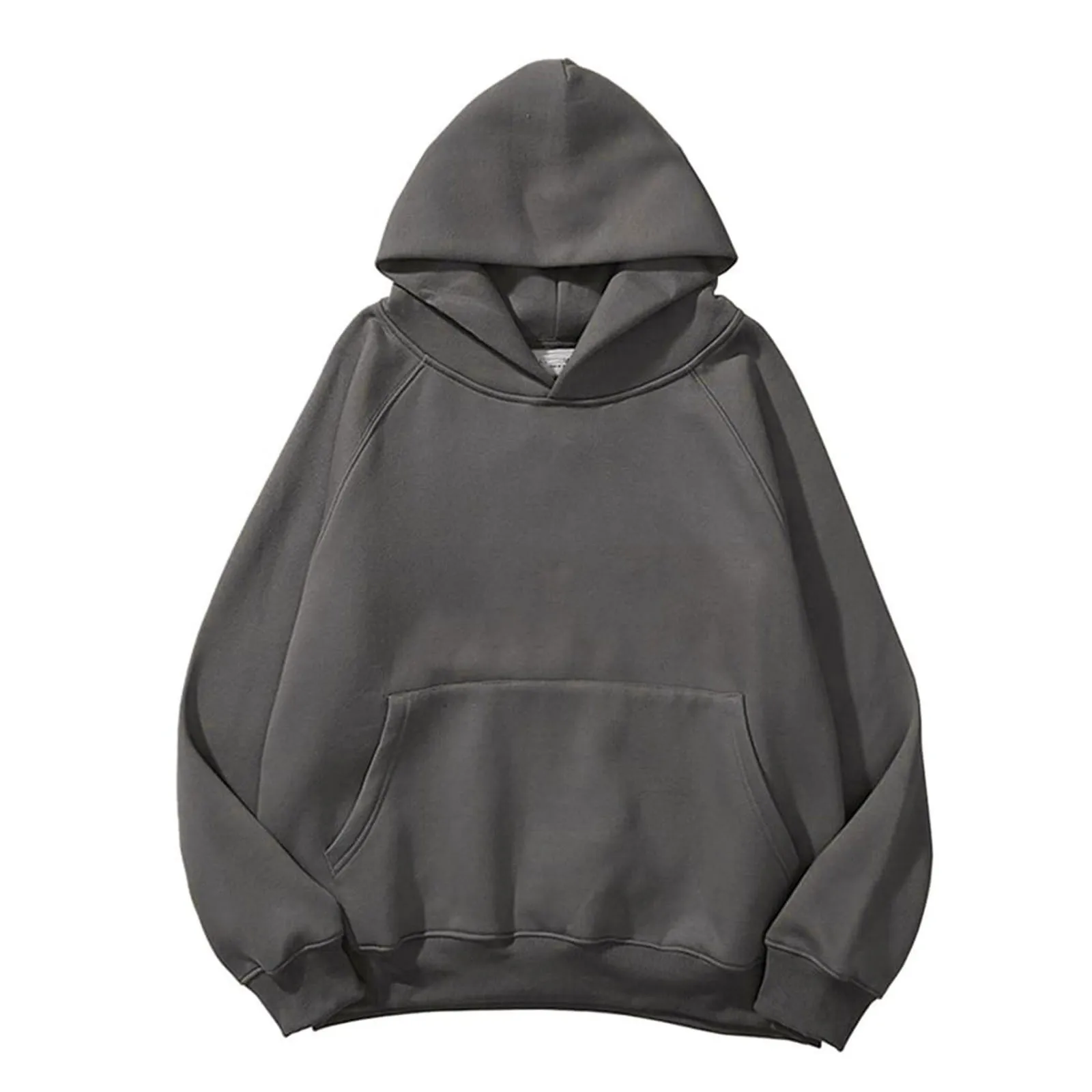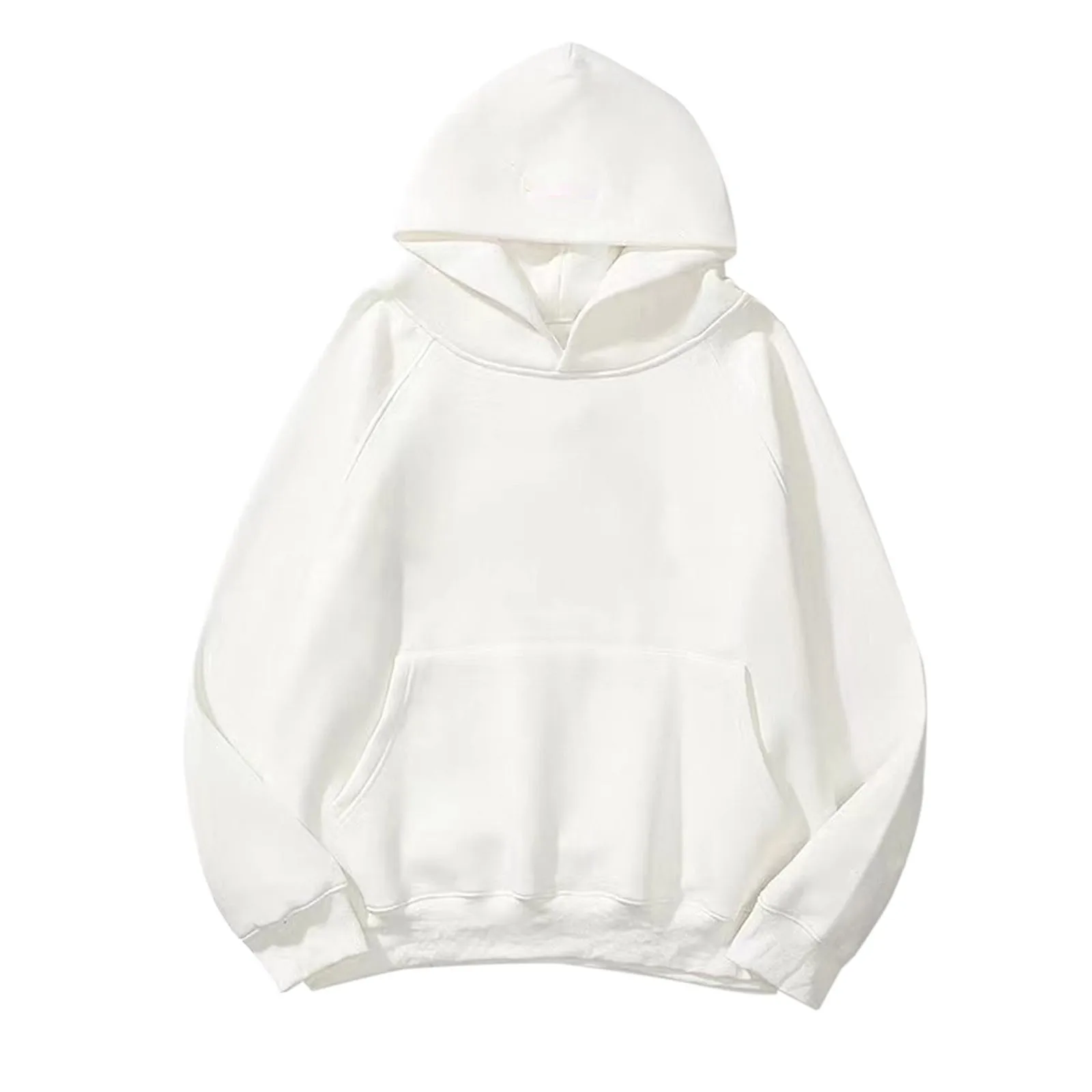 Women Solid Basic Fleece Letter Loose Hoodie Sweatshirt Long Sleeve Pocket Drop Shoulder Pullovers Top