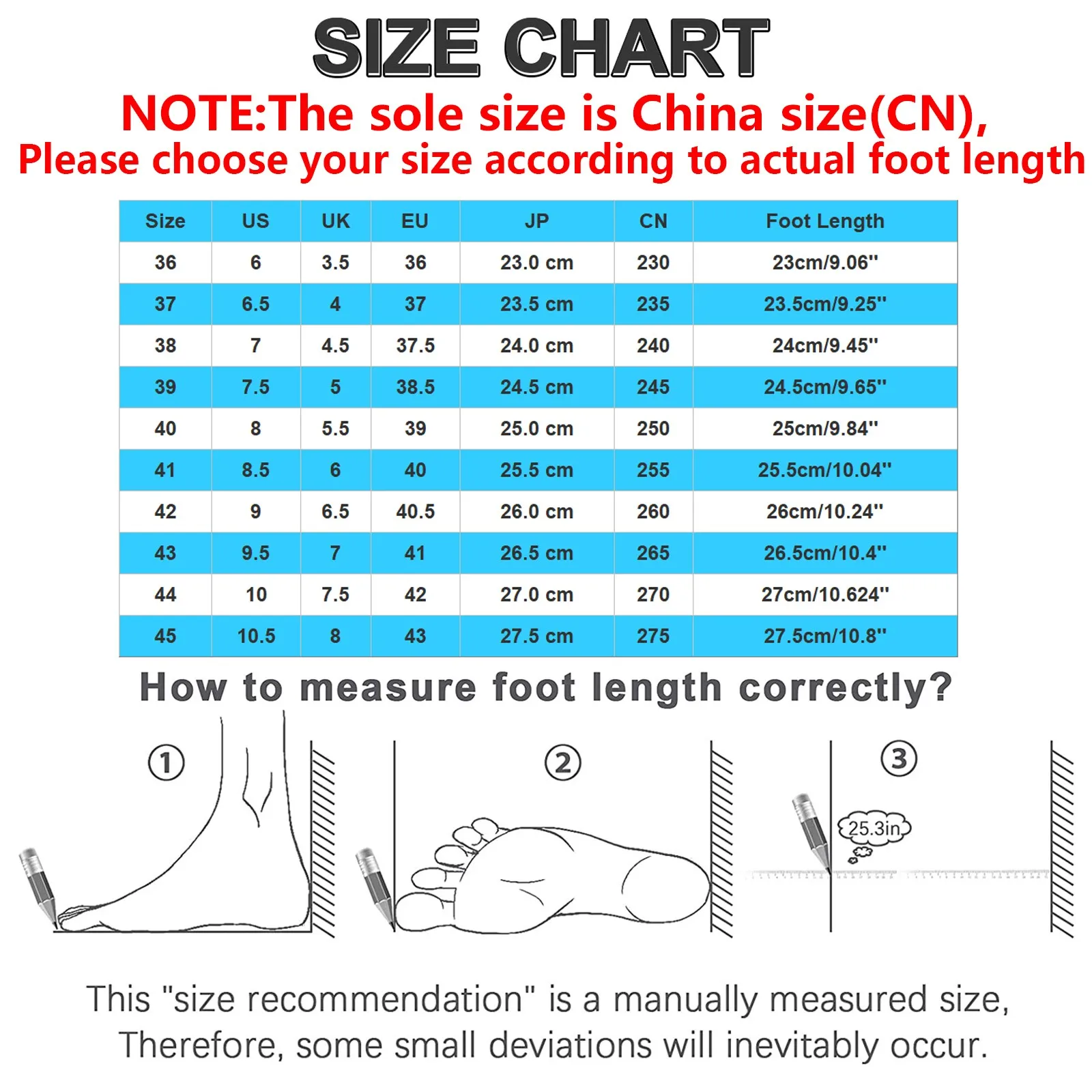 Note: The size mark on the shoes is Chinese size. We suggest you choose the right size according to the foot length