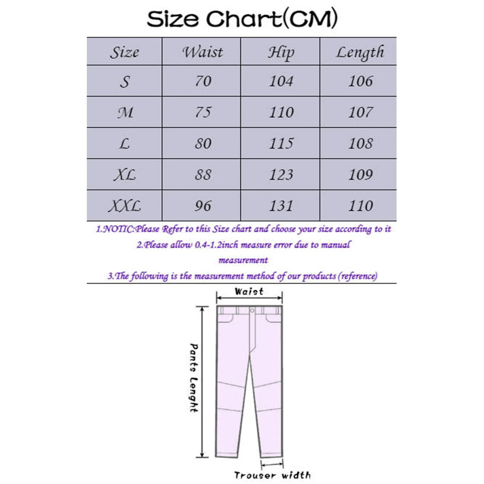 Size:S Waist:70cm/27.56” Hip:104cm/40.94” Length:106cm/41.73”