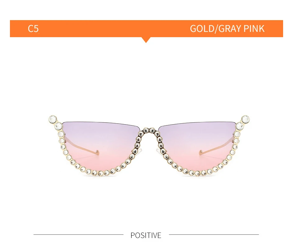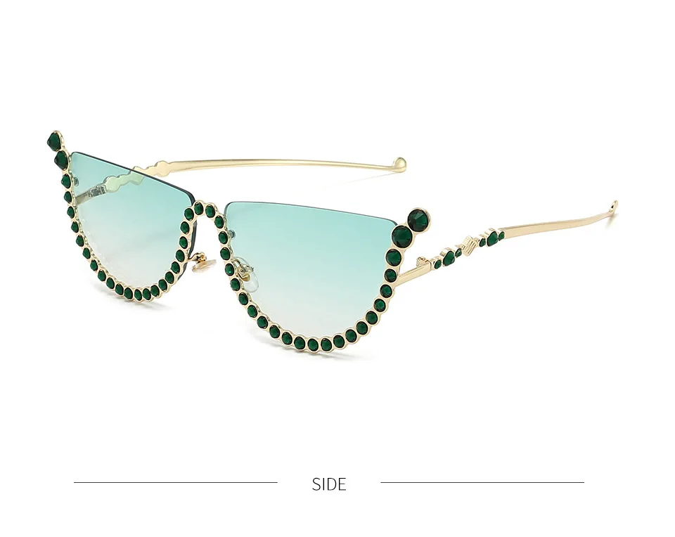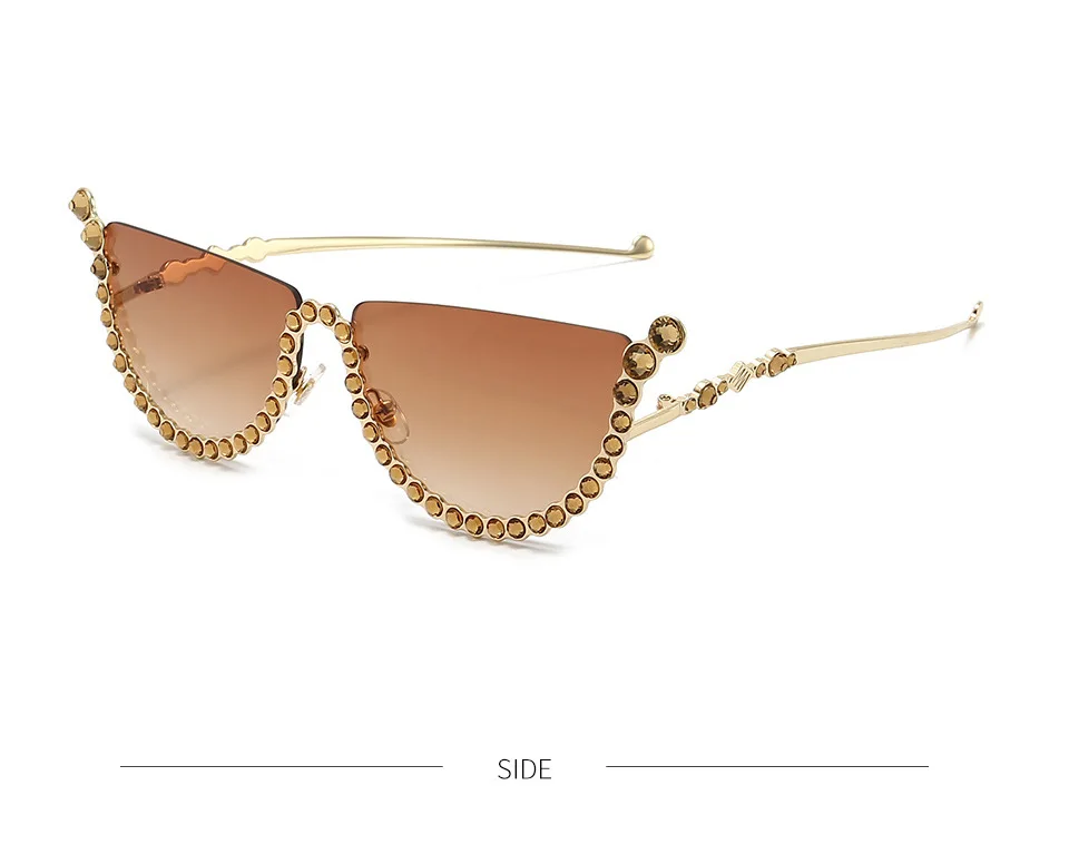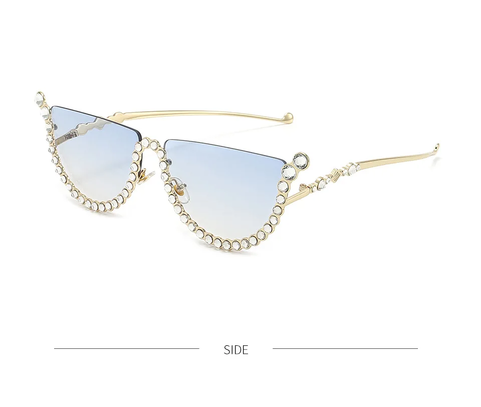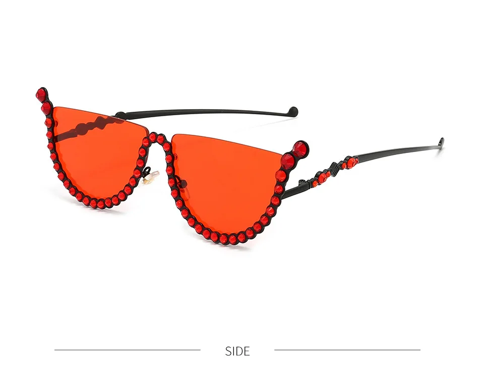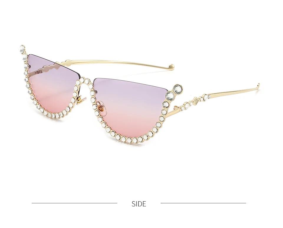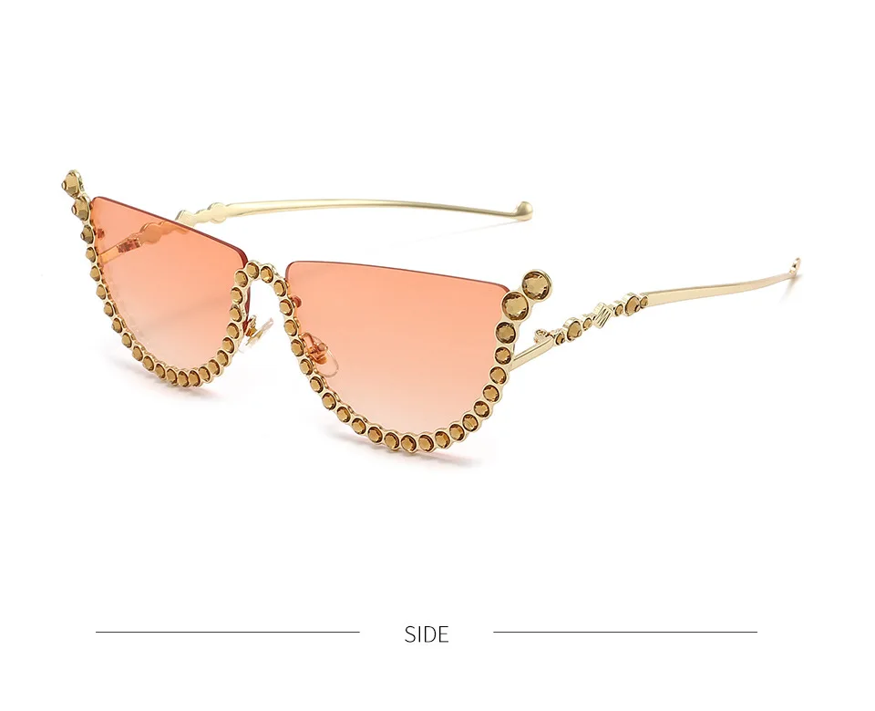Semi Framed Diamond Cat Eye Sunglasses Women Semi-Rimless Shield Designer Crystal Sexy Luxury Rhinestone Eyeglasses Shades