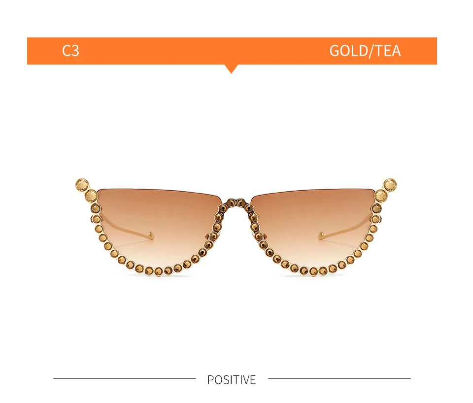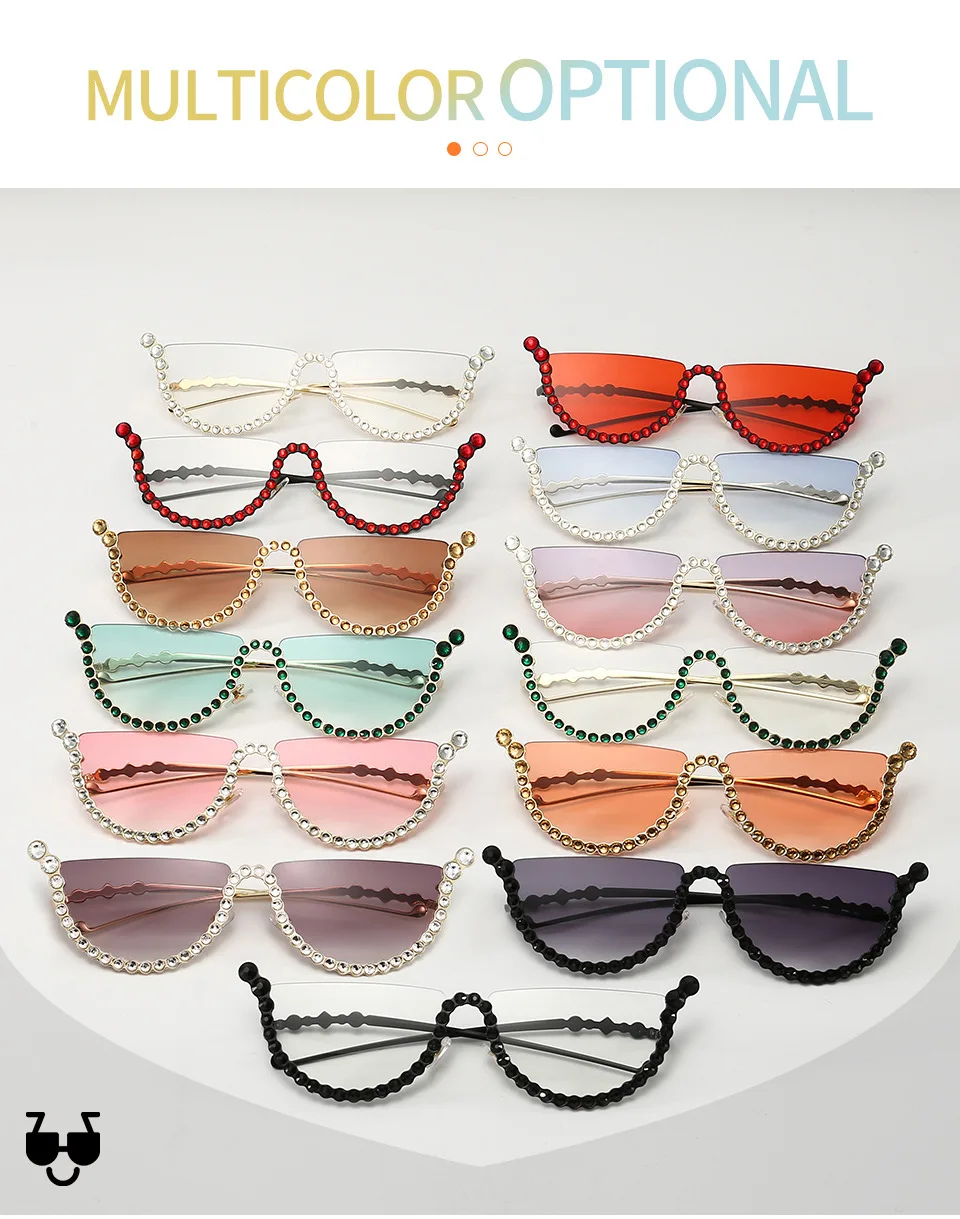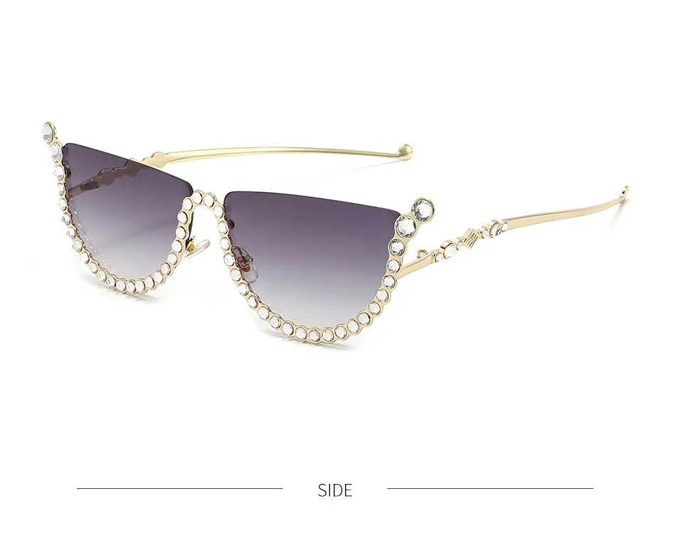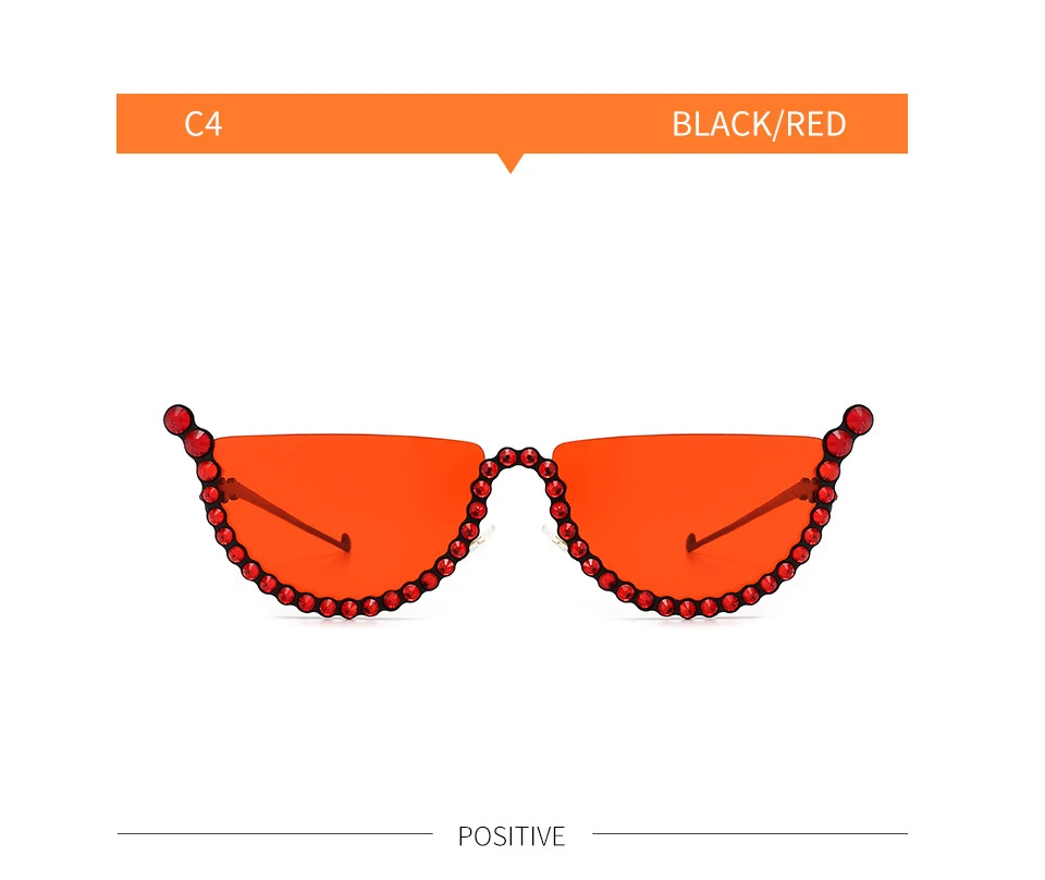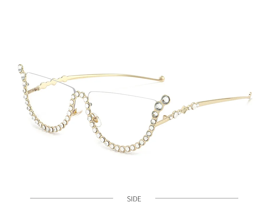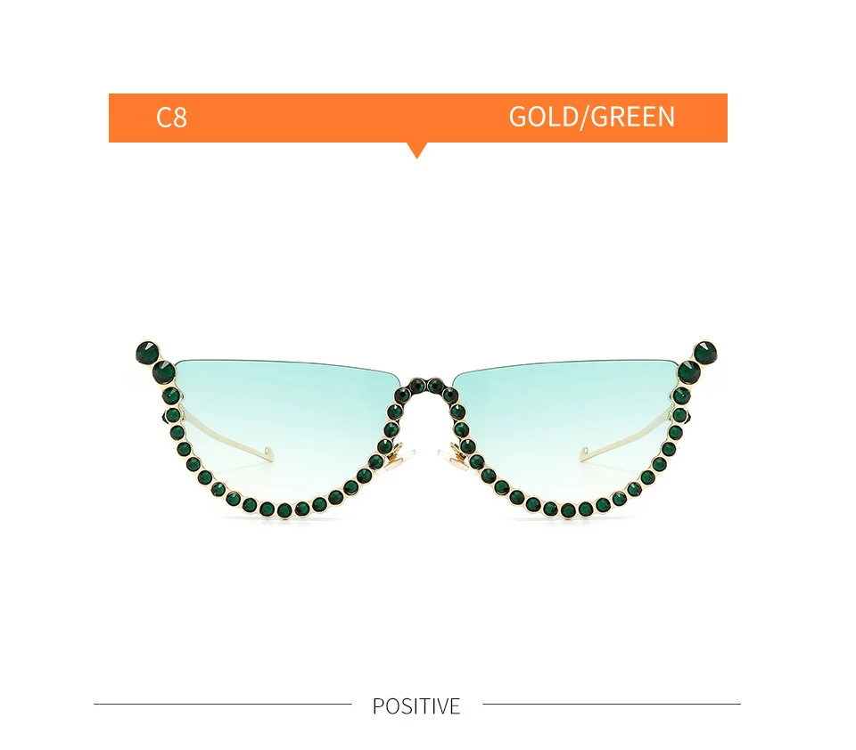 Semi Framed Diamond Cat Eye Sunglasses Women Semi-Rimless Shield Designer Crystal Sexy Luxury Rhinestone Eyeglasses Shades