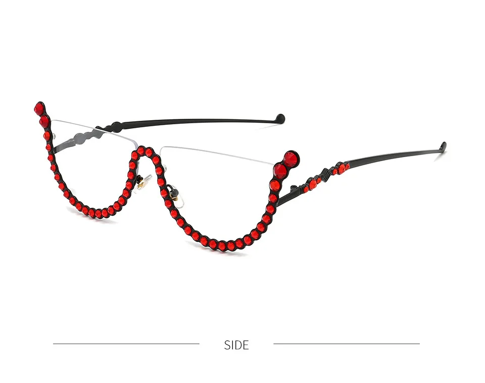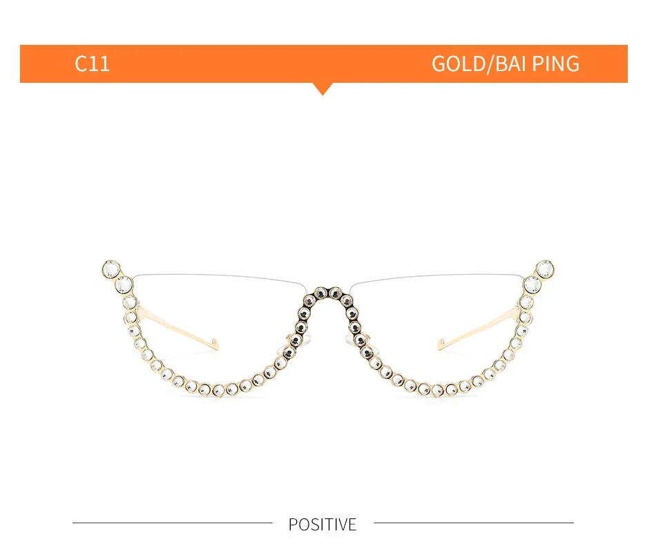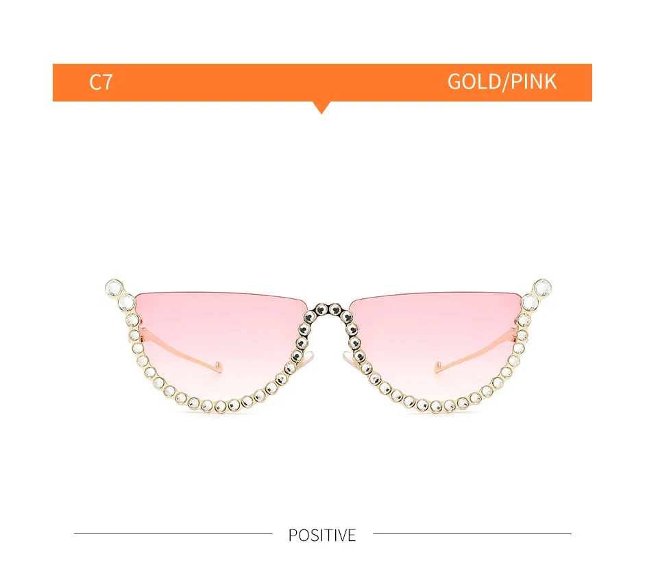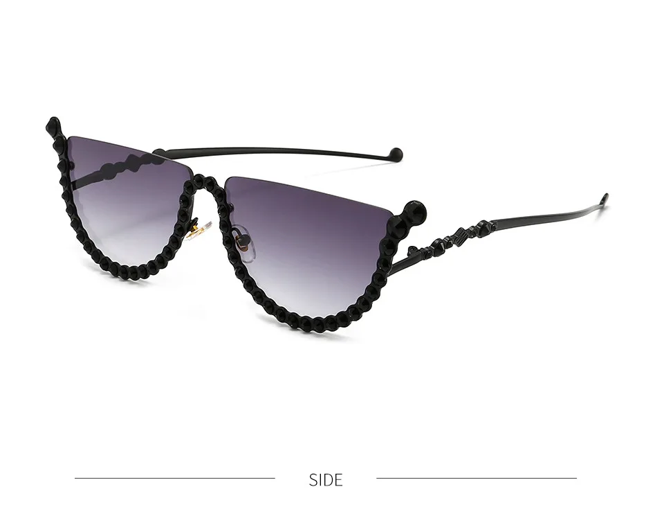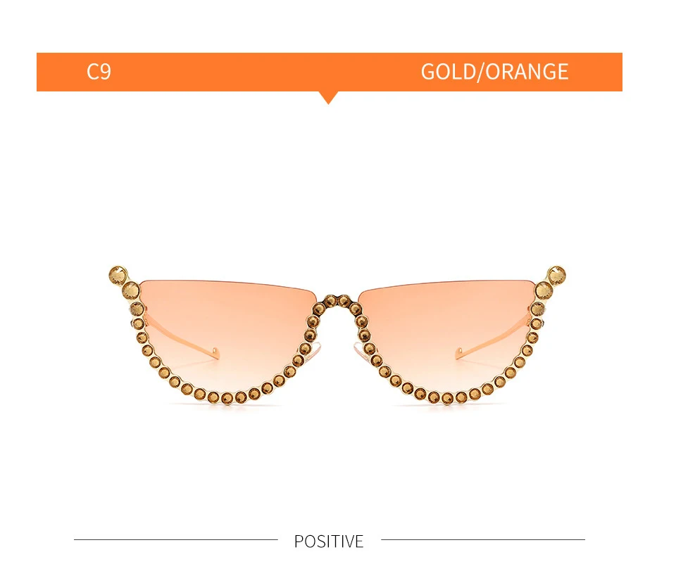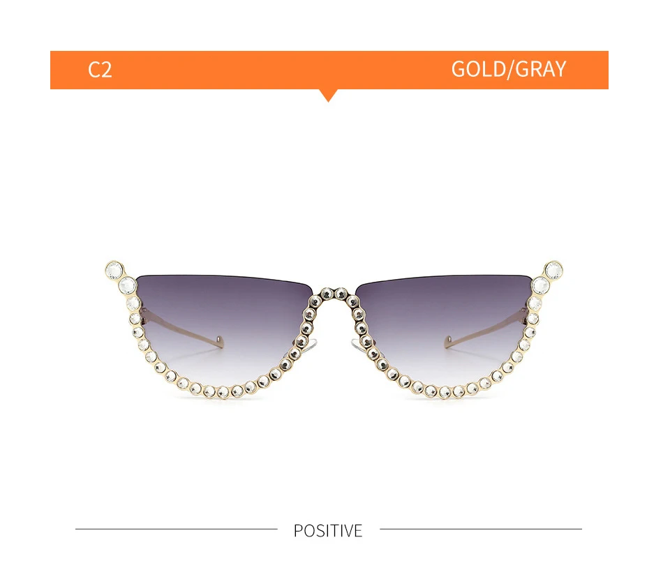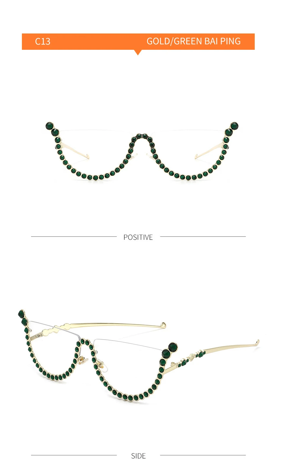 Semi Framed Diamond Cat Eye Sunglasses Women Semi-Rimless Shield Designer Crystal Sexy Luxury Rhinestone Eyeglasses Shades