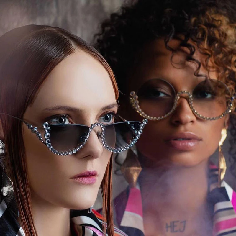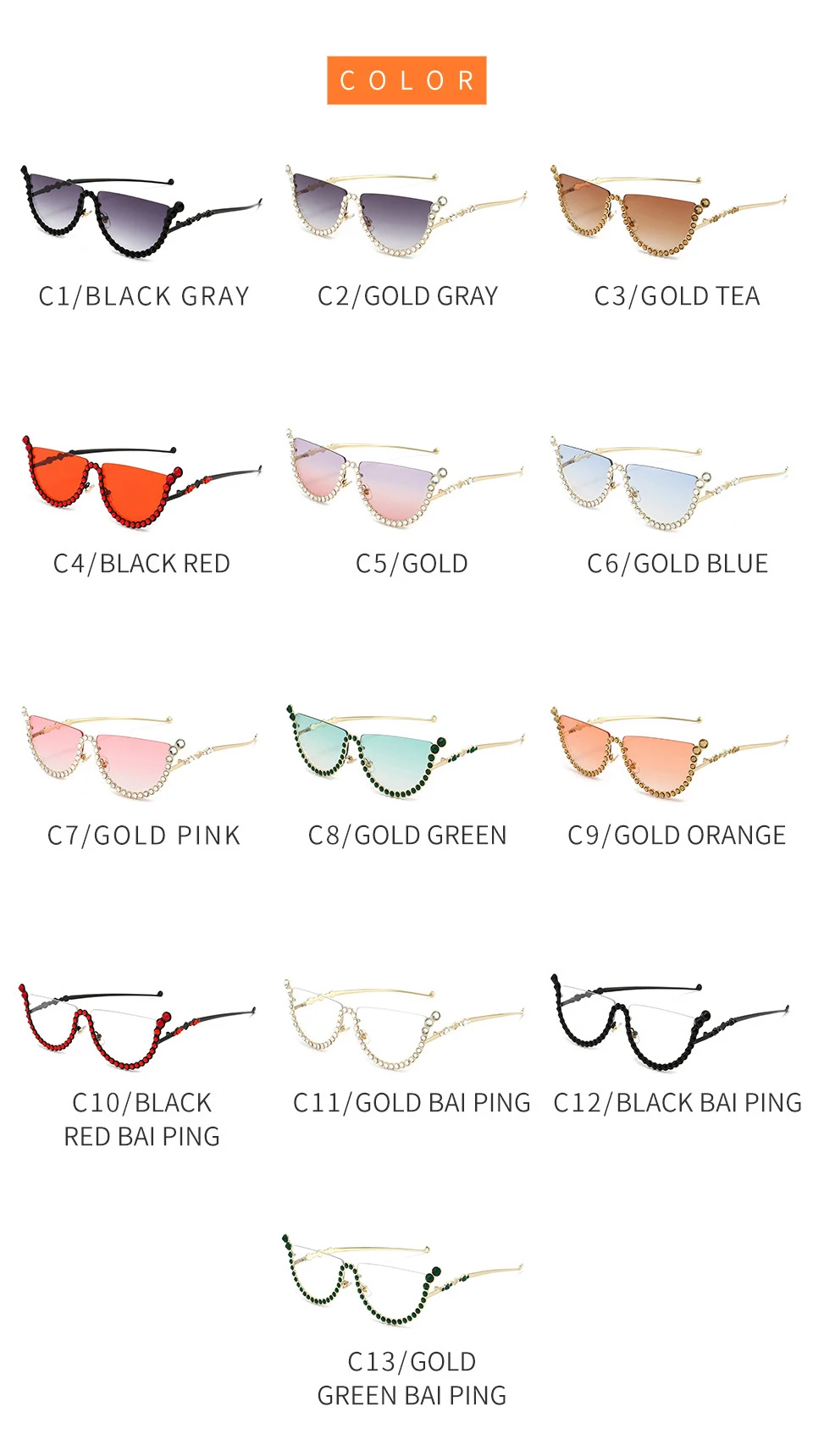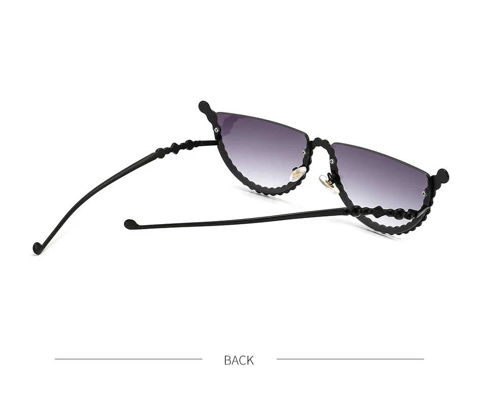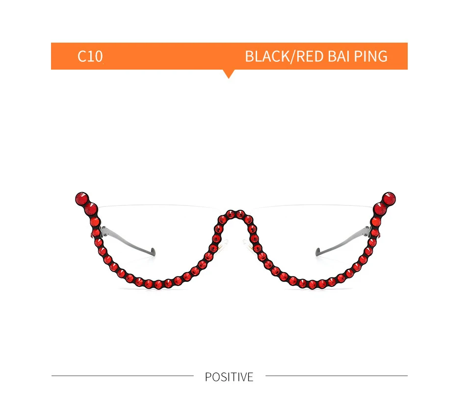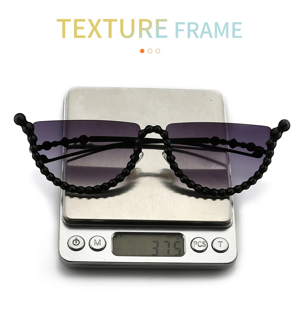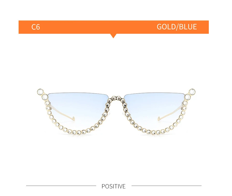 Semi Framed Diamond Cat Eye Sunglasses Women Semi-Rimless Shield Designer Crystal Sexy Luxury Rhinestone Eyeglasses Shades