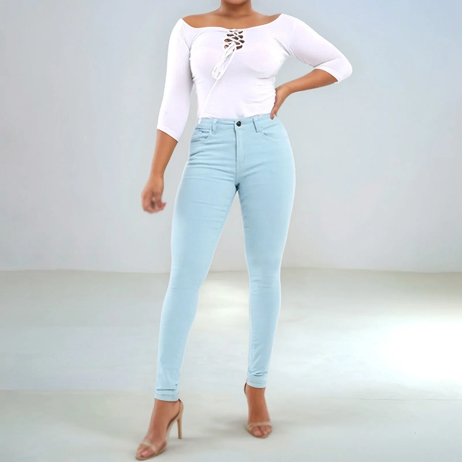 Women’s Fashionable High Elastic Foot Lifting High Waist Skinny Jeans