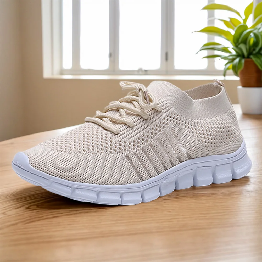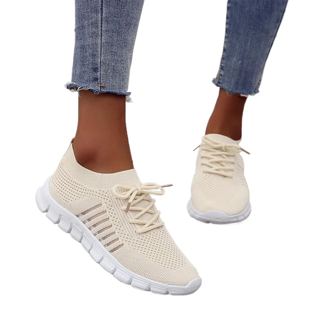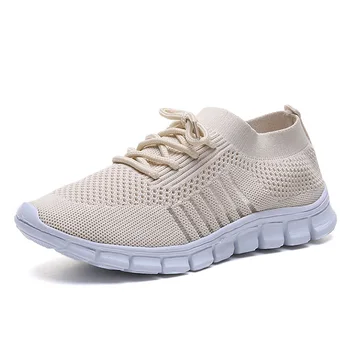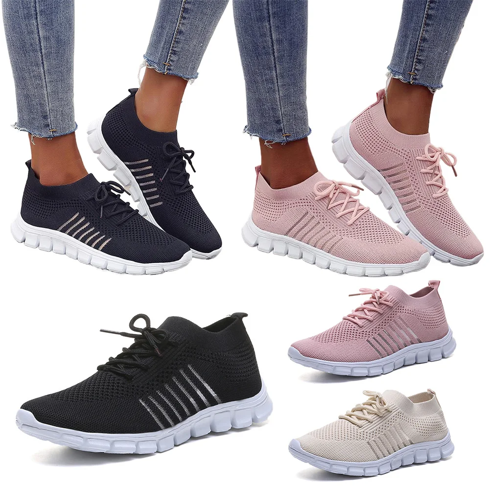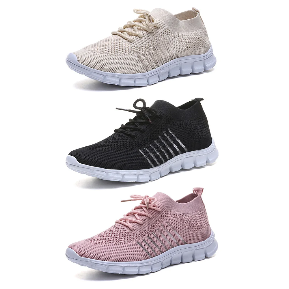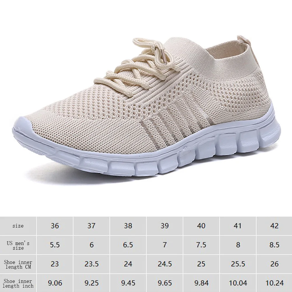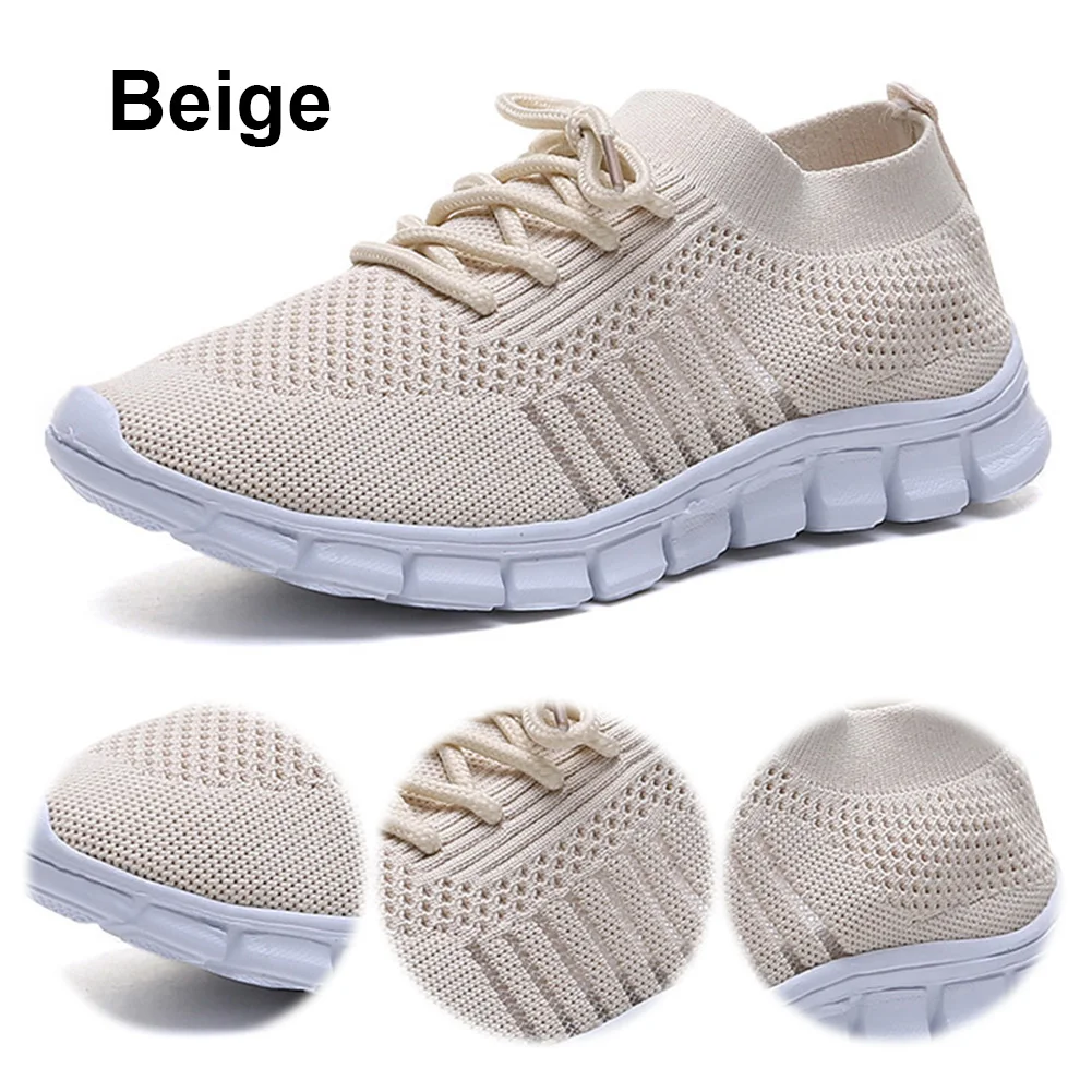 Women Mesh Casual Shoes Lace Up Breathable Slip on Lightweight Sports Sneakers Non-Slip Running Walking Shoes Comfortable Flats Mesh Trainers Feature: 1. Breathable Upper Material: These mesh casual shoes feature a synthetic fiber upper and an internal mesh lining, ensuring maximum breathability and comfort during extended wear. 2. Lightweight and Easy to Wear: Our slip-on lightweight sports sneakers are designed for convenience, allowing you to easily slip them on and off without the hassle of laces. 3. Rubber Sole: The running walking shoes come with a rubber sole, providing excellent traction and durability for all your running and walking needs. 4. Comfortable Flat Design: These flats mesh trainers boast a flat heel shape, offering superior comfort and support, making them ideal for everyday wear. 5. Perfect Fit for Women: Our ladies tennis shoes are designed with a medium shoe width, ensuring a perfect fit for most women, providing both style and comfort on and off the court. Specification: