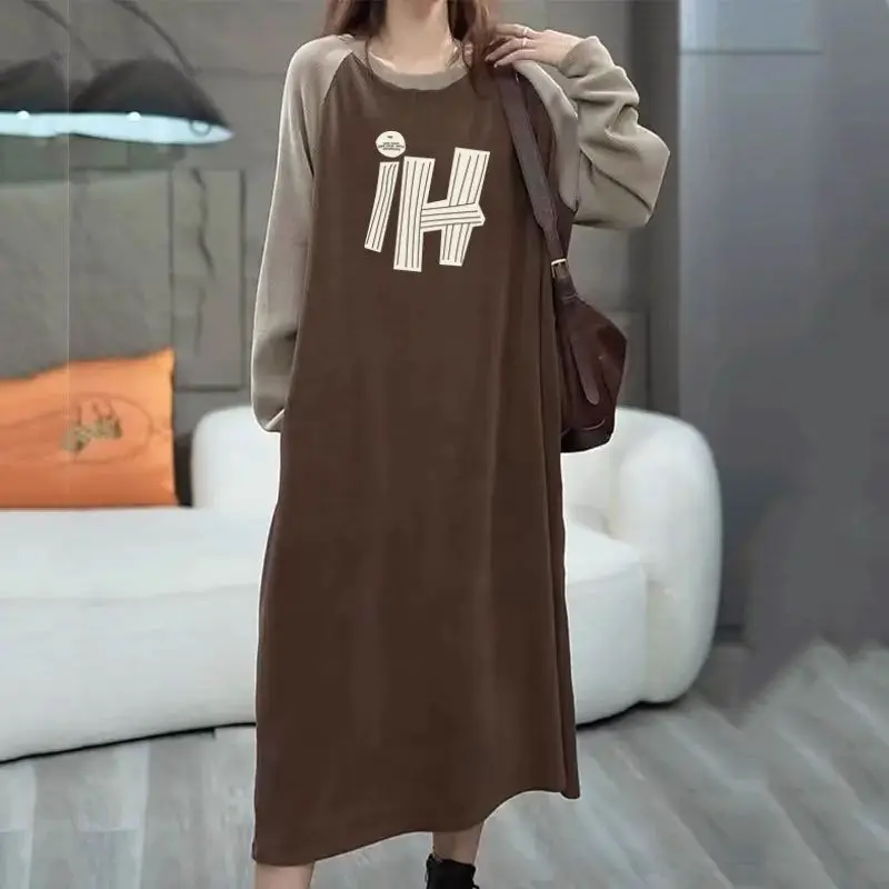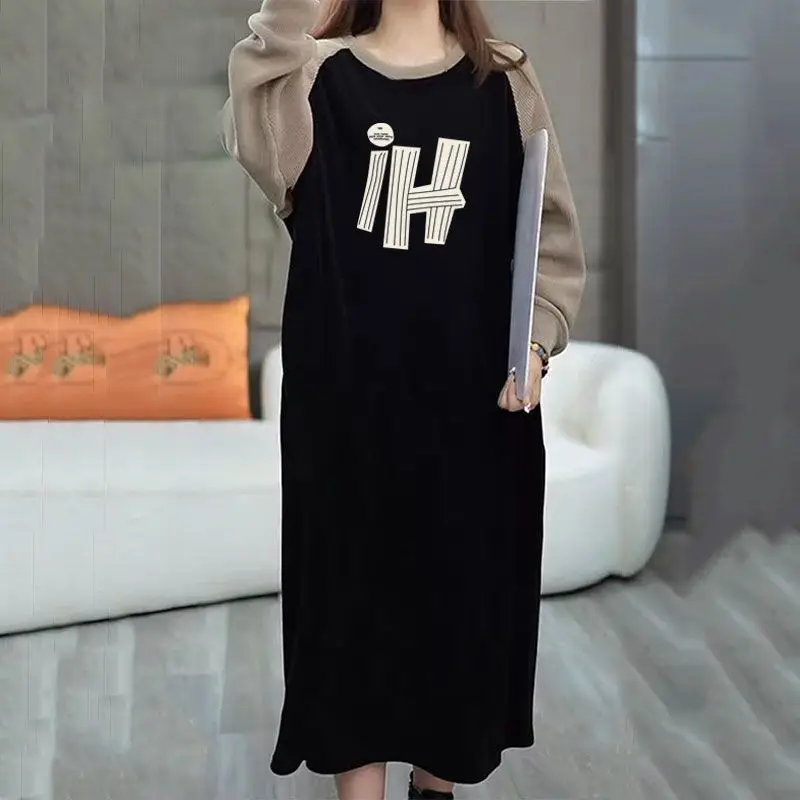 Women Street Casual Loose T Shirt Dress Patchwork Midi Dress