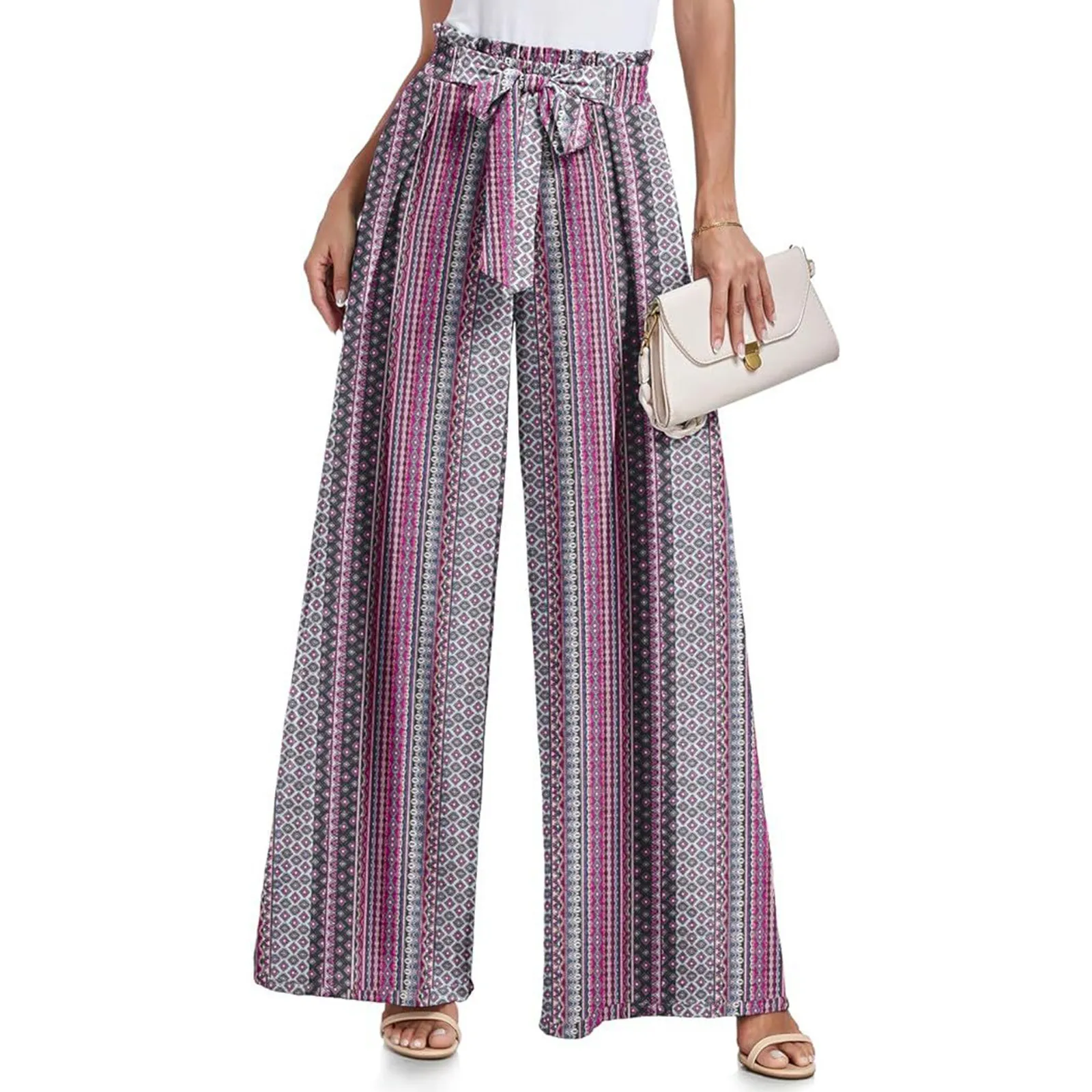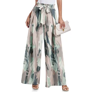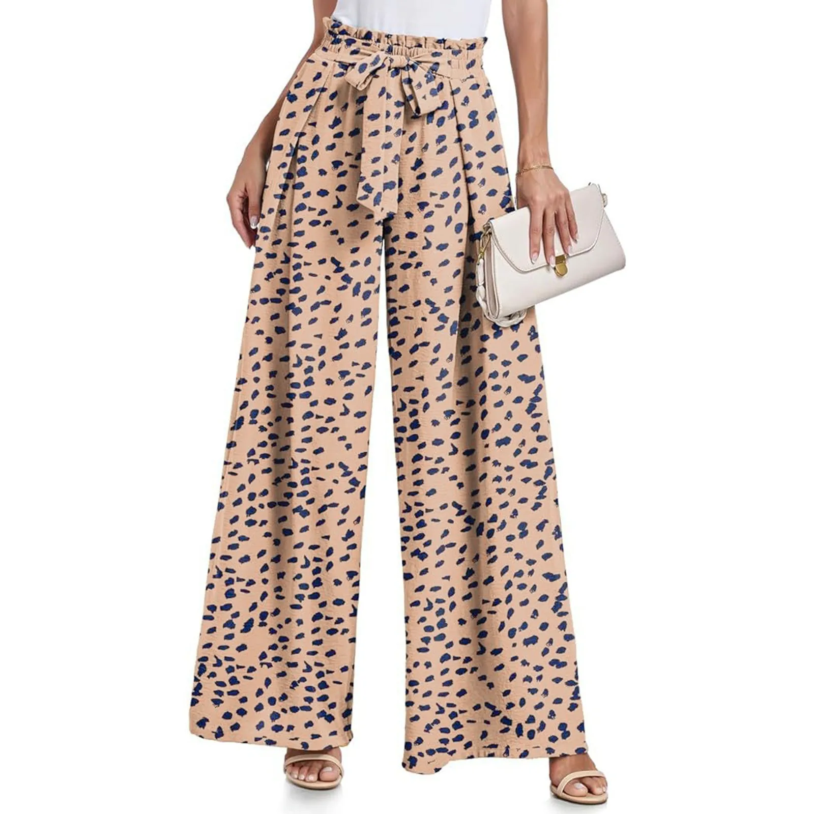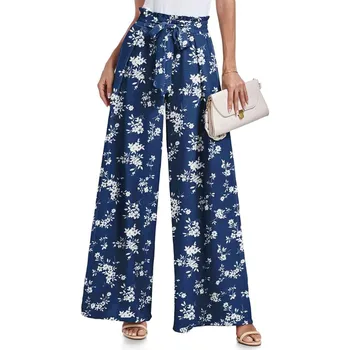 Features: The flowy wide leg pants are designed with an integrated tie knot waist belt on the front that allows you to make the bow you want, creating a chic look. Elastic High Waist, Not See-through, Practical pockets on both sides deep enough to hold your cell phone, wallet, keys, and more. Solid color and various Print pants, we will provide customers with more choices.