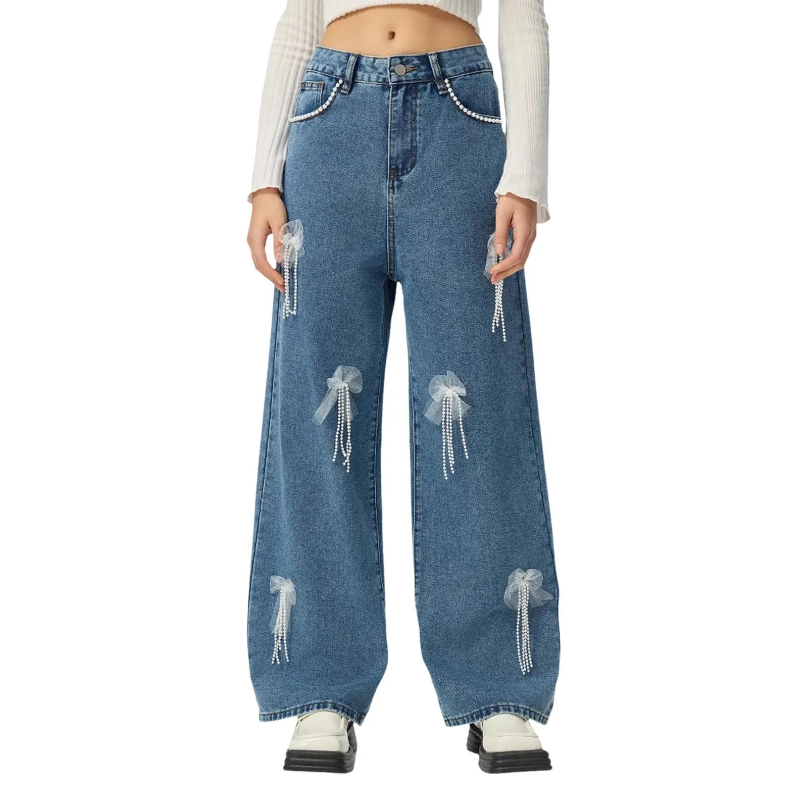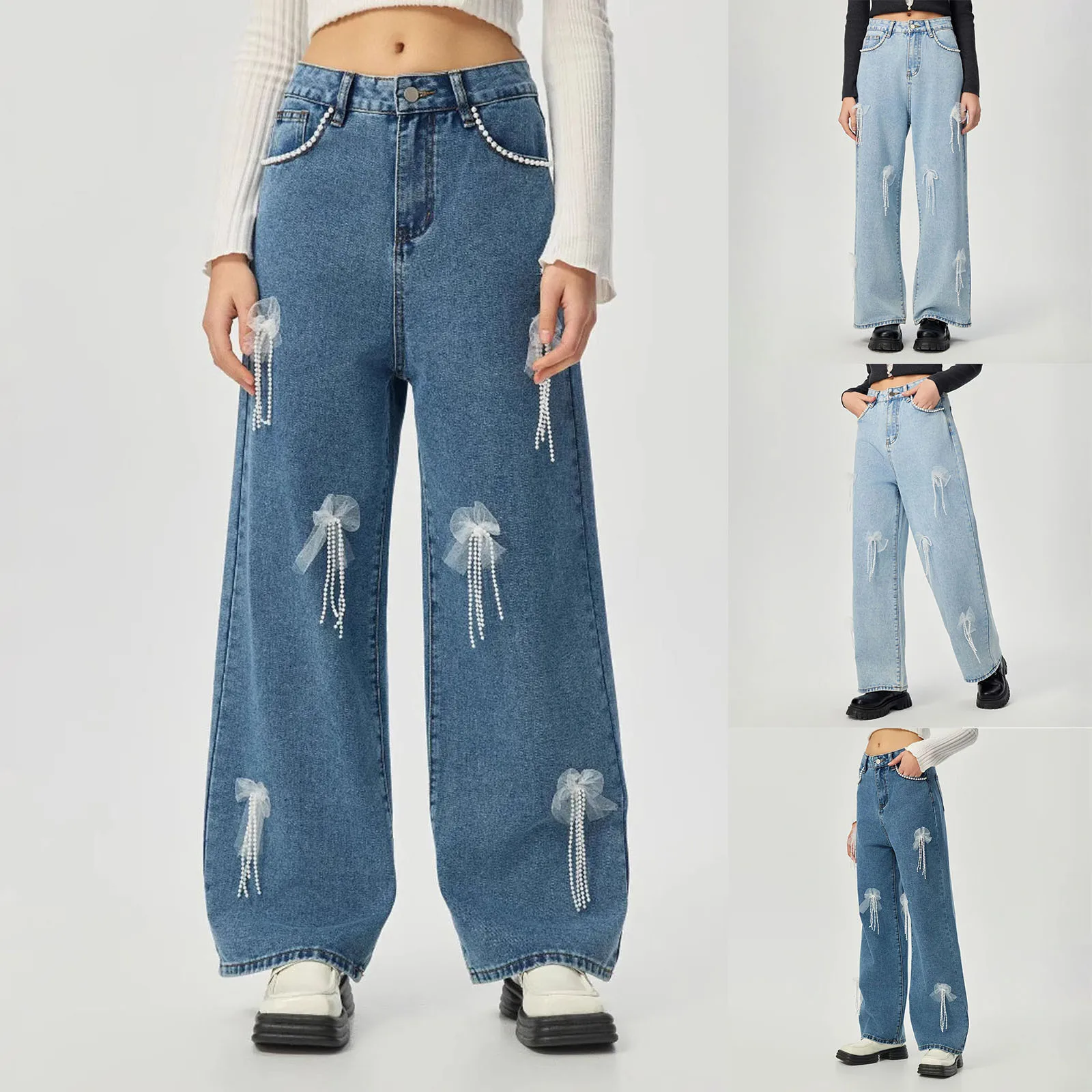 Womens Low Rise Baggy Jeans Loose Fit Straight Wide Leg Denim Pants Casual Trendy Boyfriend Streetwear Trousers